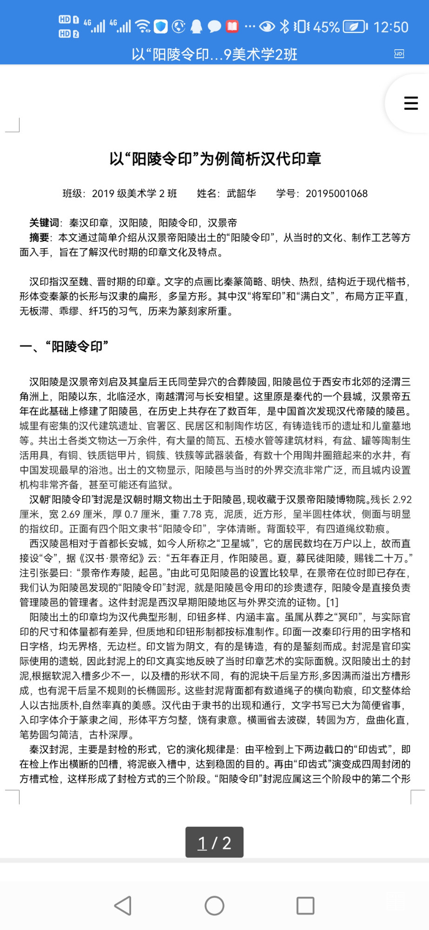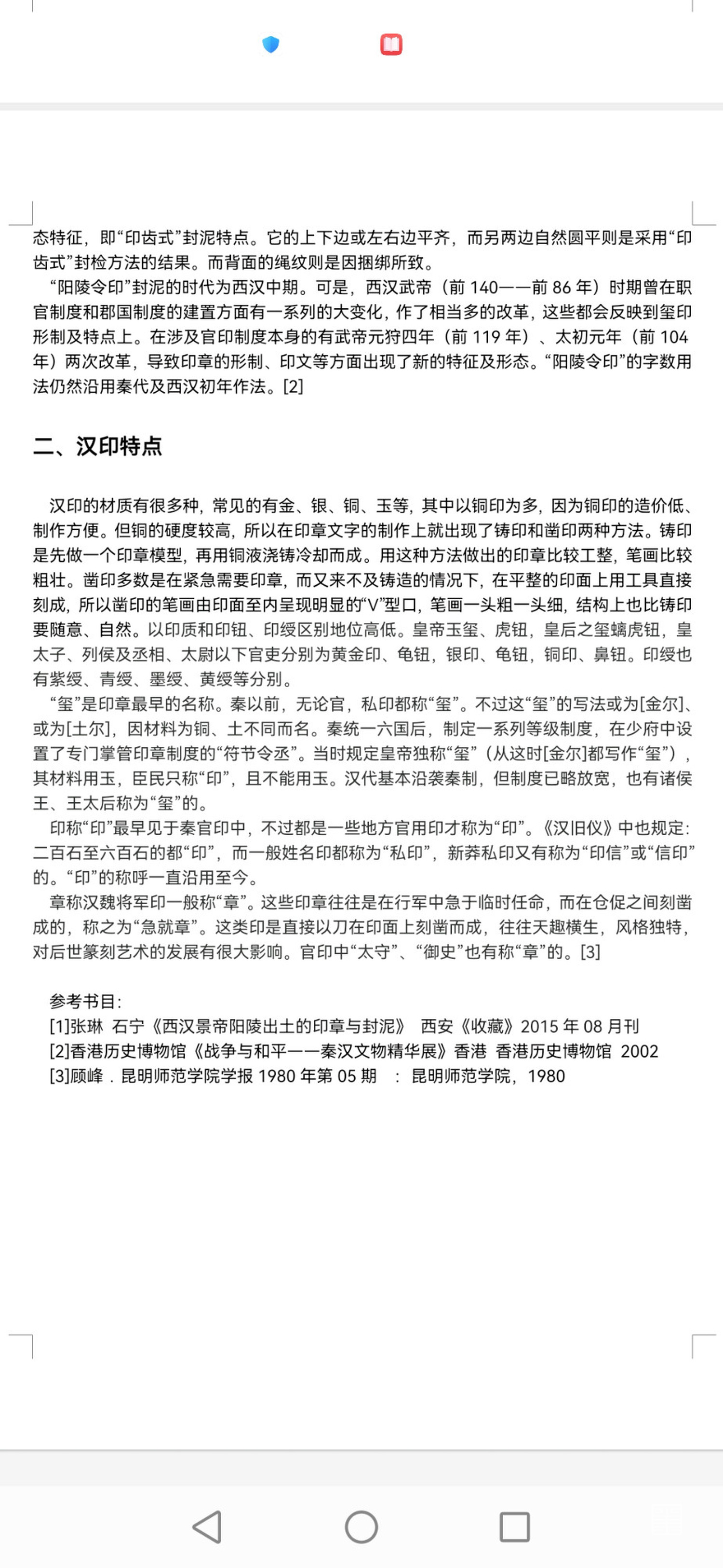 《以“阳陵令印”为例简析汉代印章》本文通过简单介绍从汉景帝阳陵出土的“阳陵令印”,从当时的文化、制作工艺等方面入手,旨在了解汉代时期的印章文化及特点。