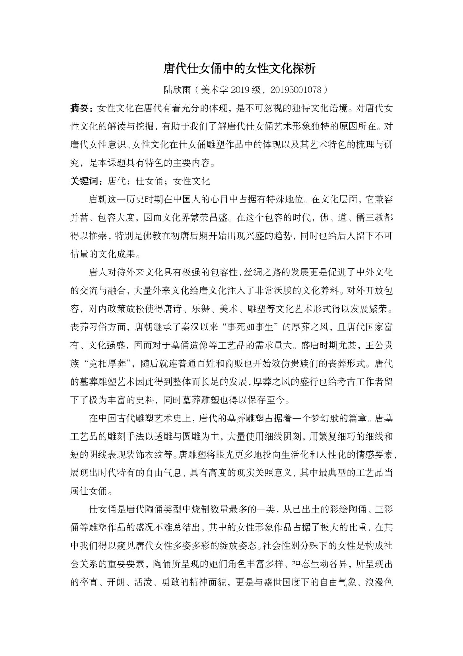 摘要:女性文化在唐代有着充分的体现,是不可忽视的独特文化语境。对唐代女性文化的解读与挖掘,有助于我们了解唐代仕女俑艺术形象独特的原因所在。对唐代女性意识、女性文化在仕女俑雕塑作品中的体现以及其艺术特色的梳理与研究,是本课题具有特色的主要内容。