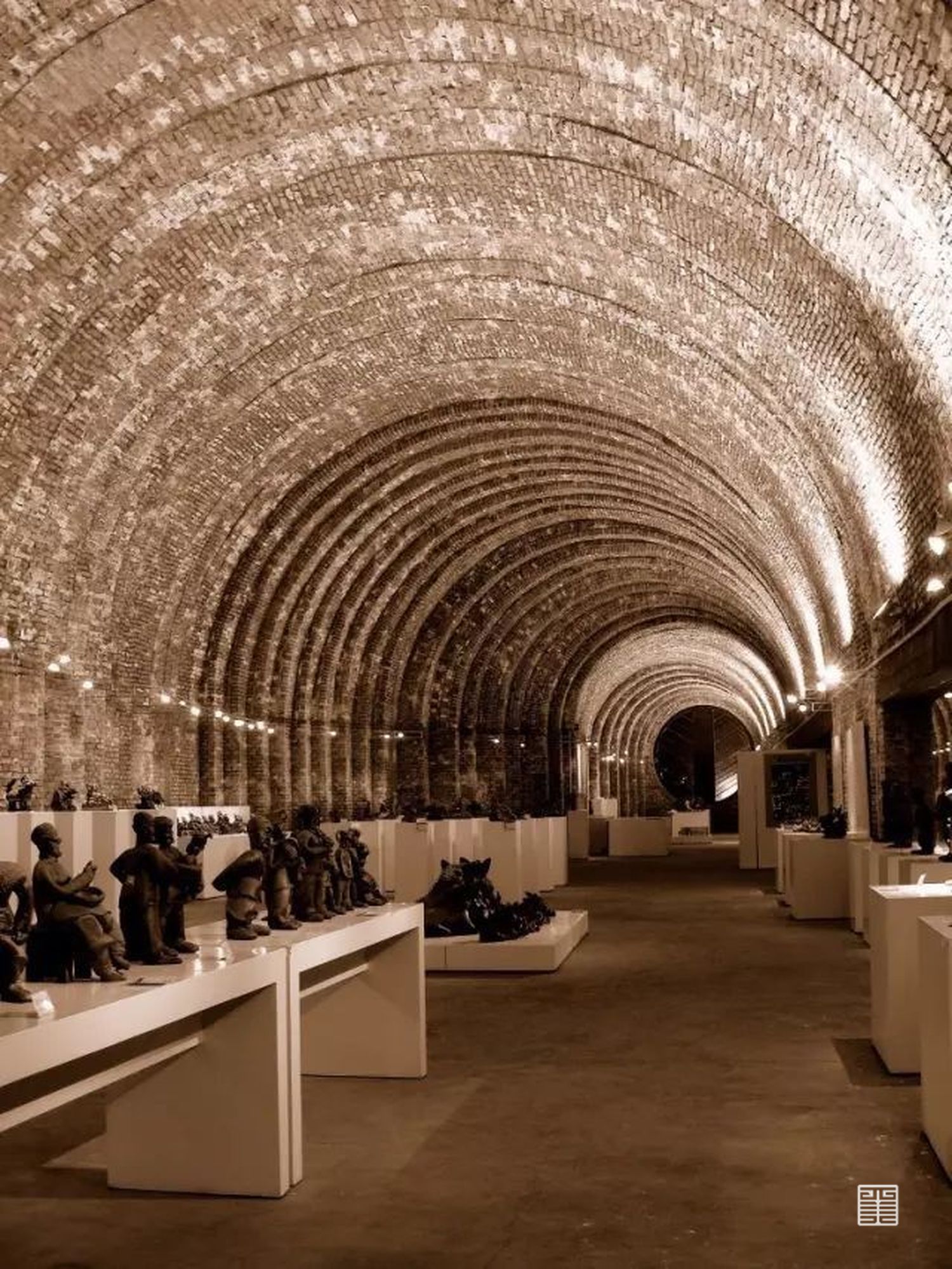 而我国西北地区丰富的粘土资源,加上从古代流传下的用砖石材料搭建建筑的技术,得天独厚的资源和来自古代的古老技术被应用到博物馆,使博物馆的墙壁带有真正砌砖的痕迹和纹理和黄土高原的古朴厚重感。走进展厅,发现博物馆的内部既像窑洞,又像陶窑,极具西北风情,更容易唤起从城市来的参观者的共情,一进门就将他们带回古老生活时候的会议。同时,和传统的陶器进行了对话,也丰富了现代陶艺作品的内涵。
