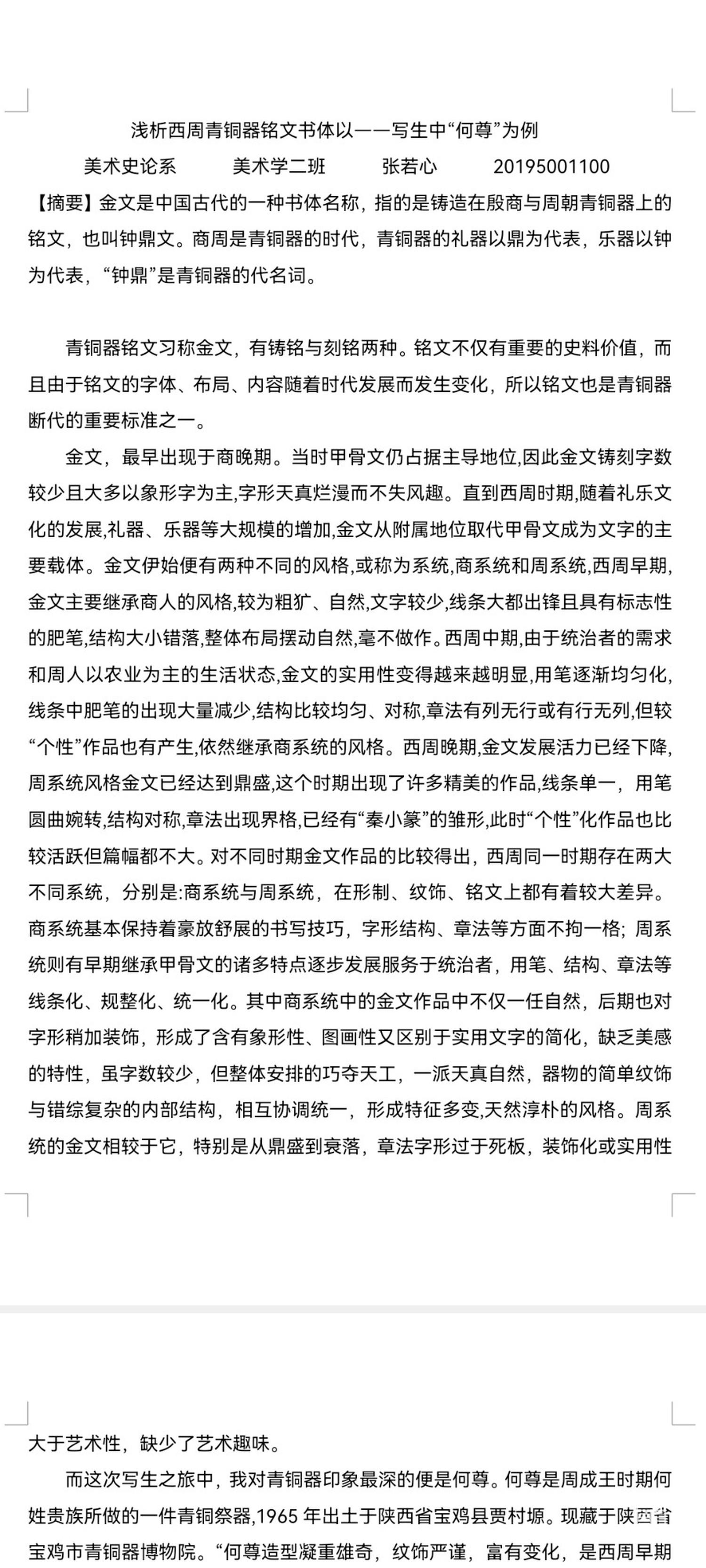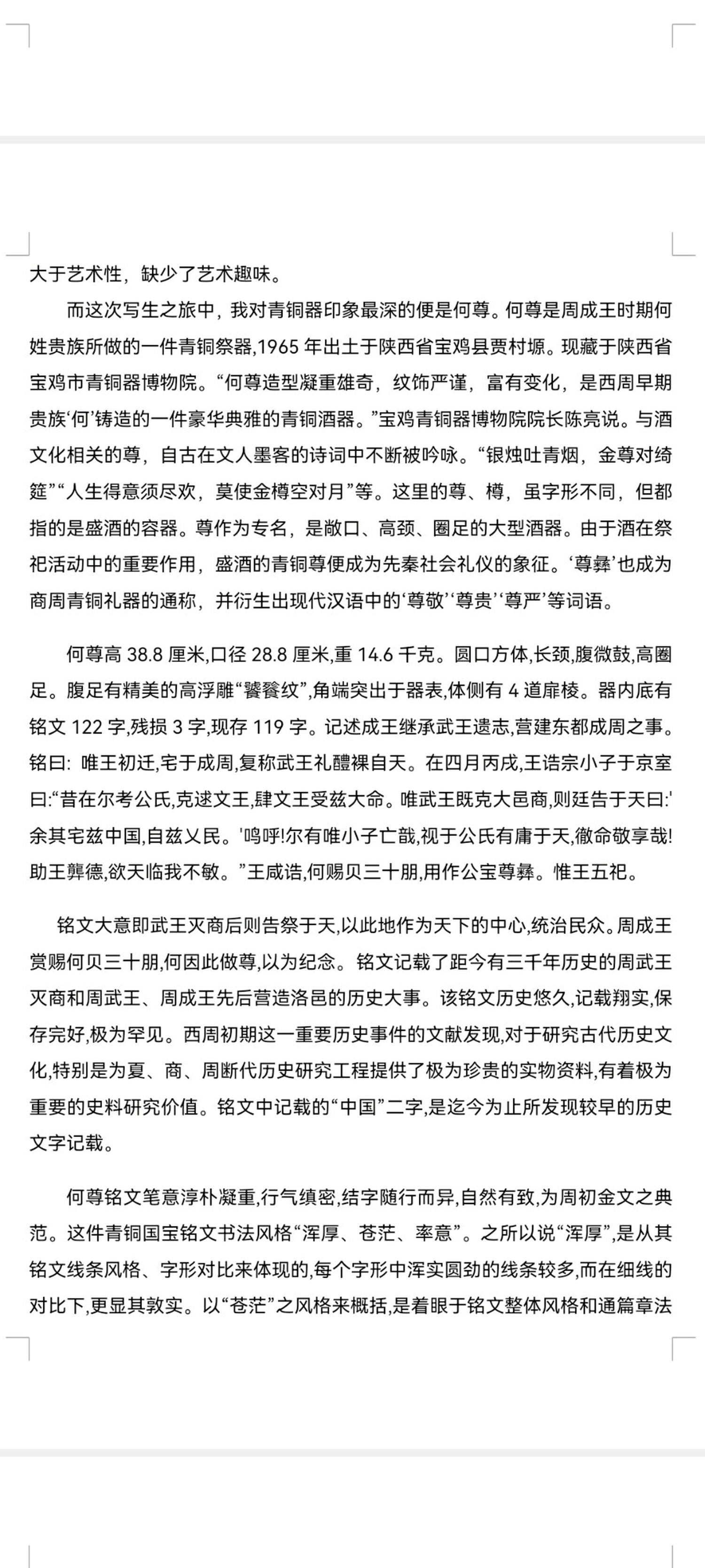 浅析西周青铜器铭文书体以--写生中“何尊”为例