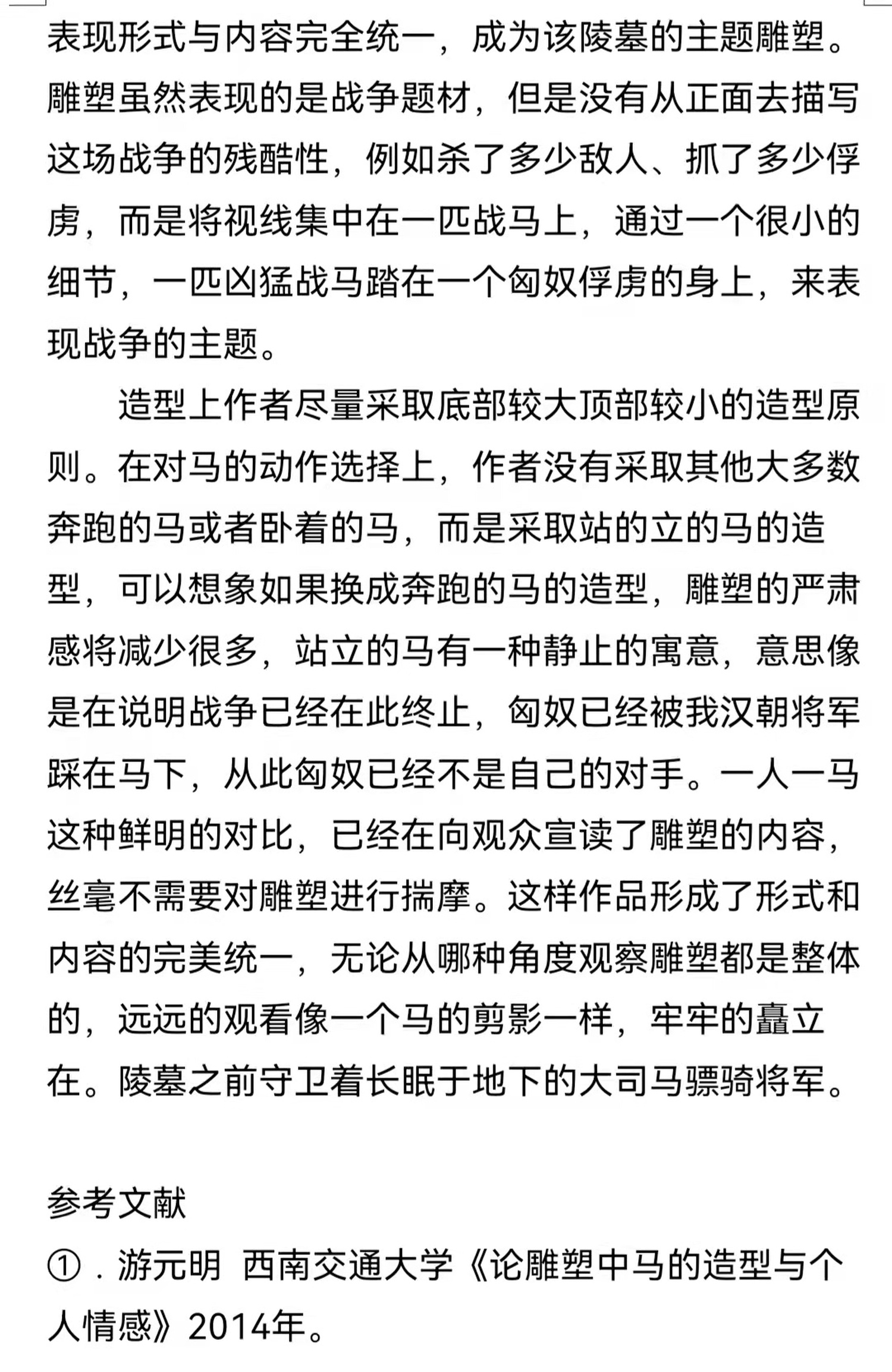 ①.游元明 西南交通大学《论雕塑中马的造型与个人情感》2014年。