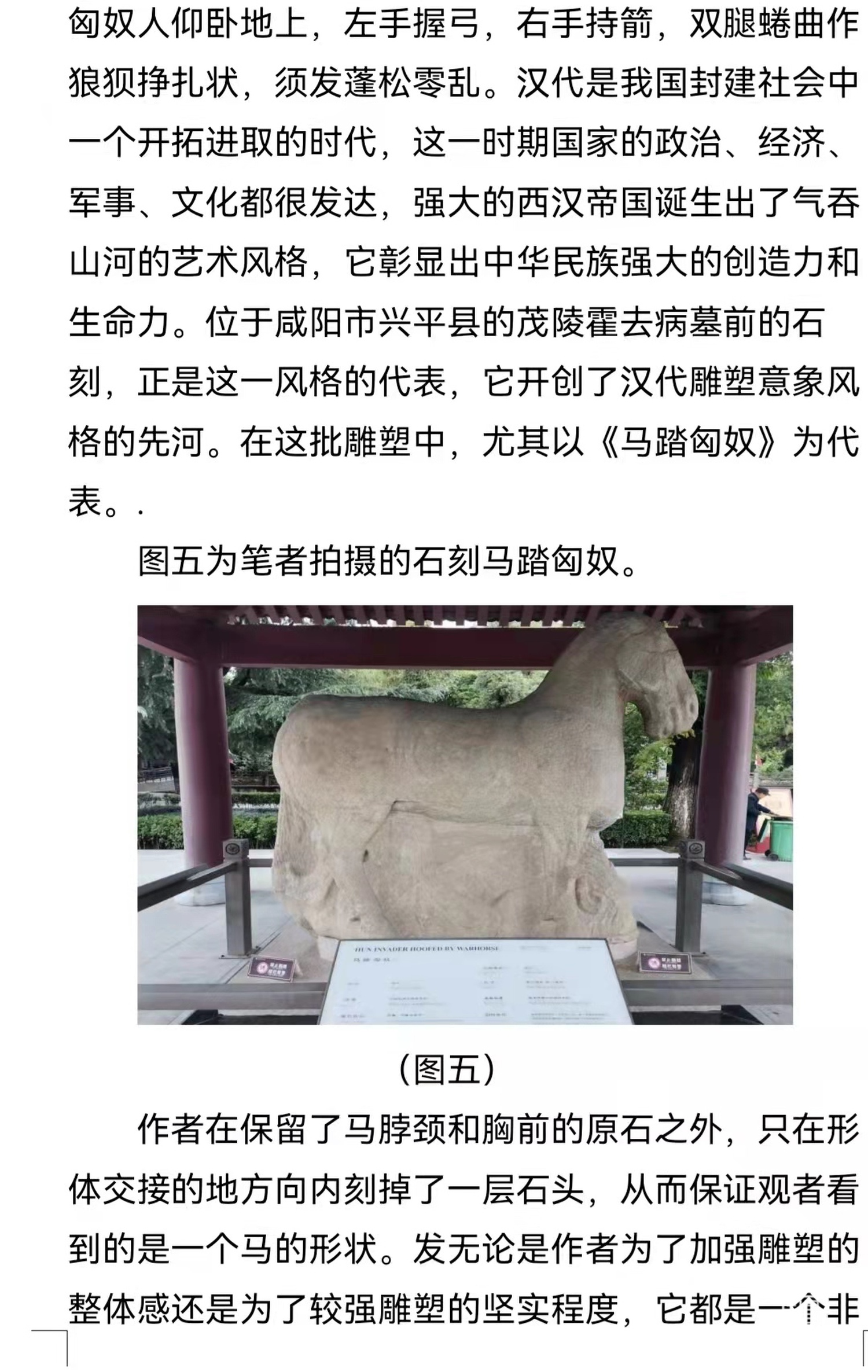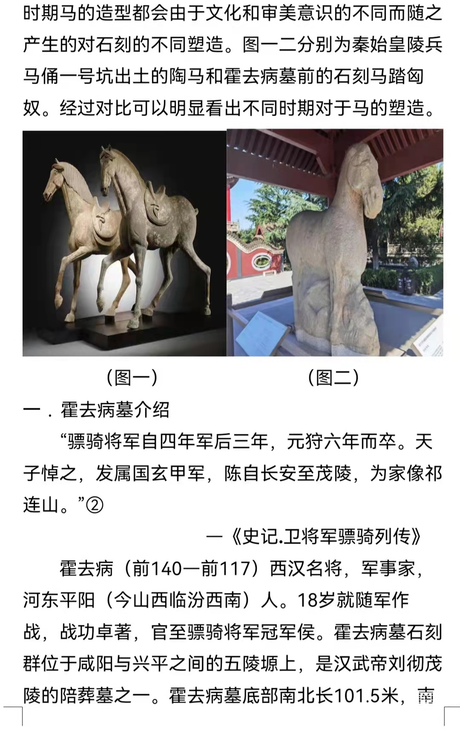 摘要:纵观美术史,动物是雕塑创作的重要题材。尤其引人注目的是马作为动物题材在陵墓石刻雕塑中占有着举足轻重的地位。本文主要以霍去病墓石刻雕塑《马踏匈奴》为例分析西汉陵墓石刻雕塑的造型艺术特点。
