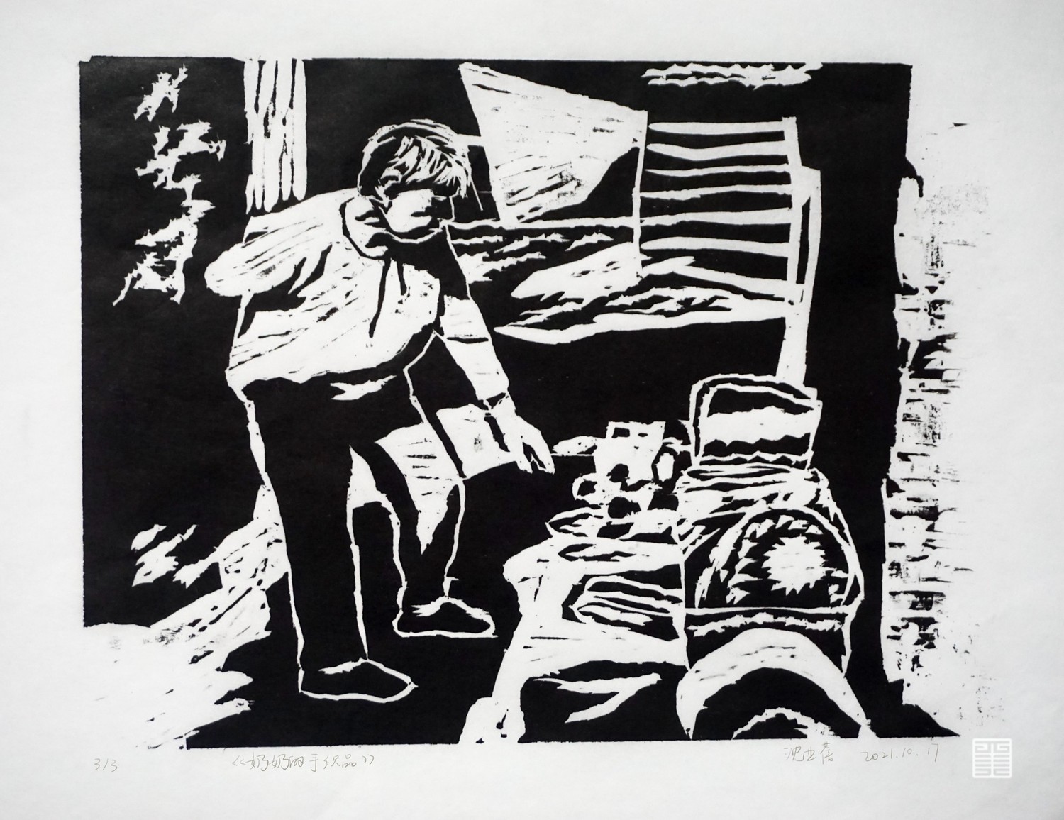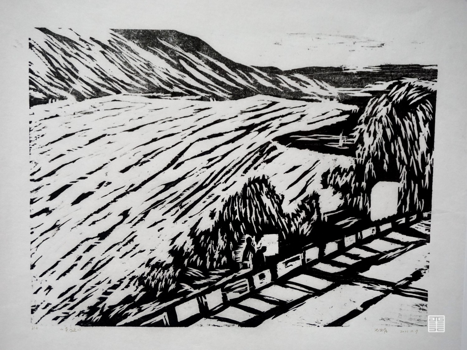 这十张作品是对陕北文化考察生活的总结,从当地风土人情及人文习惯等方面入手,刻画的是当地村民们的生活场景。陕北地区的人们大多有着安于现状,闲散自得的性格特征,尽管黄河边的生活环境并不宜居,但他们也一直没有走出村里,离开这里。在陕北见到了与南方生活习惯等方面的许多不同,一方水土养一方人,南北两方环境差异使得南北方人的生活习惯大不相同。文化考察让我对陕北有了更进一步的了解,创作的作品也都是围绕着我以上所说内容而进行的。