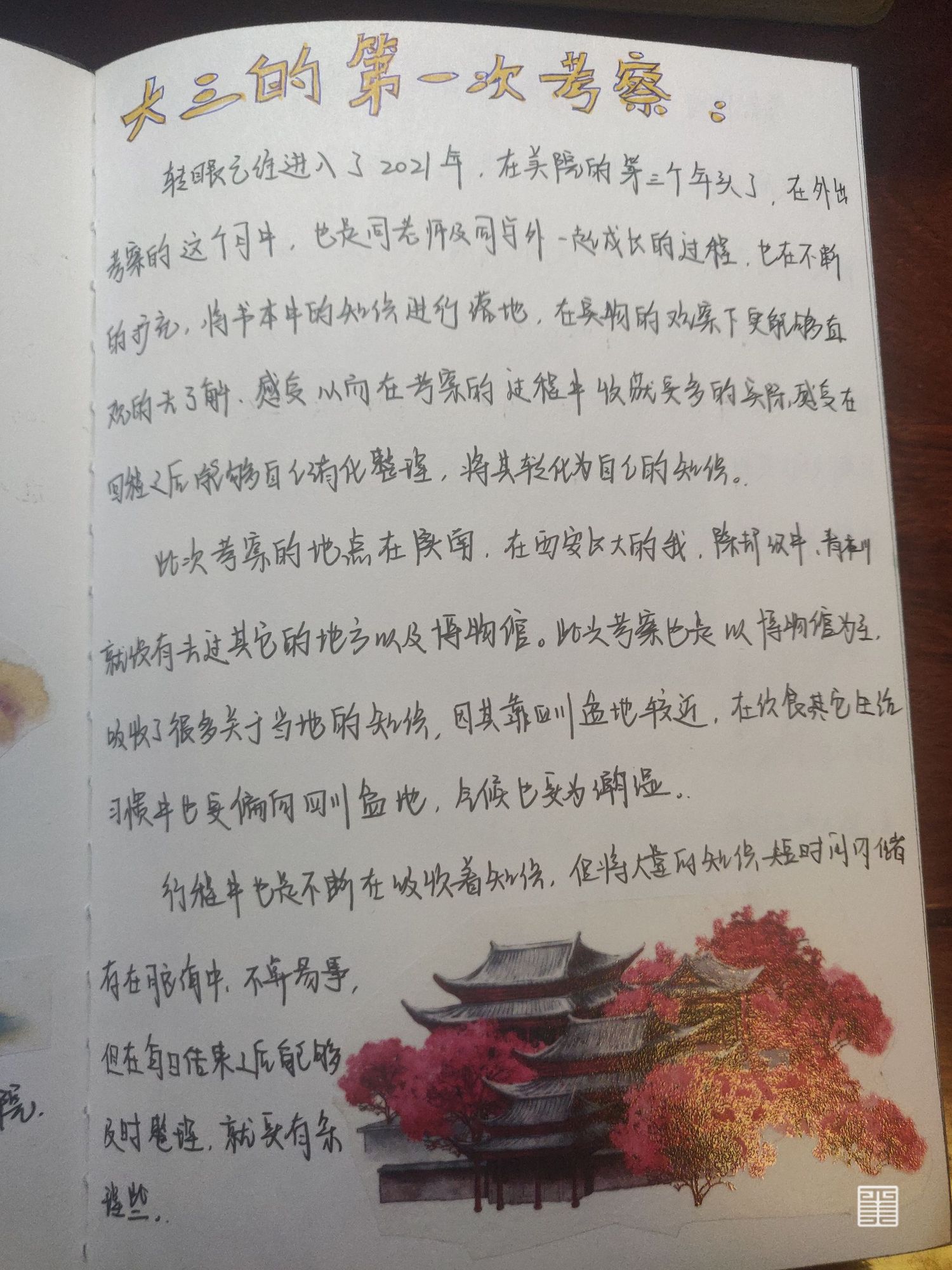 对本次陕南考察做了《考察记》的梳理纪念,对于在陕南考察中的感悟于纸笔间表达