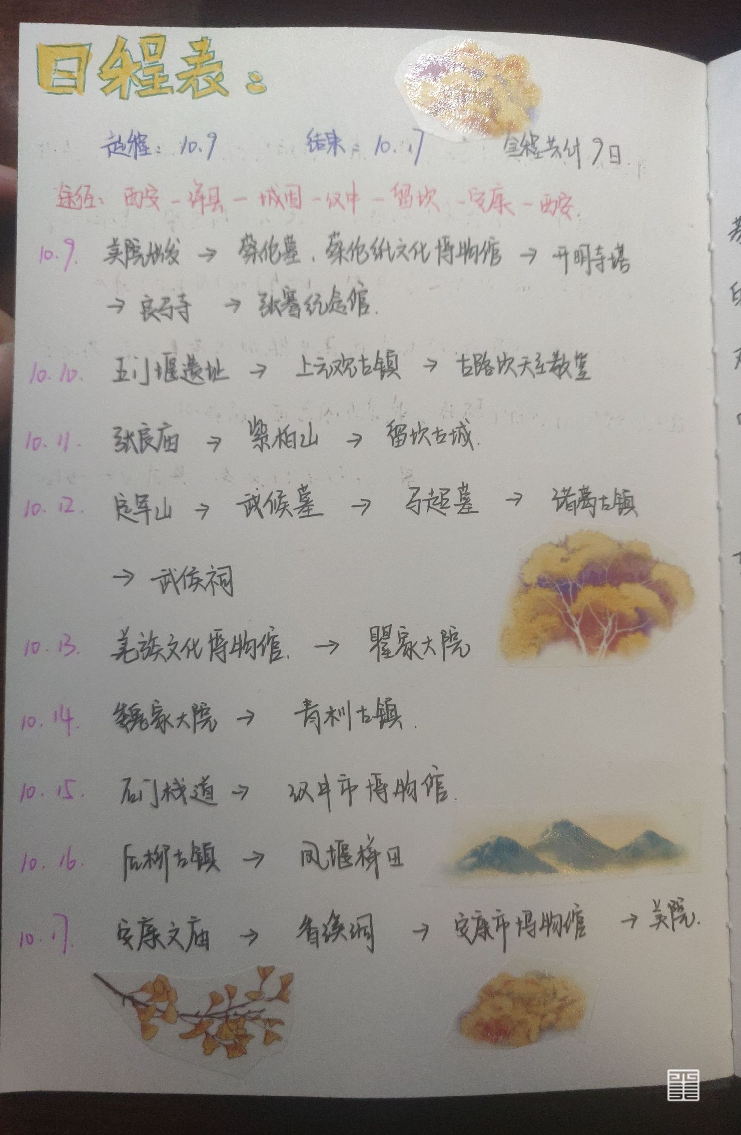 同样对于陕南考察的各个地点进行梳理,将本次考察的大致行程梳理归纳