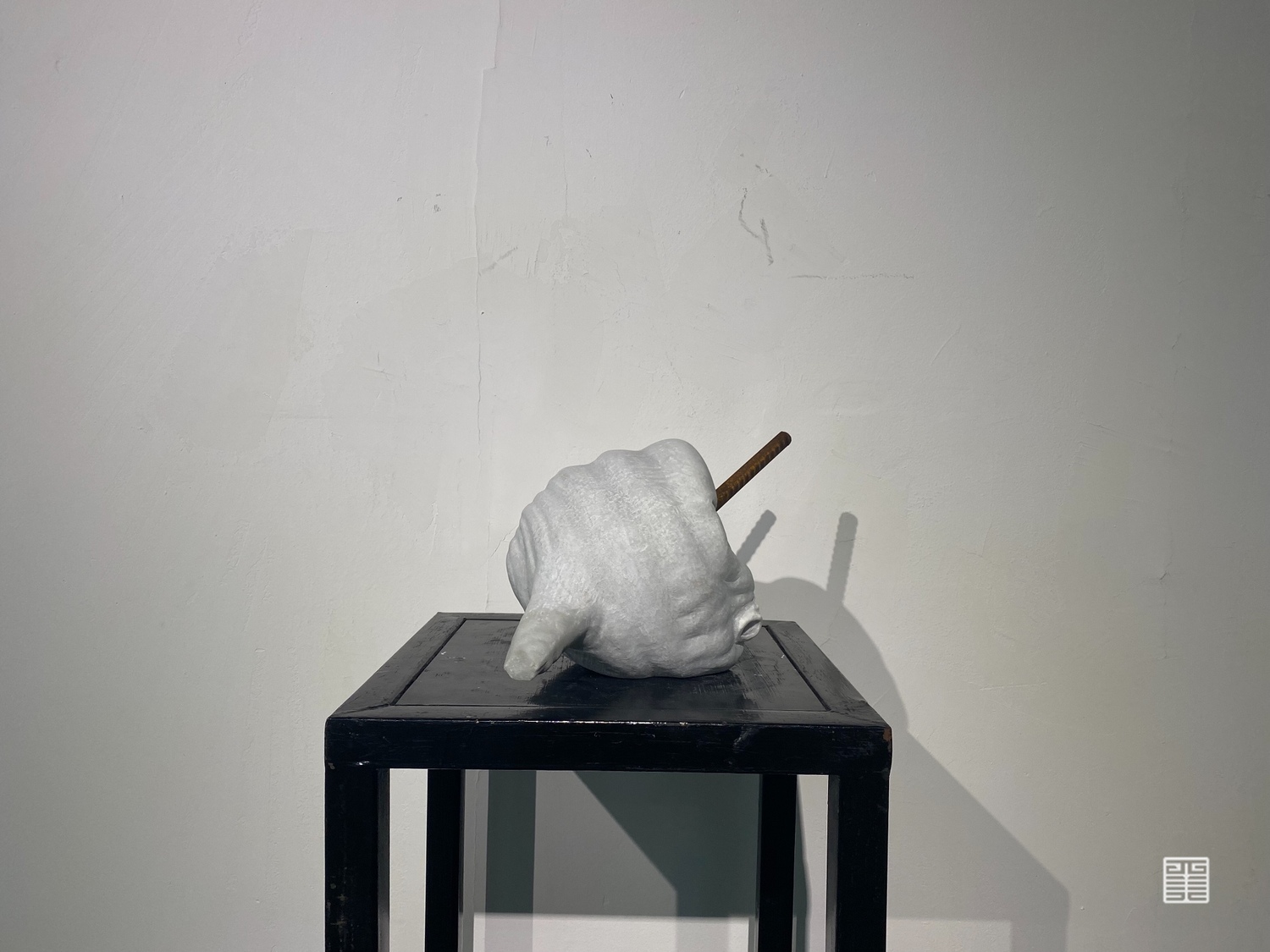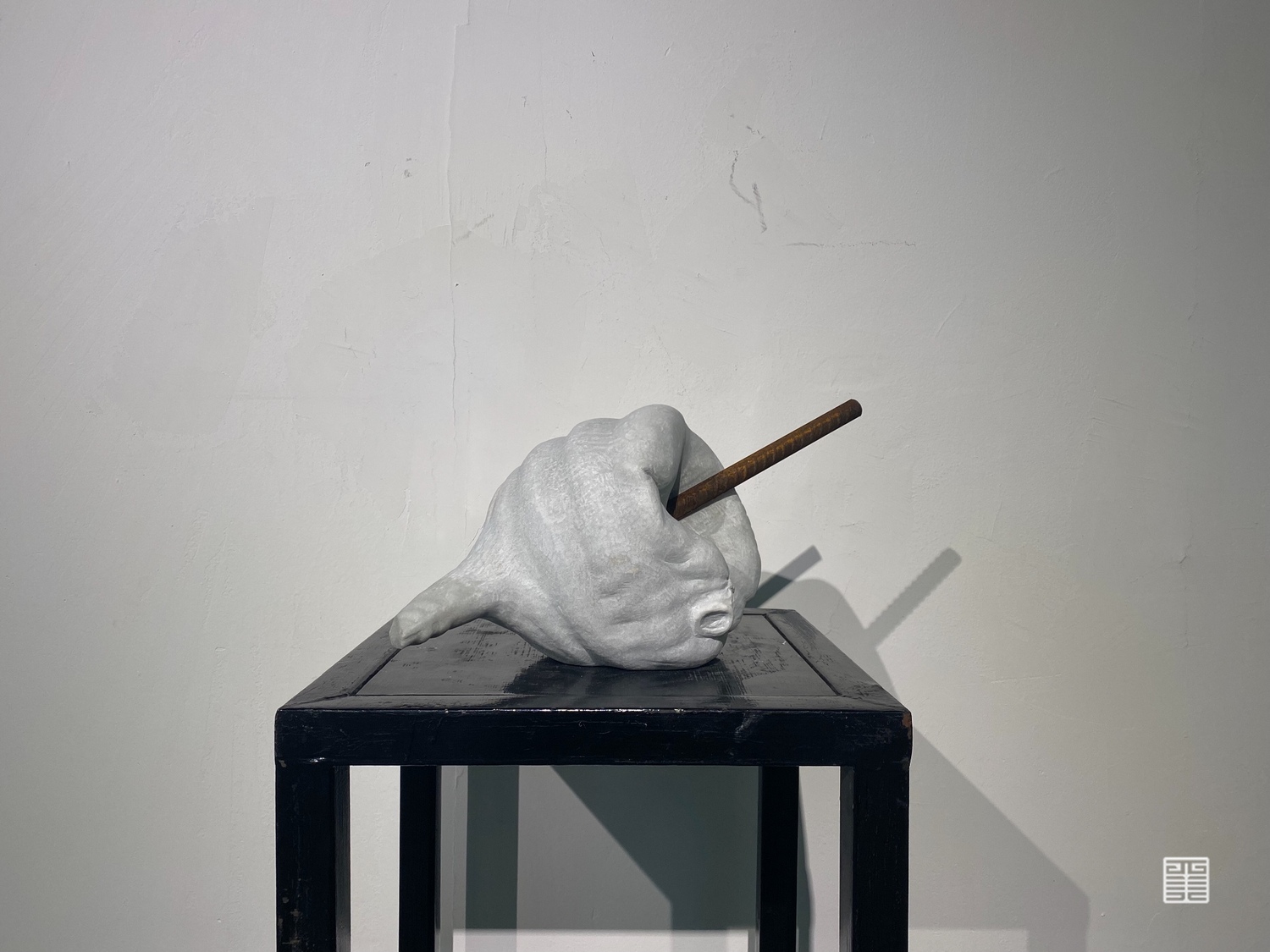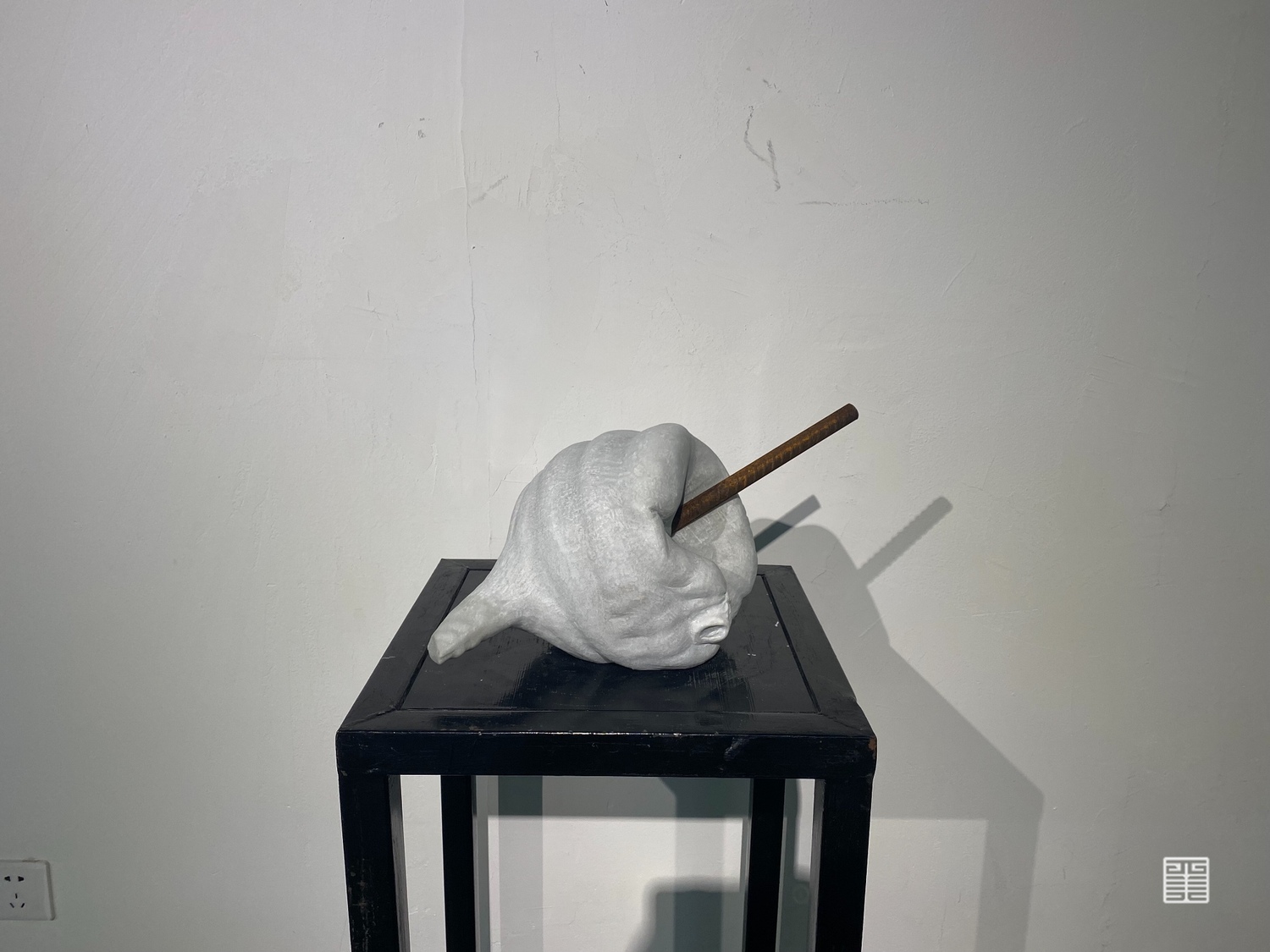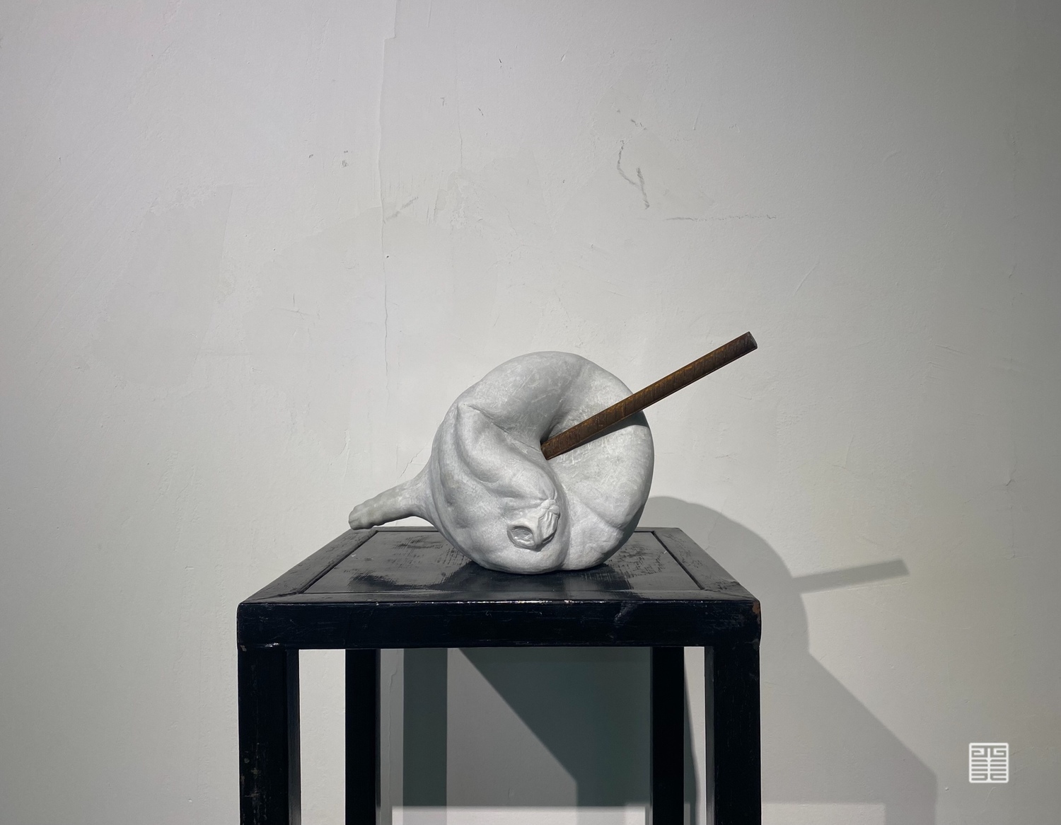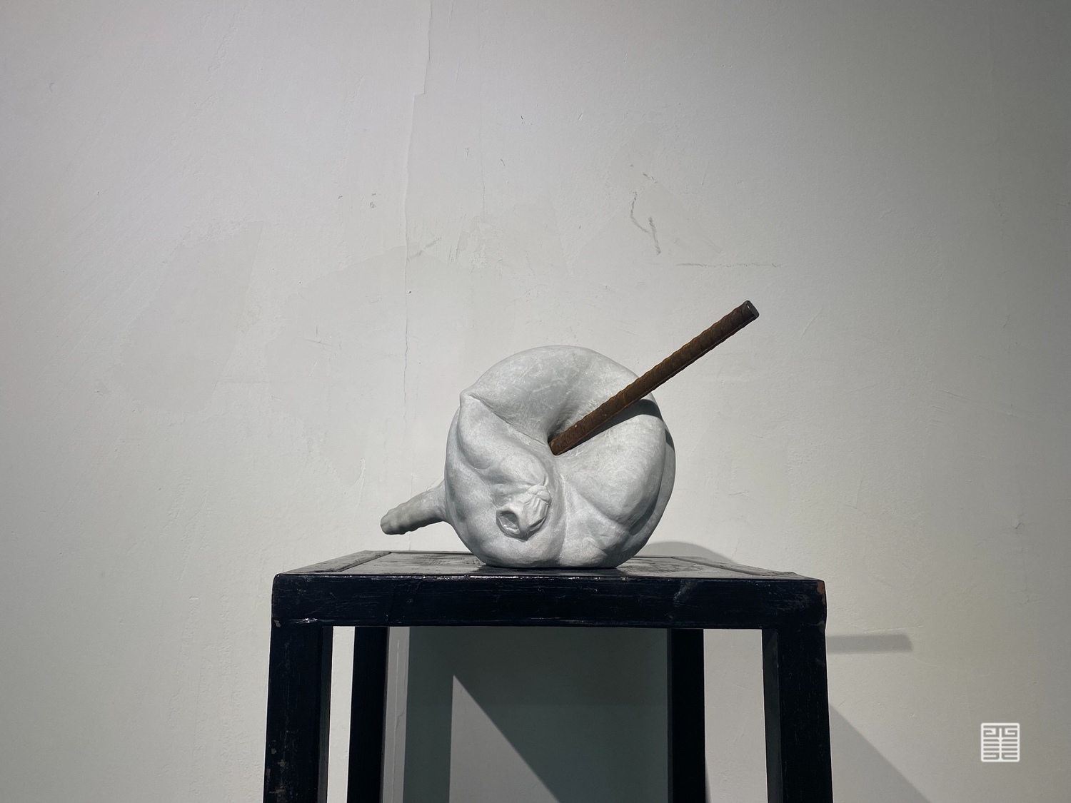 《金石之交》是我从材料上着眼的名称,译为“如金石般的交情”。从视觉图像上看,一方面不管是选取了水球这一形象误差,还是从材料的质感和颜色选择上,都是为了使两种材料的坚硬特性更符合我心中的阴阳相合概念,使两者之间更融洽。另一方面也是试图用材料的永久性来定格住两者发生联系的那短暂瞬间。矛盾的物体,在这一刻永恒,如同金石般的交情。