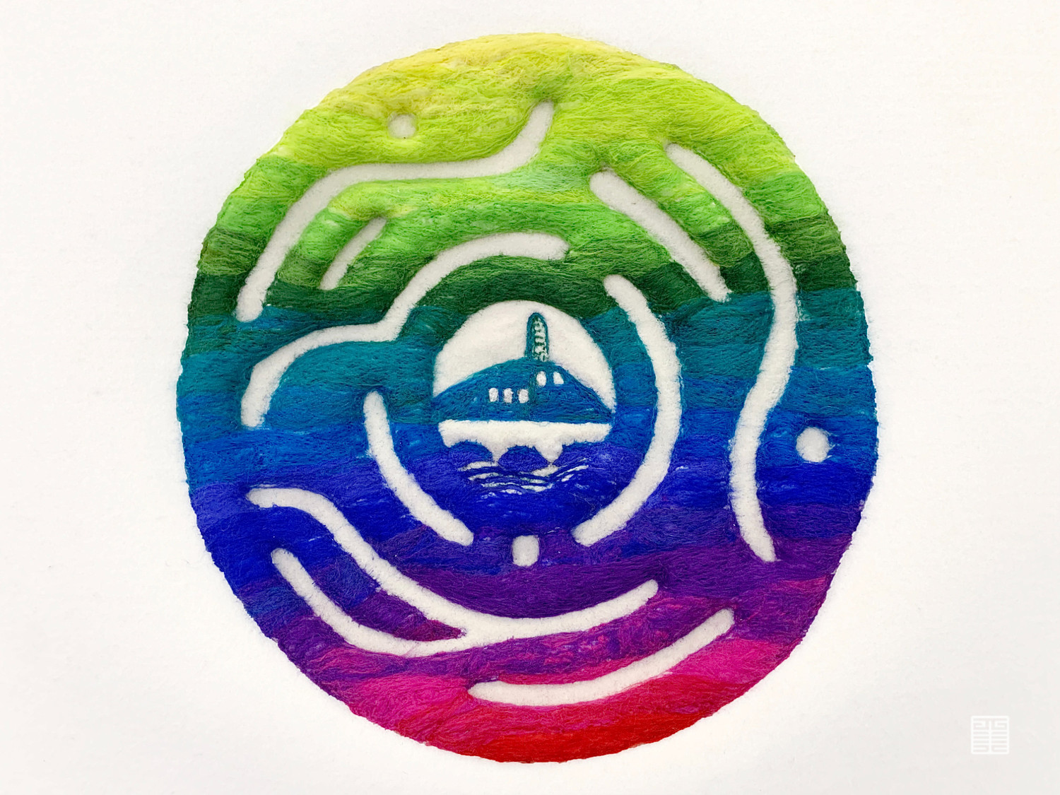 2021年全十四运会会徽羊毛毡浮雕画,制作过程感觉有点兴趣,颜色过渡非常重要,质感必须优良!从毛毡上用笔画好最佳的形状和位置,再把白色羊毛或者废弃羊毛扎进90cm*90cm方形白色毛毡,作为浮雕胚体,适合固定彩色羊毛,制作过程很简单。圆形是会徽,直径50CM 。彩色羊毛按照主体物图片中实际颜色进行铺色,两个颜色需要混合,颜色过渡。符合色彩过渡,色彩丰富,作品完美。