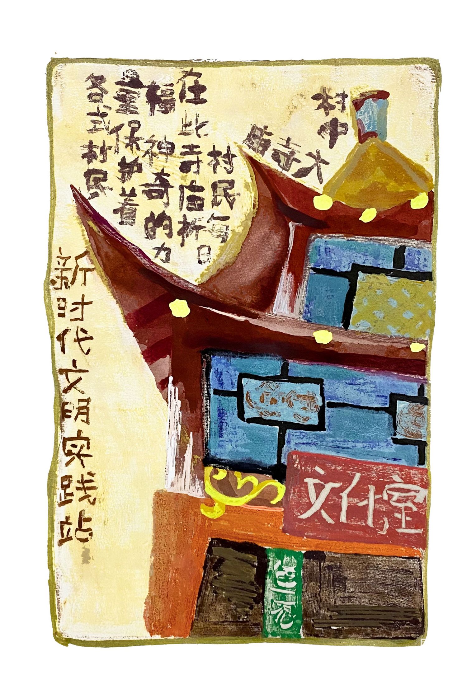 采用油画颜料、丙烯马克笔及对印的形式进行创作