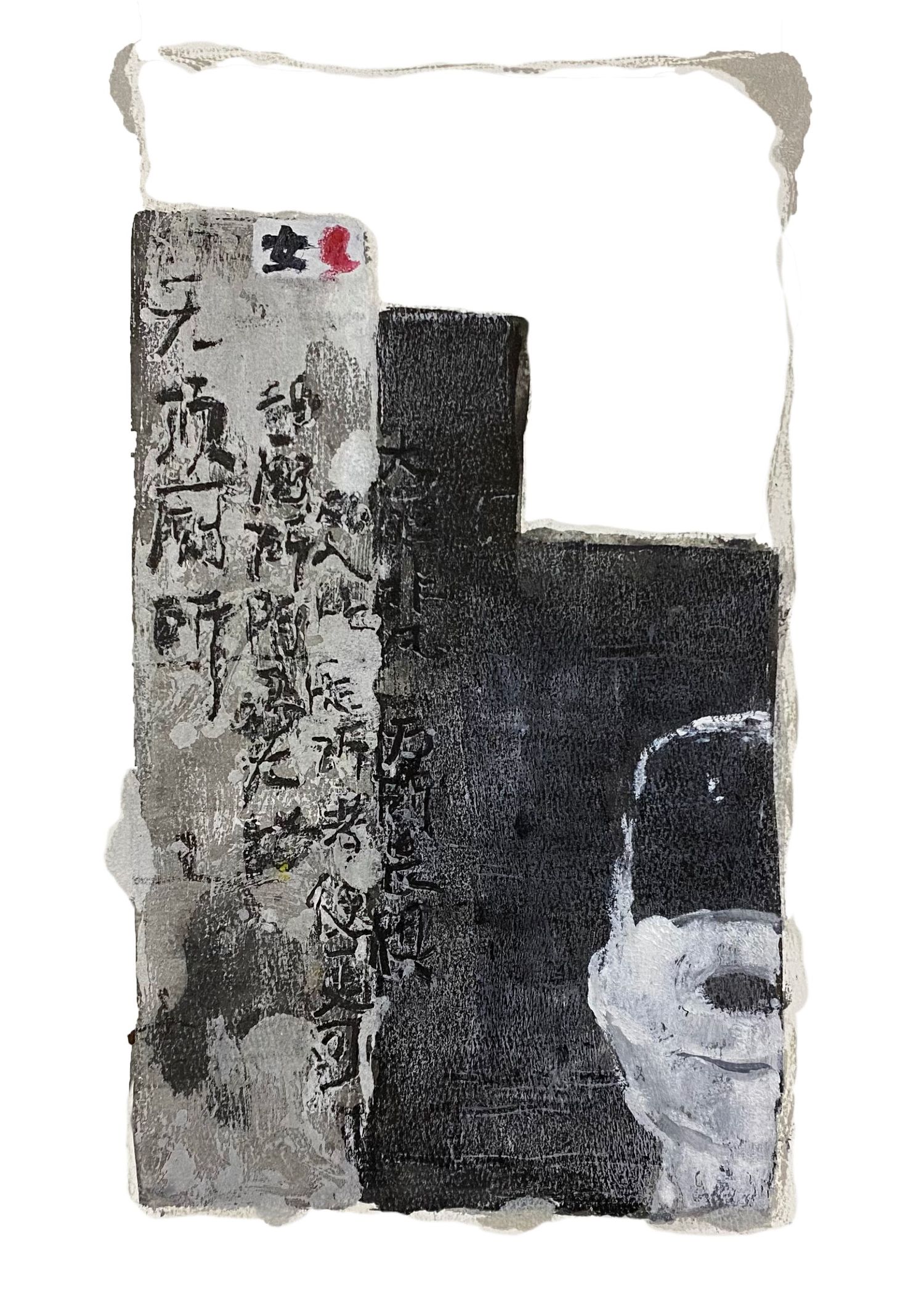 采用油画颜料、丙烯马克笔及对印的形式进行创作
