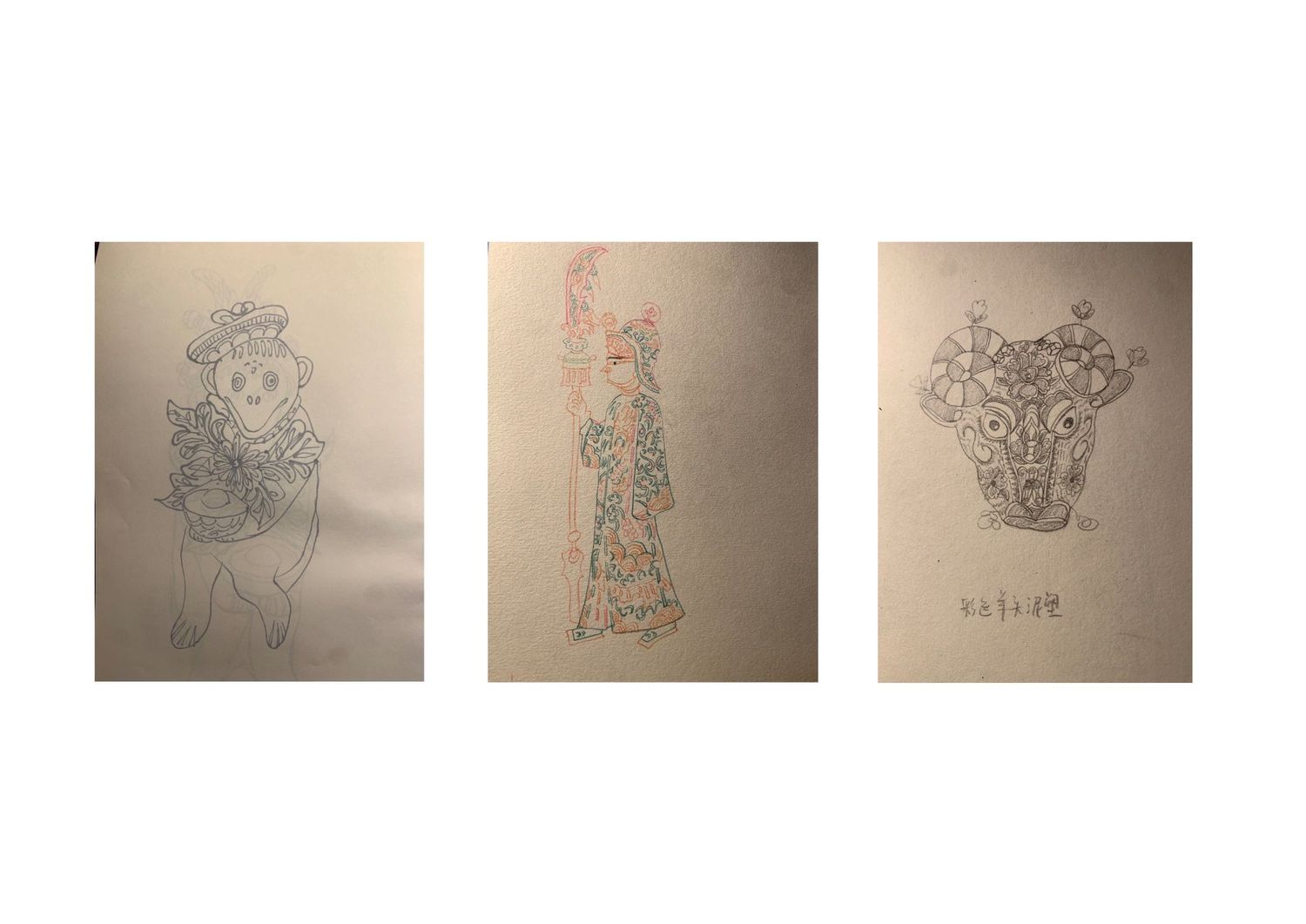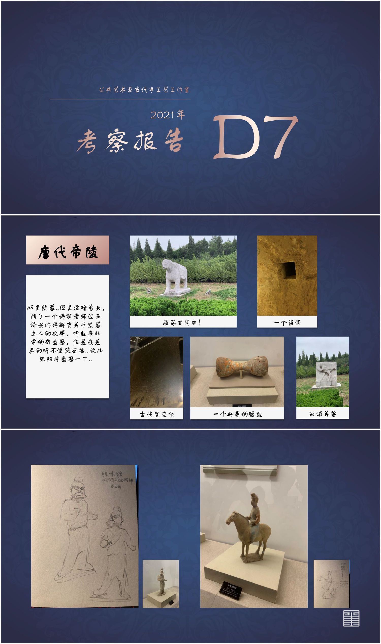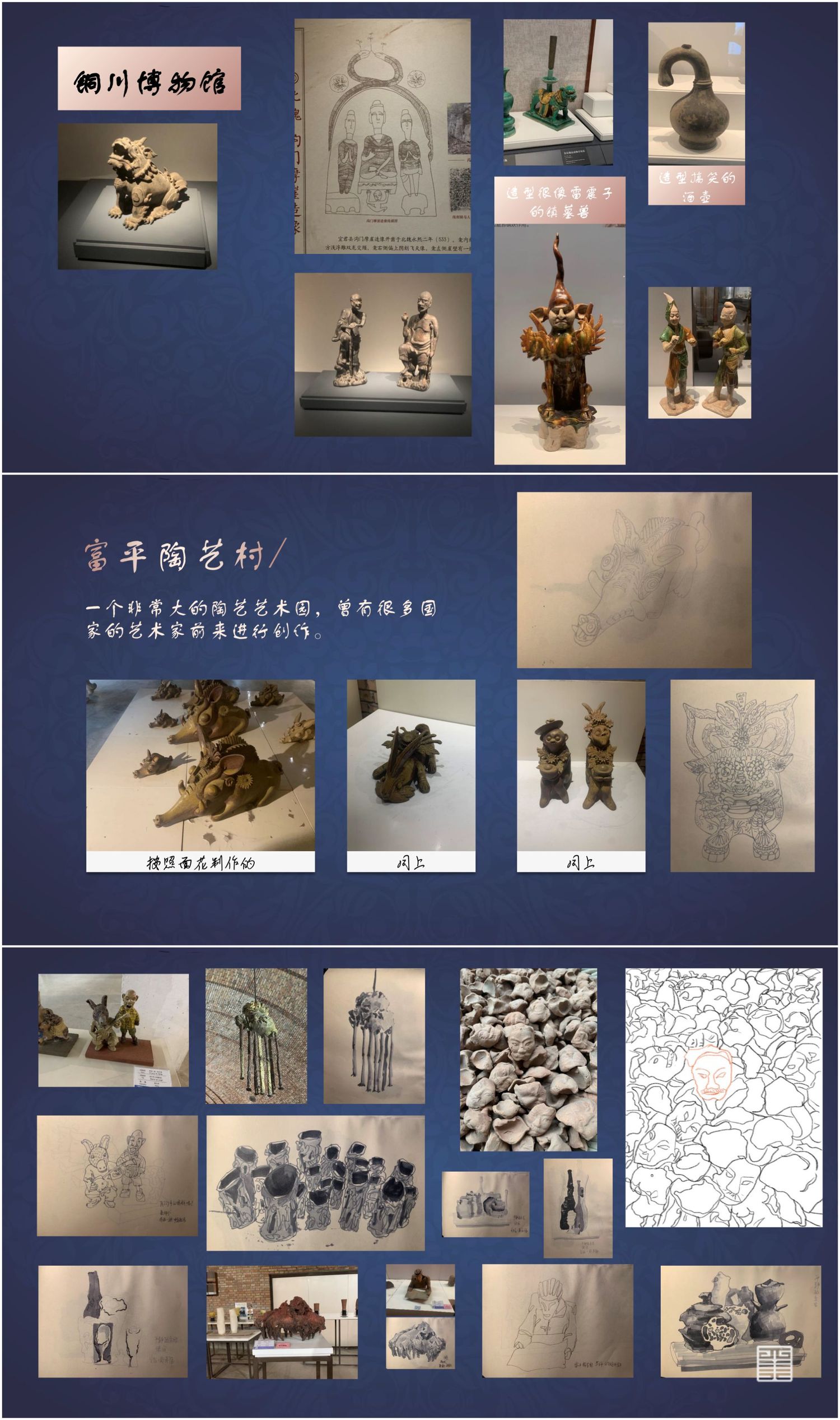 图1为根据考察所创作的设计作品,图2-12为考察报告,图13-15为考察期间部分速写
