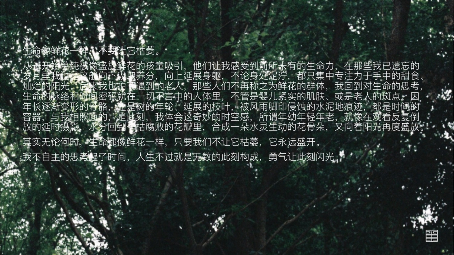 其实无论何时,生命都像鲜花一样,只要我们不让它枯萎,它永远盛开。