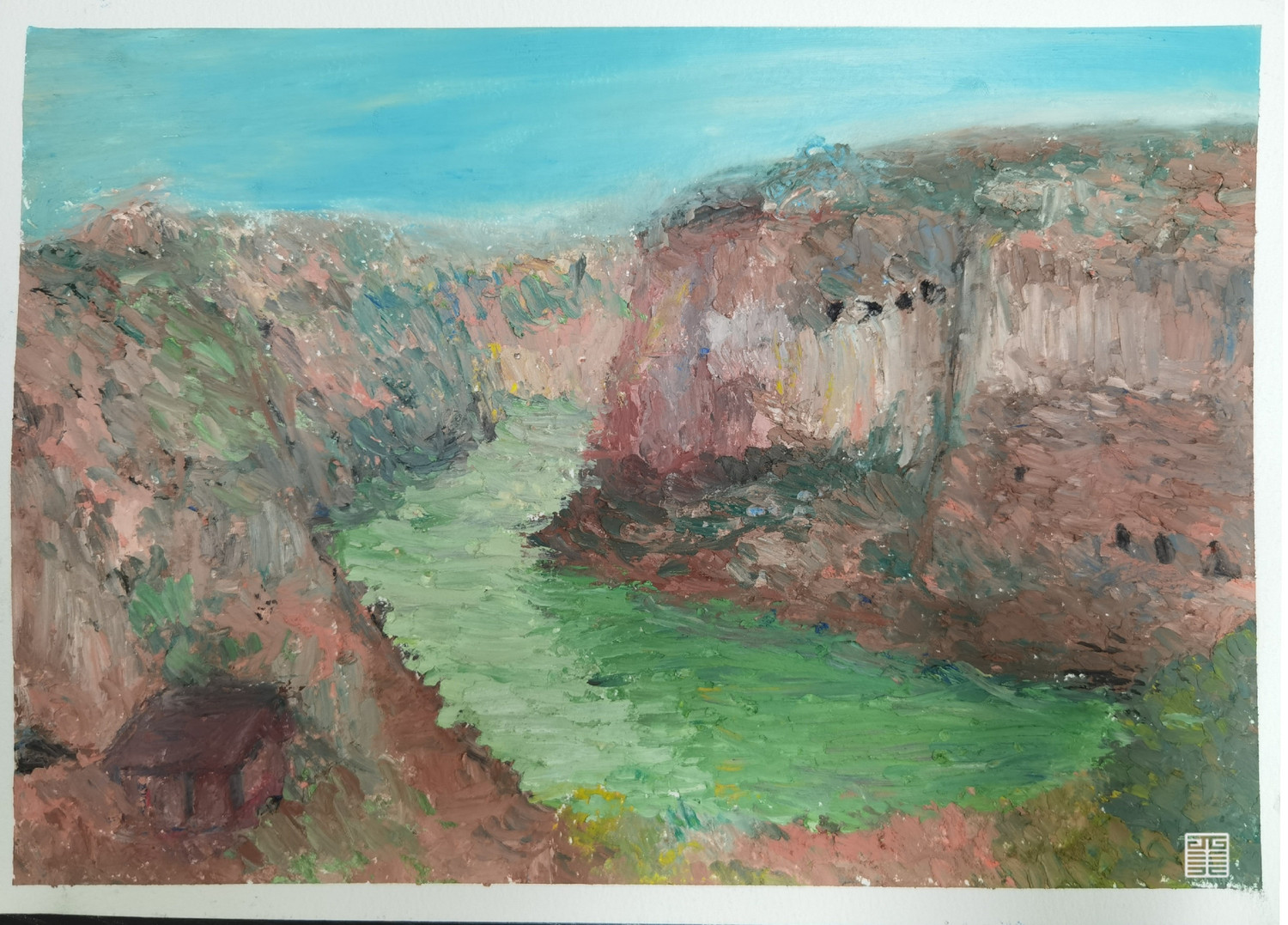 采用油画棒和签字笔,个人感觉天空部分的描绘要加强。油画棒是后期使用的,但表现效果比签字笔更明艳,所以多展示了几张。