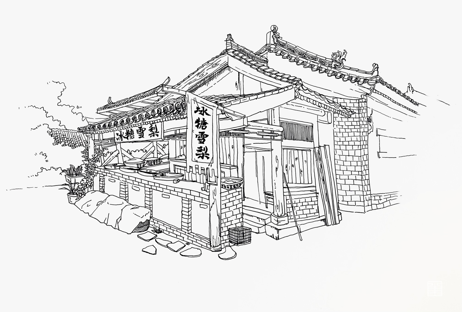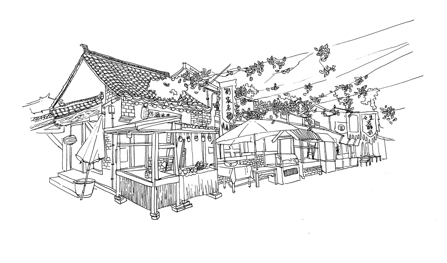 前三张写生的是关中民俗博物院,一系列关中标准风格建筑、雕梁各具特色,形态各异,关中民俗艺术博物院建设突出明清园林建筑风格,展现陕西丰厚的文化底蕴和文化遗存。后三张写生于白鹿仓,白鹿仓建筑以“匠人木作”为特色,423栋民俗建筑由专业工匠按照传统建筑方法而建,融合了陕北、关中、陕南等风格特色,多以木作建筑为主。