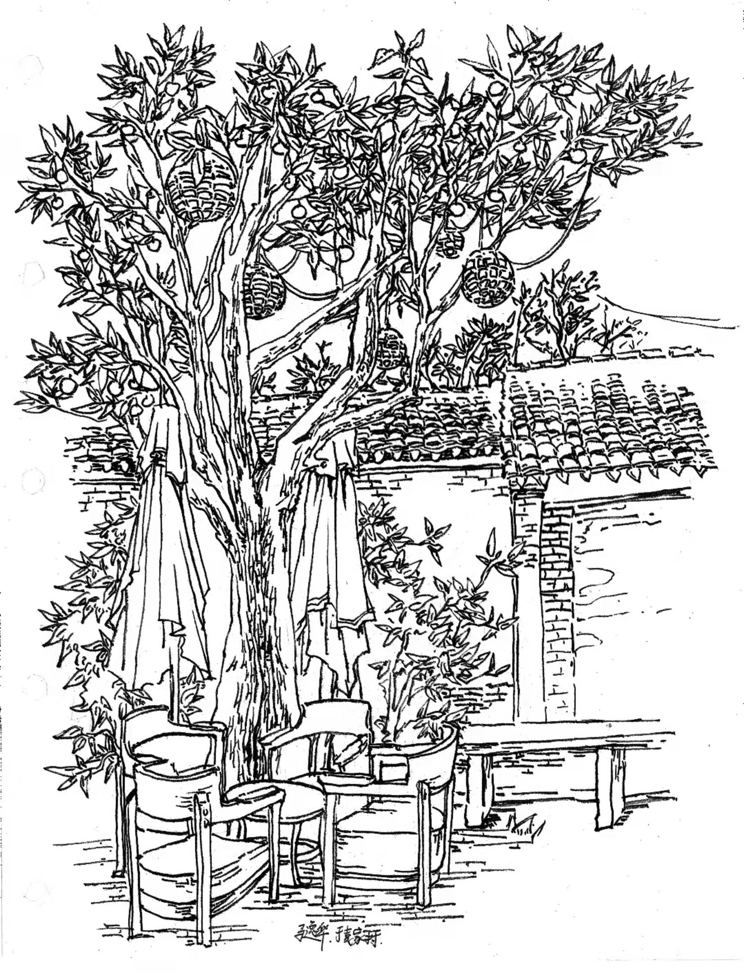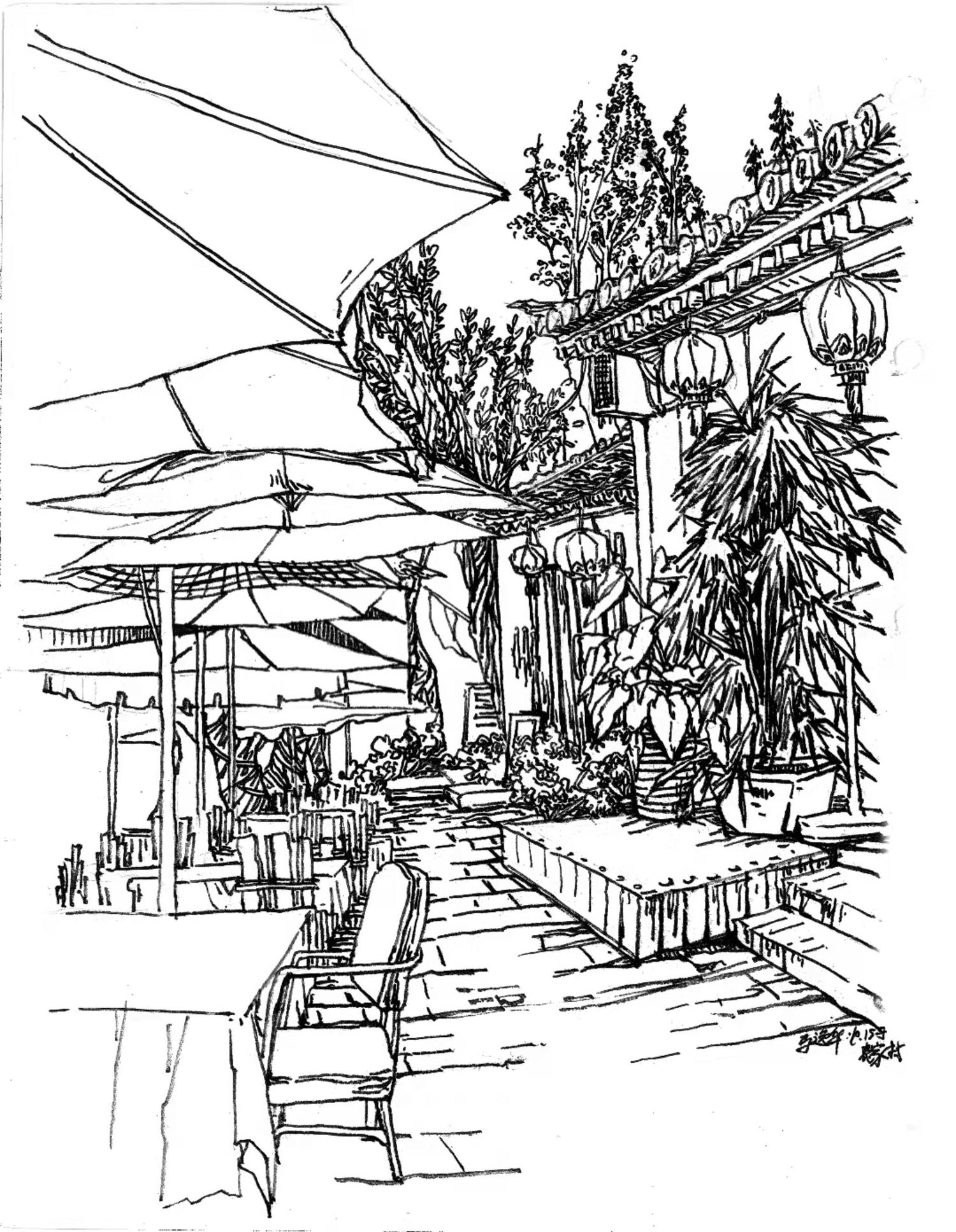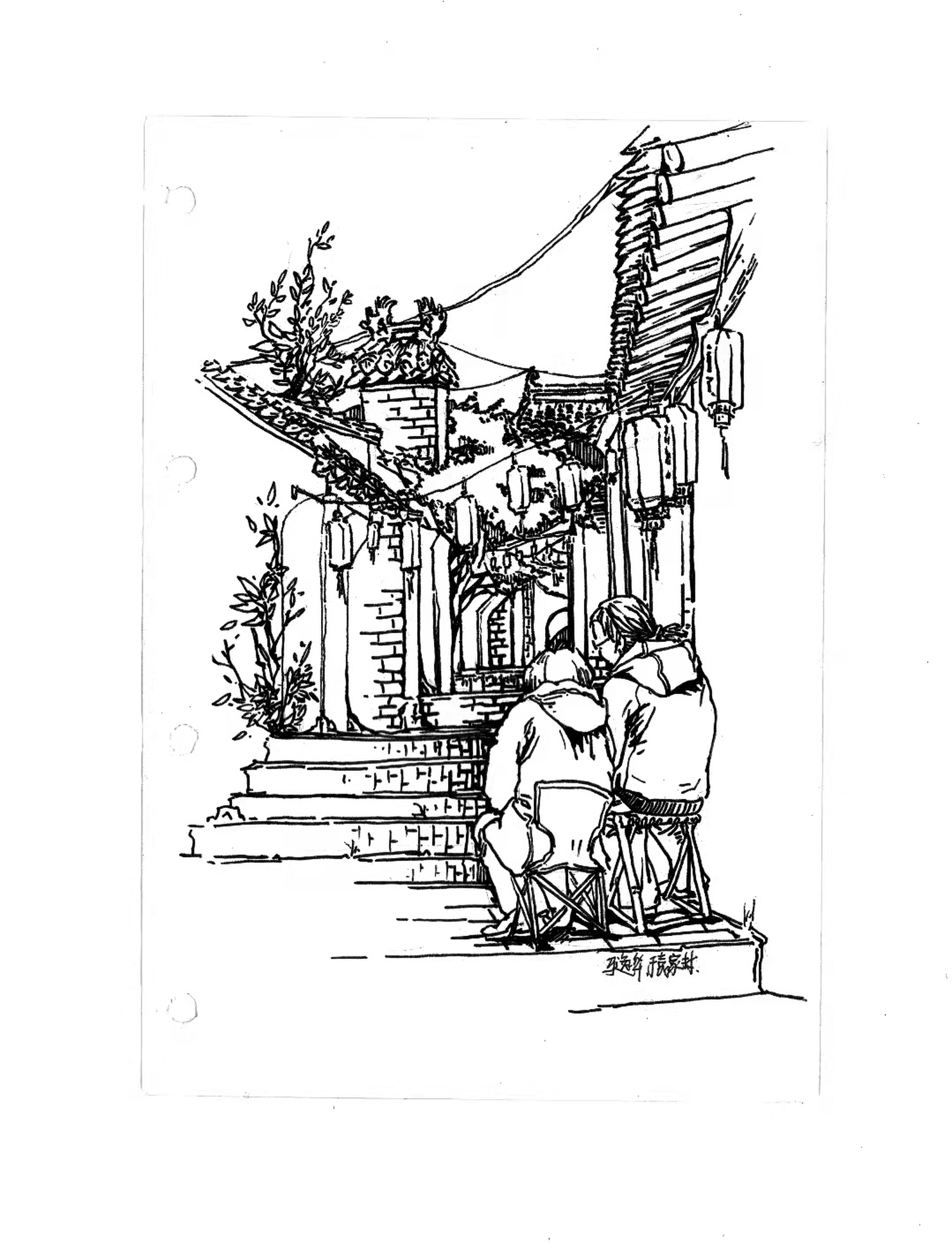 本篇五张习作均来自与袁家村的写生之行,以速写的形式描绘的了当地的人居环境。