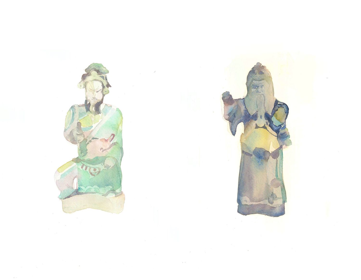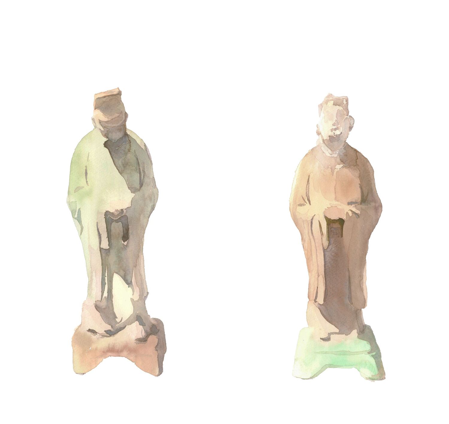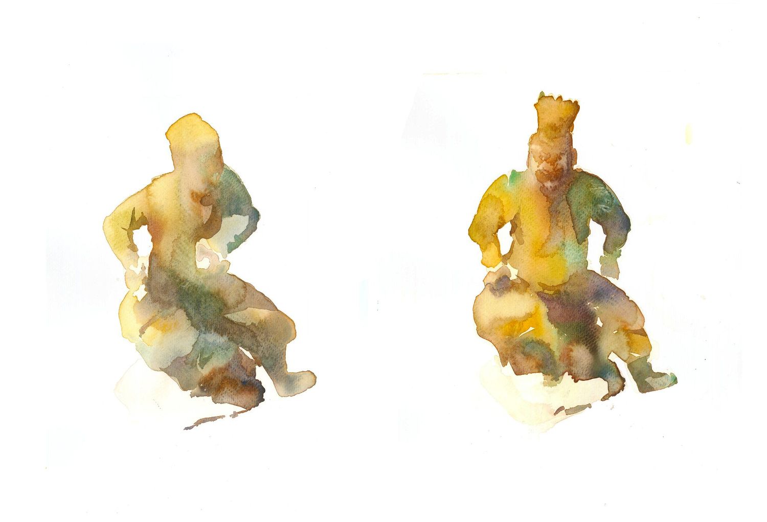 以汉中当地博物馆藏品中彩陶作为创作主题 进行两两一组的三组水彩作品