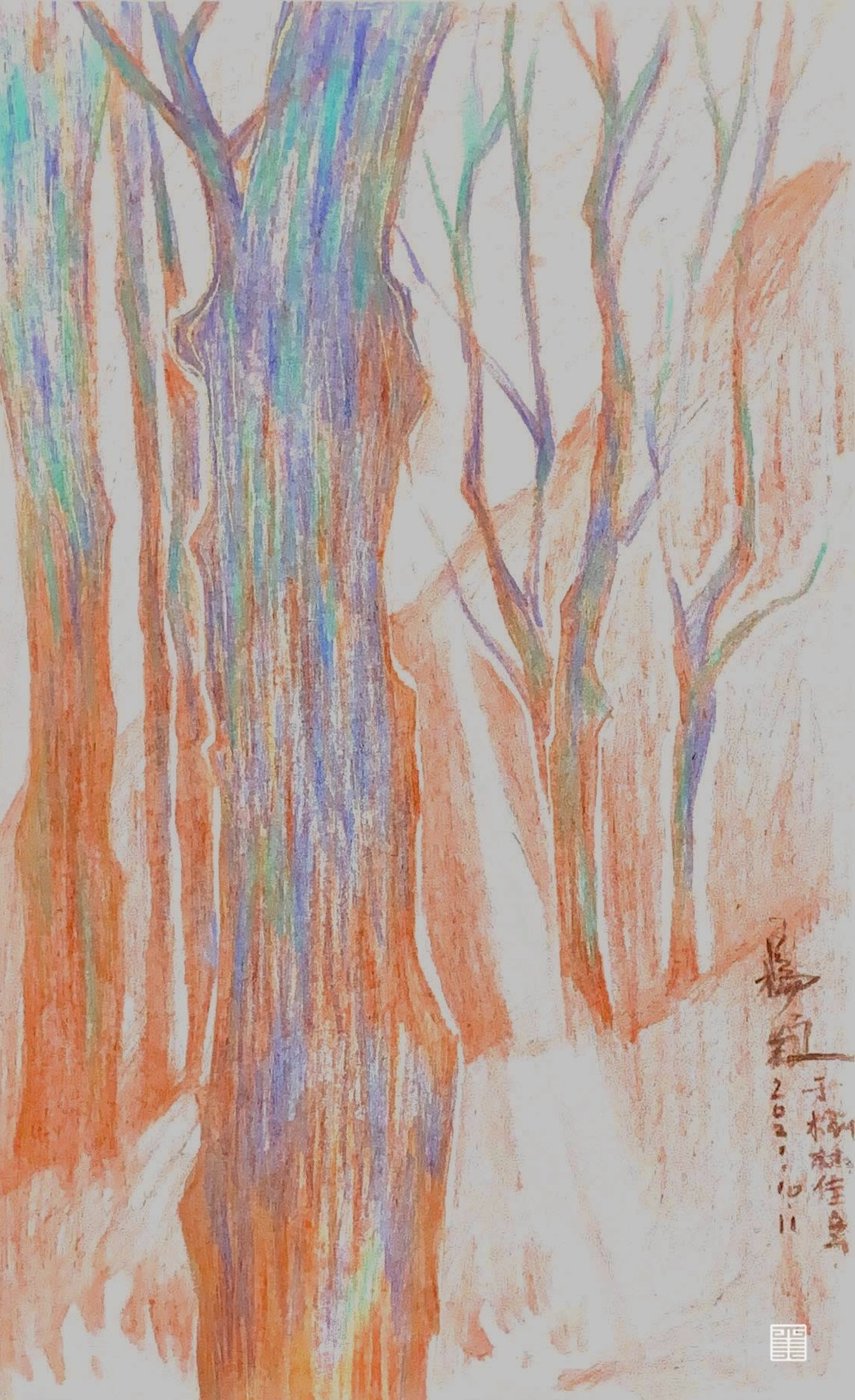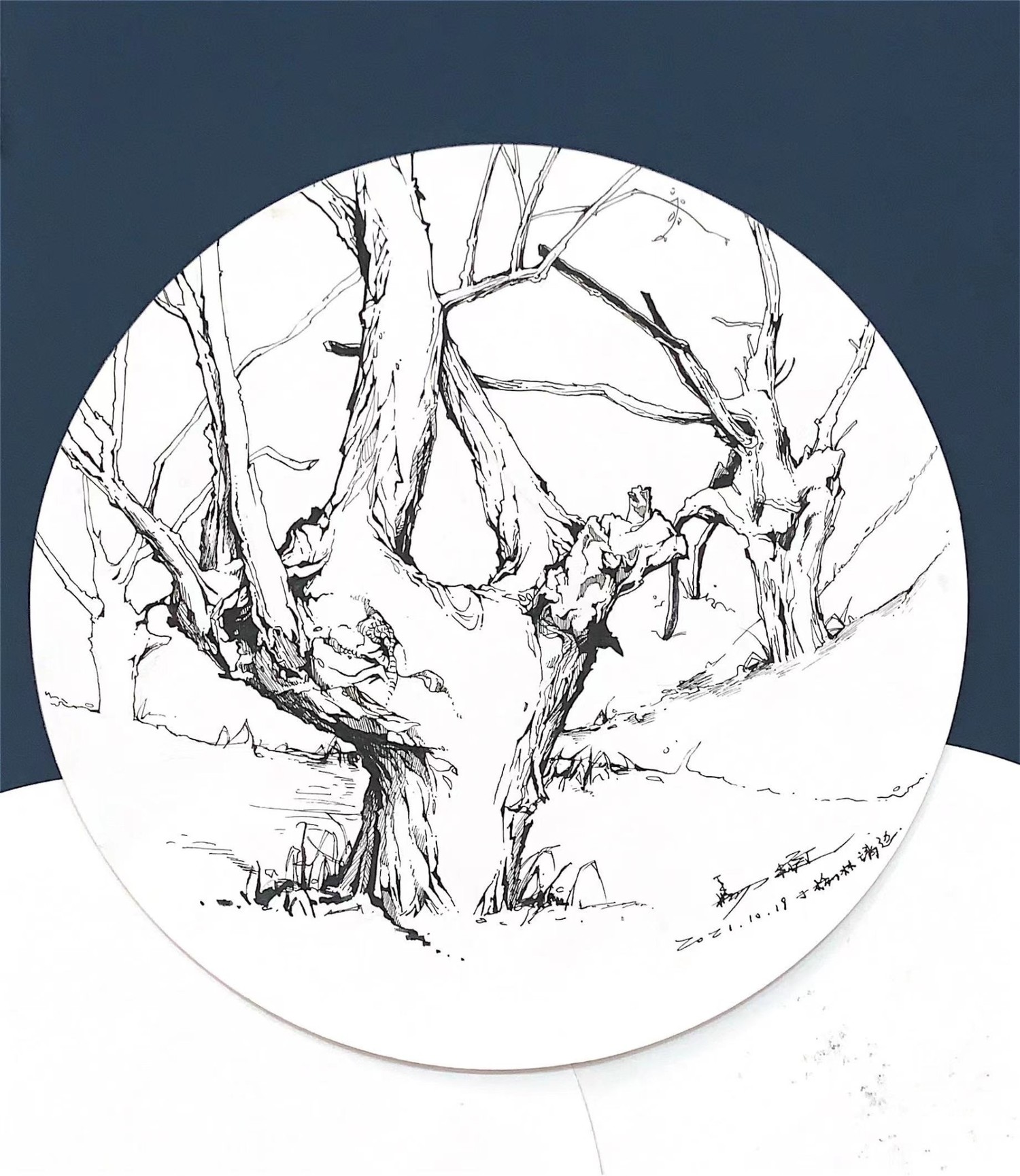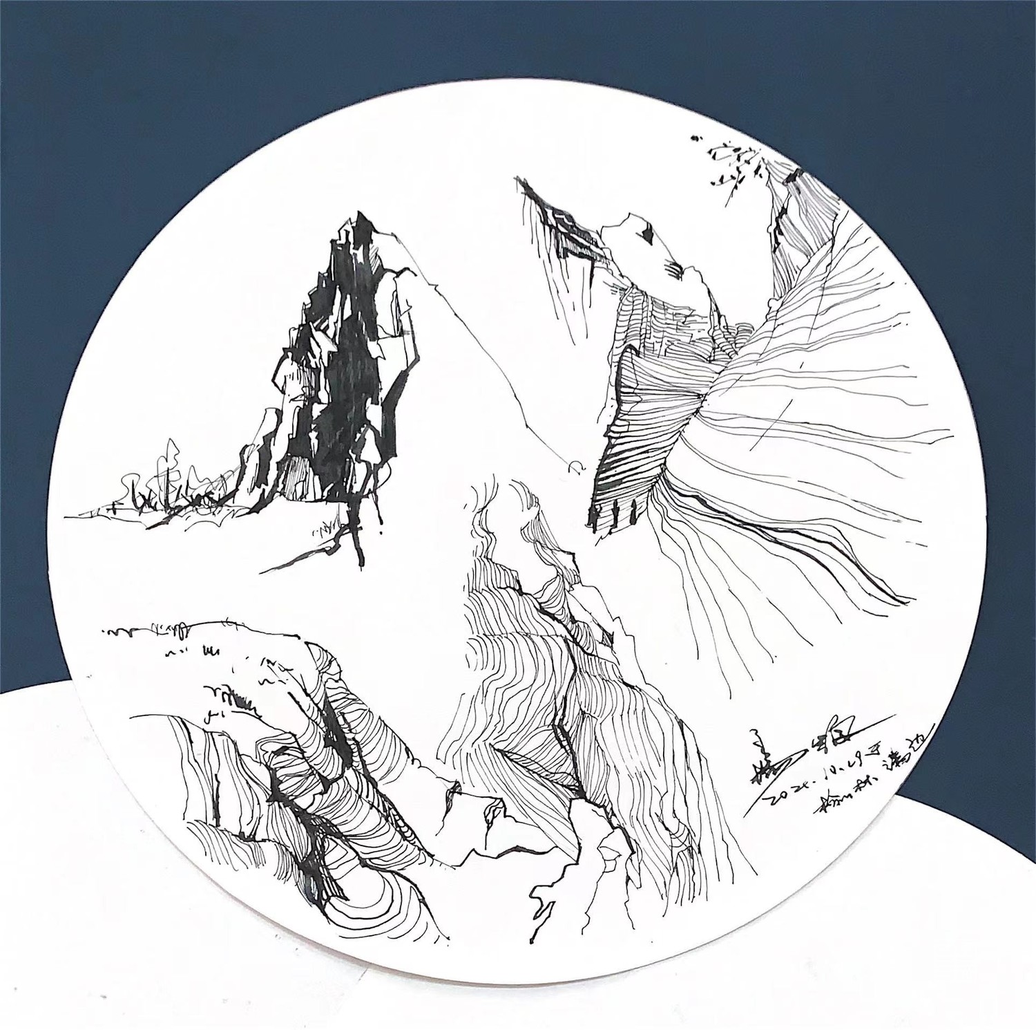 作画地点在波浪谷,其中书的那张是谷中奇特的老树树干,这样形态的老树并不常见,我着重勾画了树的形态和纹理。山的一张是几座山的组合,丹霞地貌的山有几种奇妙的纹理和形状。