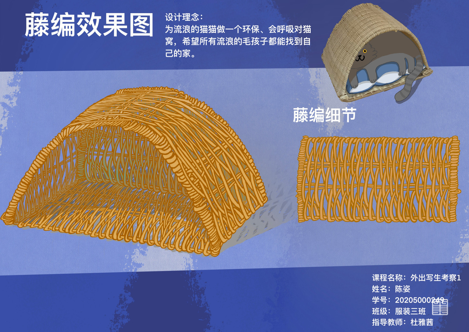 这是我本科四年第一次下乡写生!超级开心学会了藤编,给家里的主子编了个夏日限定的猫窝!