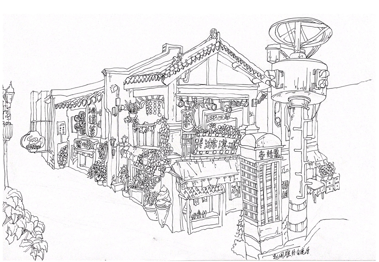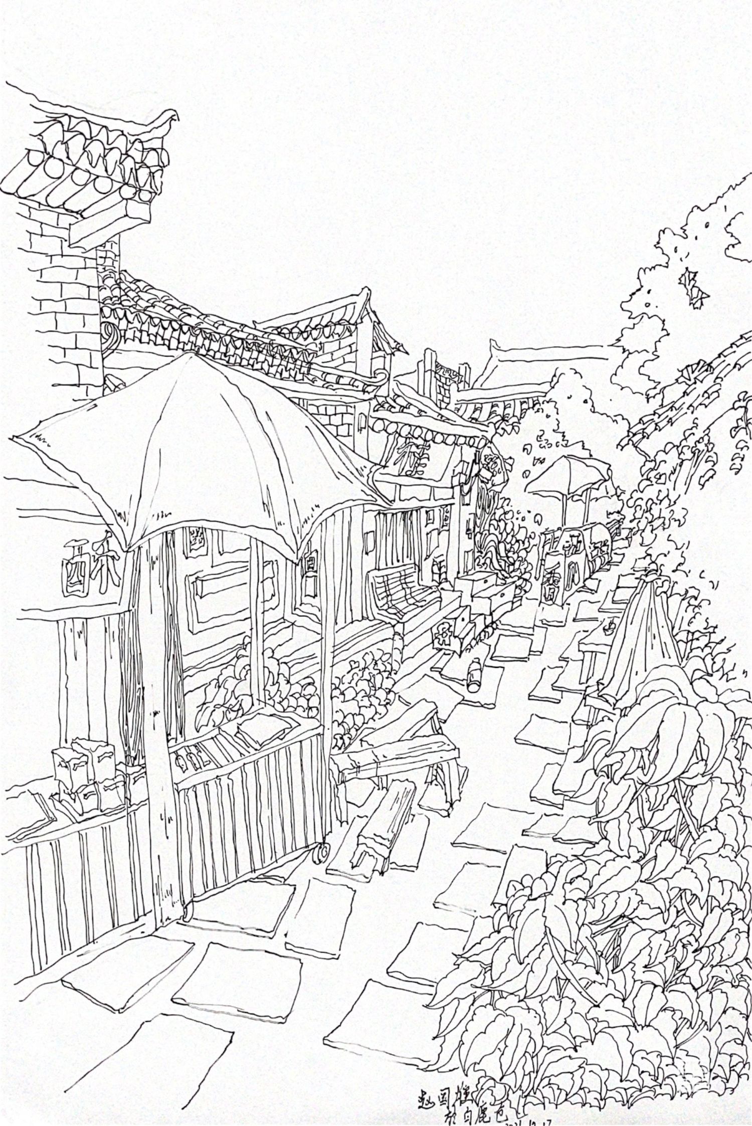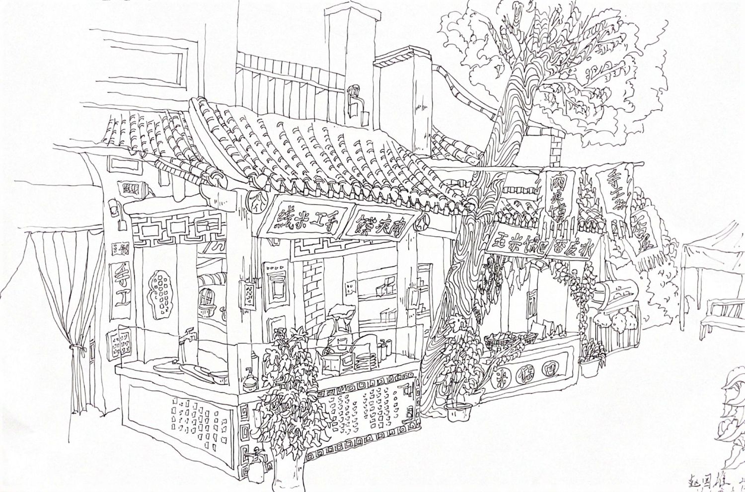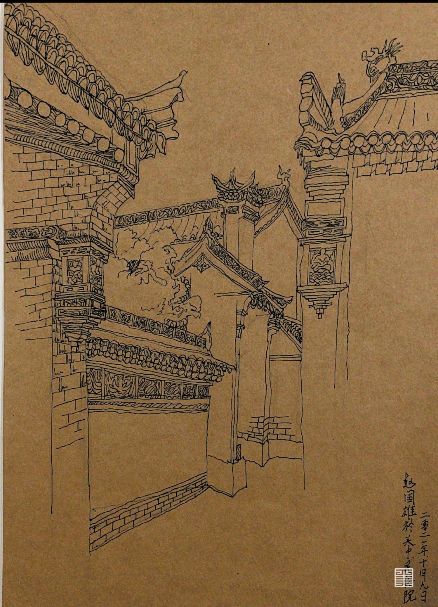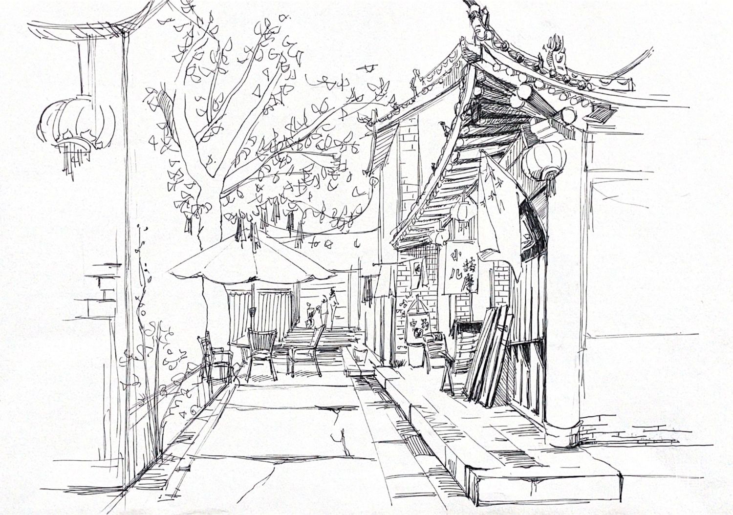 这次写生分别去了两个地方,关中民俗博物院和白鹿仓。前者为明清时期古建筑群,里面大大小小二十多座院落均是从陕南,关中各地迁移来。它的建筑上的每一片瓦,每一块砖都是历史的见证者,文化的传播者。而且它建筑本身所具有的美感及技术至今都令人赞叹不已,榫牟建构,斗拱建构,飞檐,浮雕,看门石兽无一不令人称赞,所以我主要是记录了它的屋檐建构,斗拱和浮雕图案。后者白鹿仓位于著名的白鹿原,因为旅游的需要,所以有各种各样的风格建筑。有民国时期的旧上海,有江南水乡的白墙黑瓦,有陕南特色的小四合院还有数不胜数的美食街。所以我主要表达的是有深厚生活气息的场景与人居环境。