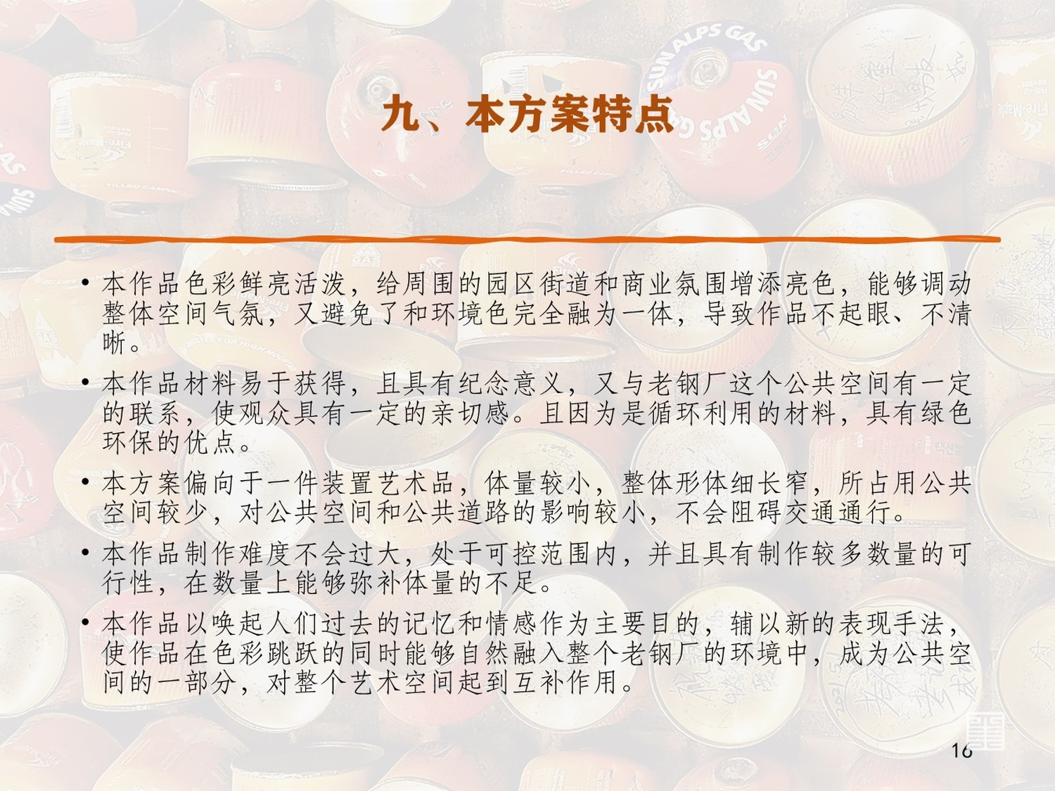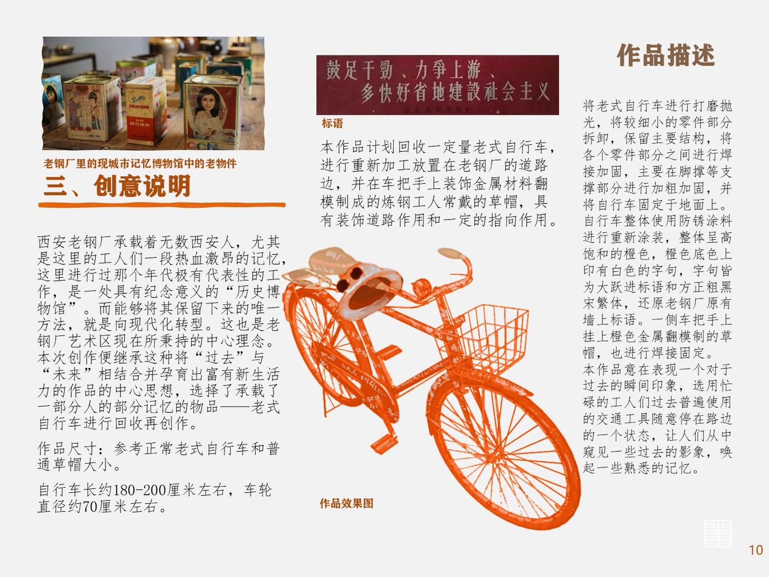本作品是基于西安市老钢厂艺术区的实地考察所设计的公共艺术设计方案,以ppt的形式进行演示。