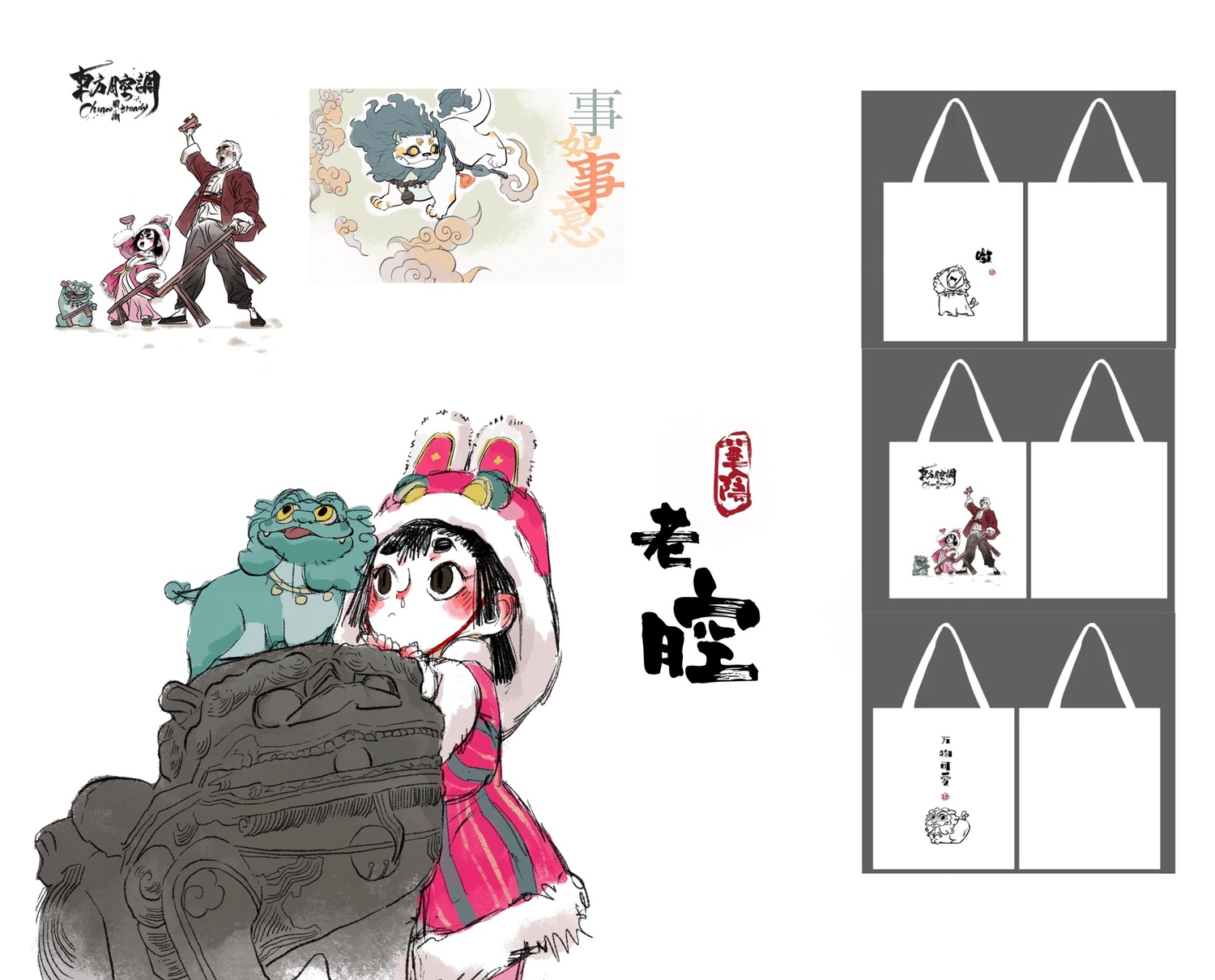我的创意作业借此灵感,以年轻群众喜爱的卡通动漫作为形式,制作帆布袋、卫衣、明信片等文创产品,希望尽自己一份力传播家乡文化,感受关中民俗文化的魅力。