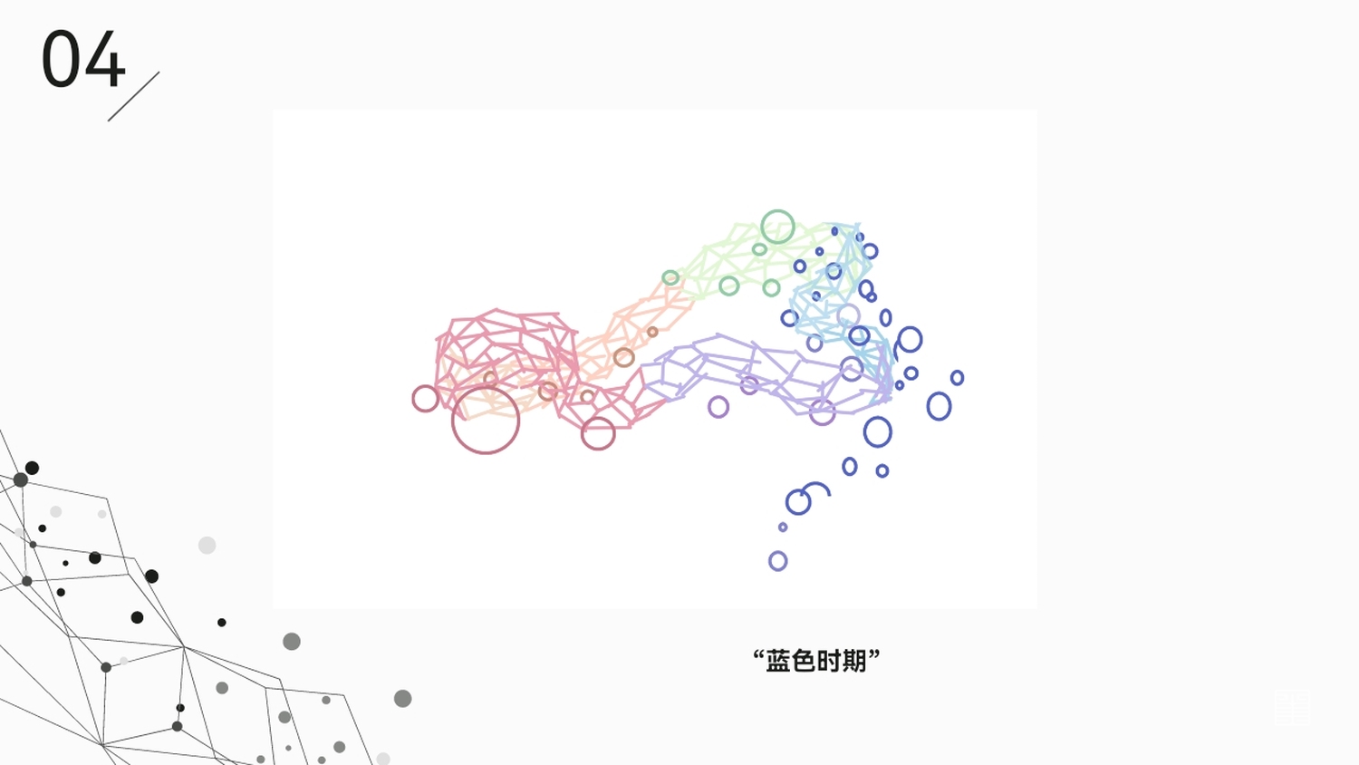 在形态上,点与点的相连,周围萦绕的一个个球,采用的是星座和行星的意向。