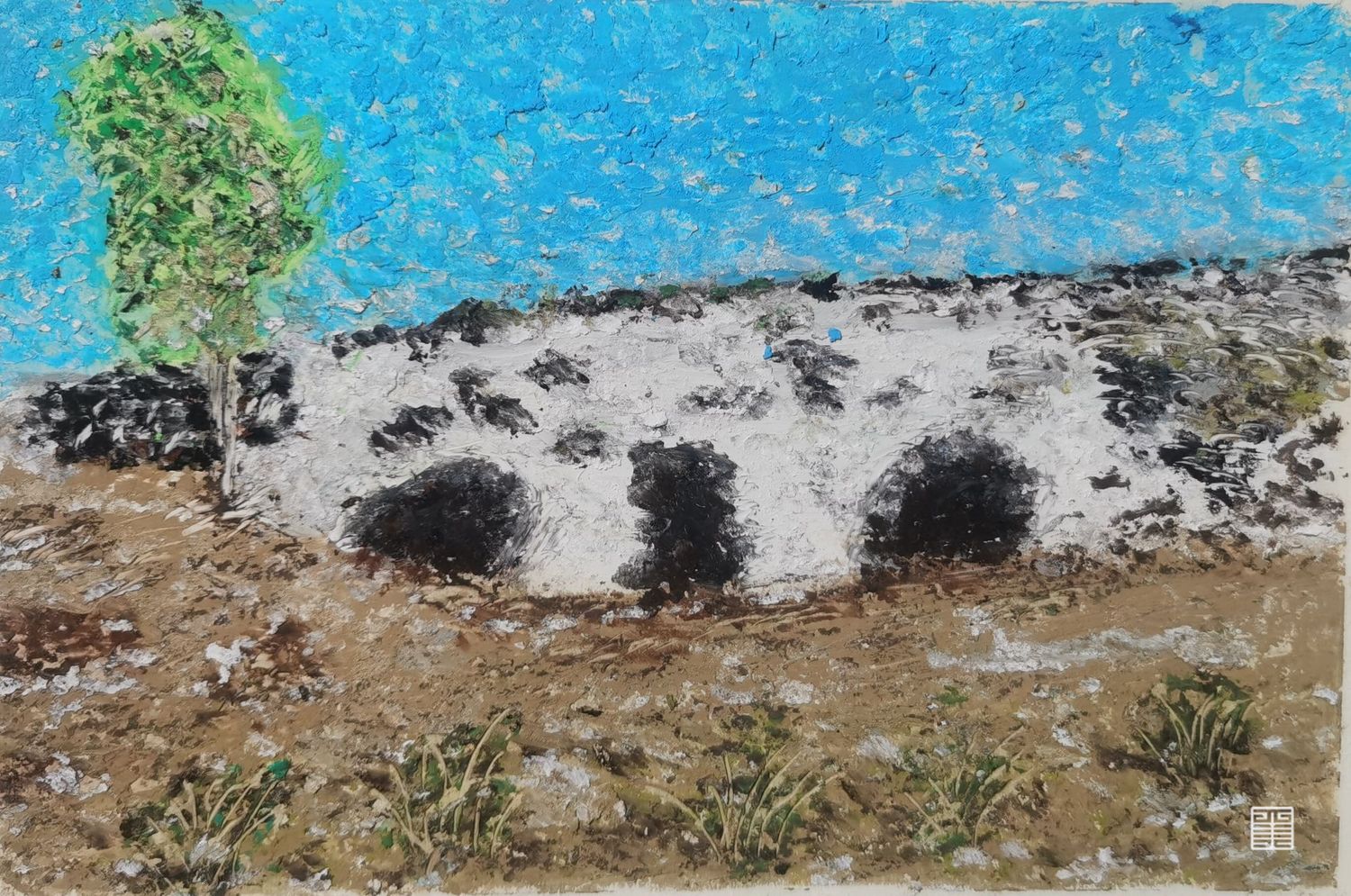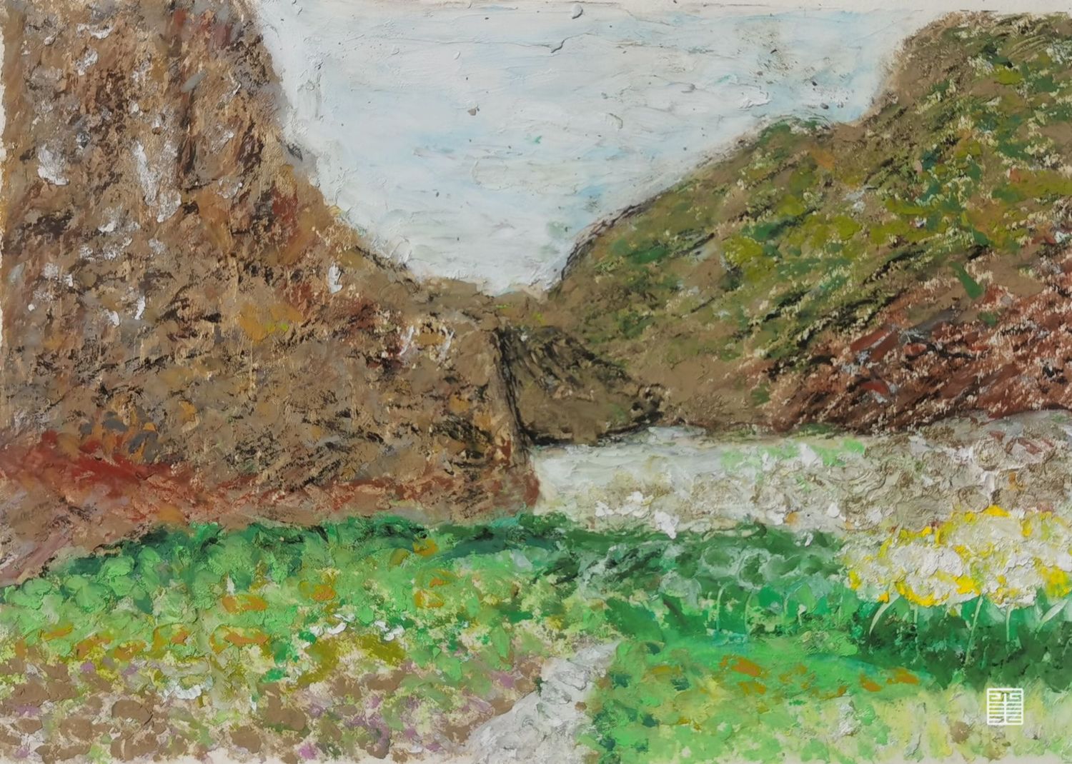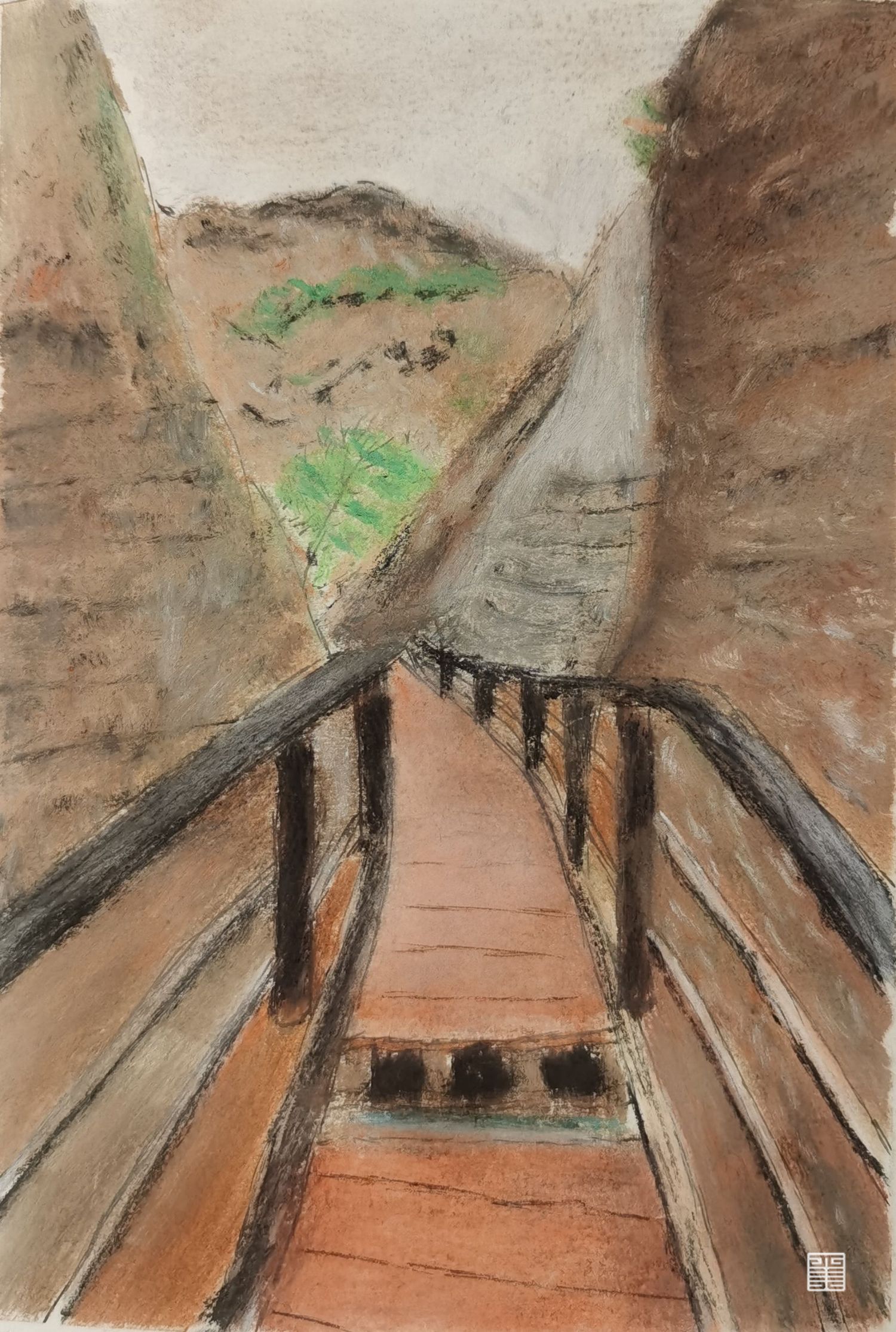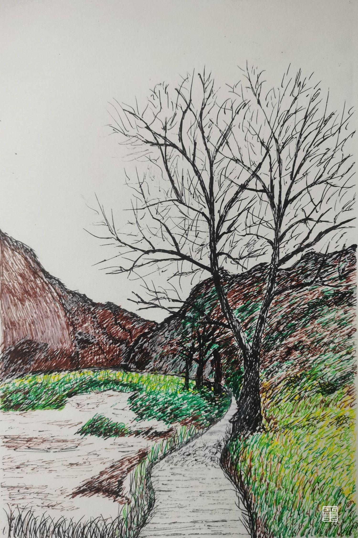 作品都是外出写生的实景,现场创作,材料有油画棒·中性笔和色粉.
