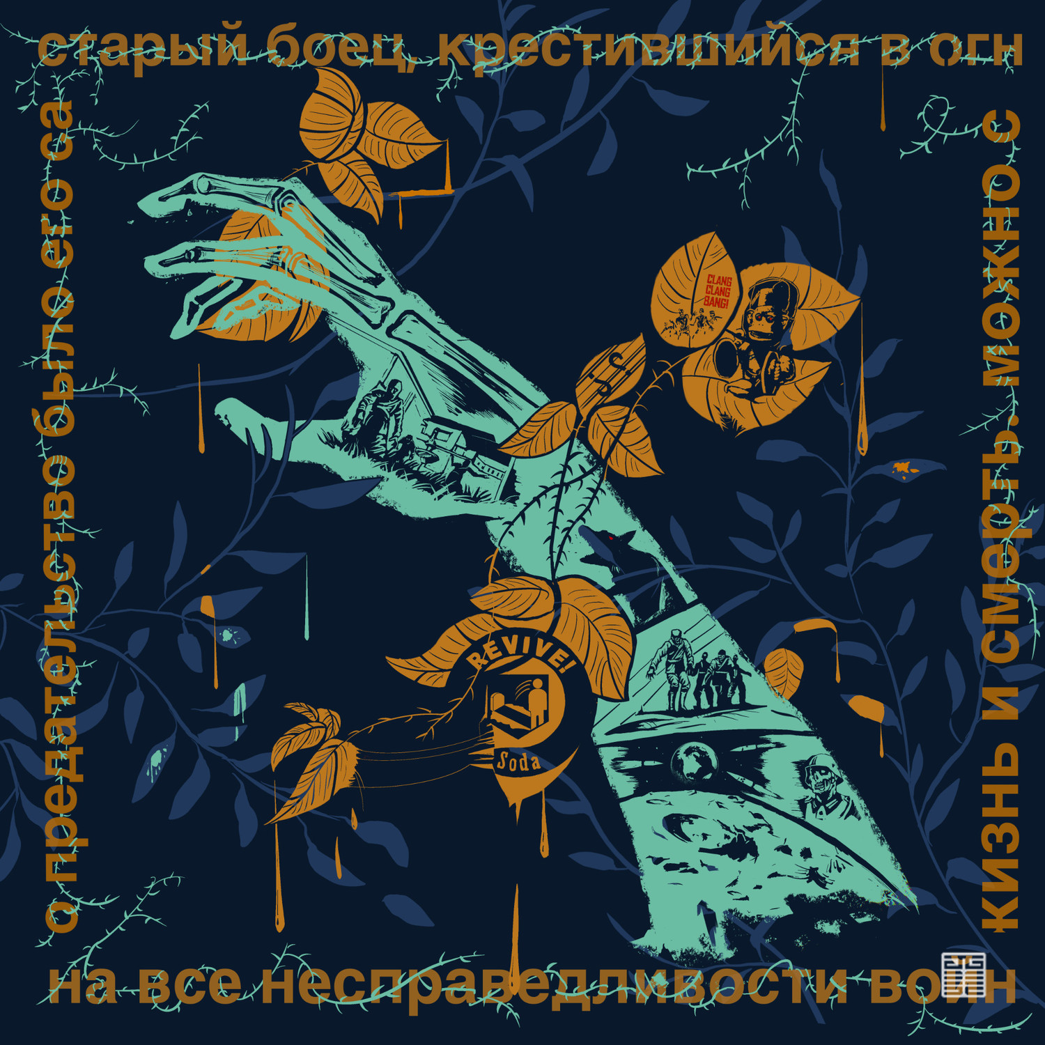 采风途中在寺院拍下的一处风景,绿叶相互交织在一起。本打算用空心砖拓片传统纹样来修饰等来修饰绿叶,填满整张丝巾。本人是游戏迷,所以融入了很多电子游戏的元素。月球,火箭,僵尸。和绿叶虽毫无关联但是却意外合适。原本平静安详的气氛转变的十分诡异且充满趣味。索性在颜色上也有所突破,深蓝色配上橘色,在视觉上富有冲击,水蓝色稍稍平衡了画面。颜色上虽然只有三种,但多样的图案让画面不显单调。 强烈对比的配色,诡异有趣的图案,这是我想要的。