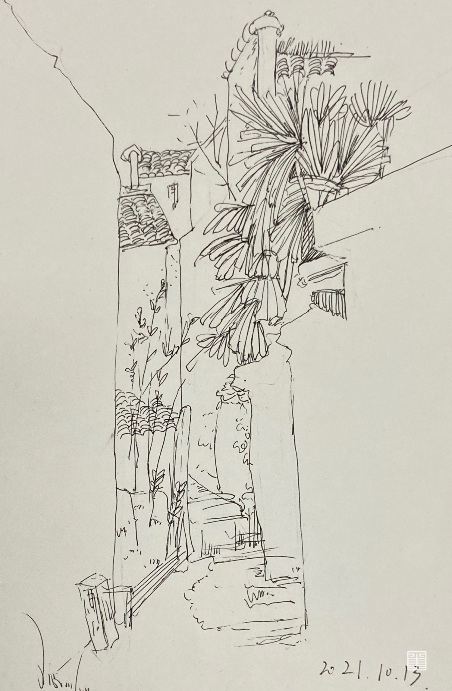 高高的墙院 冒出的绿植 隐隐的小路想让人走进去