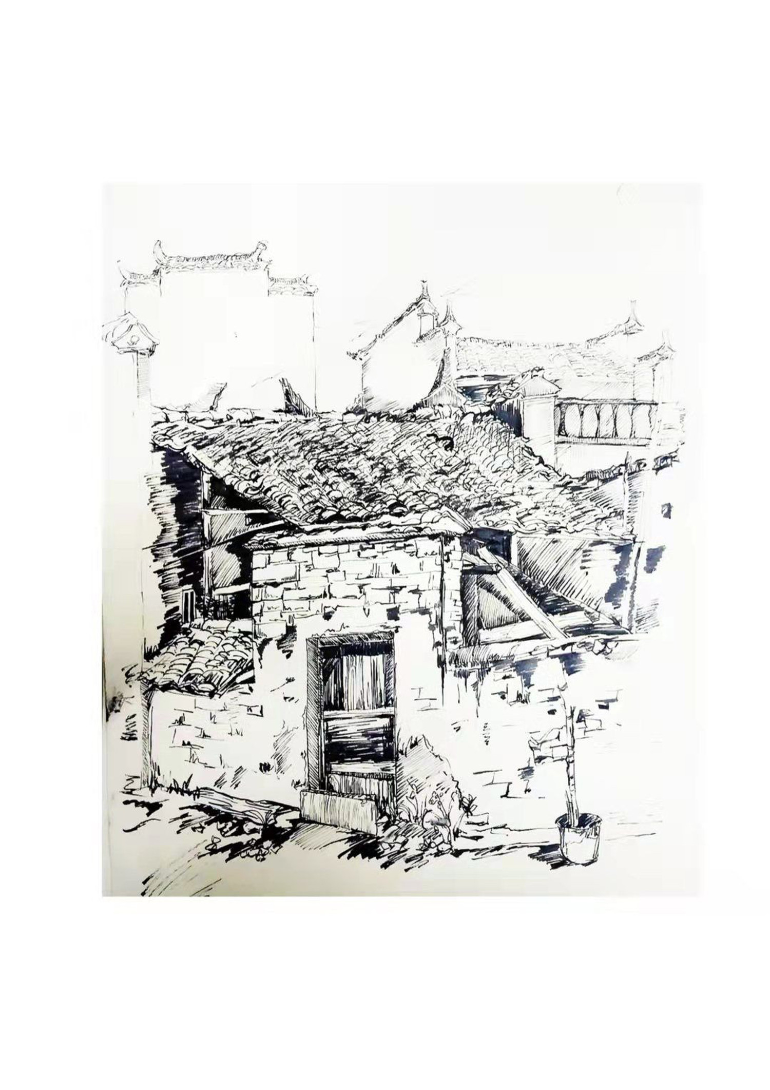 在写生中,我尝试了不同的用笔和构图,这三张作品很有代表性,有细致用笔描写细节的,有干脆利落大面积涂抹的,也有用笔松散的,对我的写生技法有很大帮助,此次写生受益良多