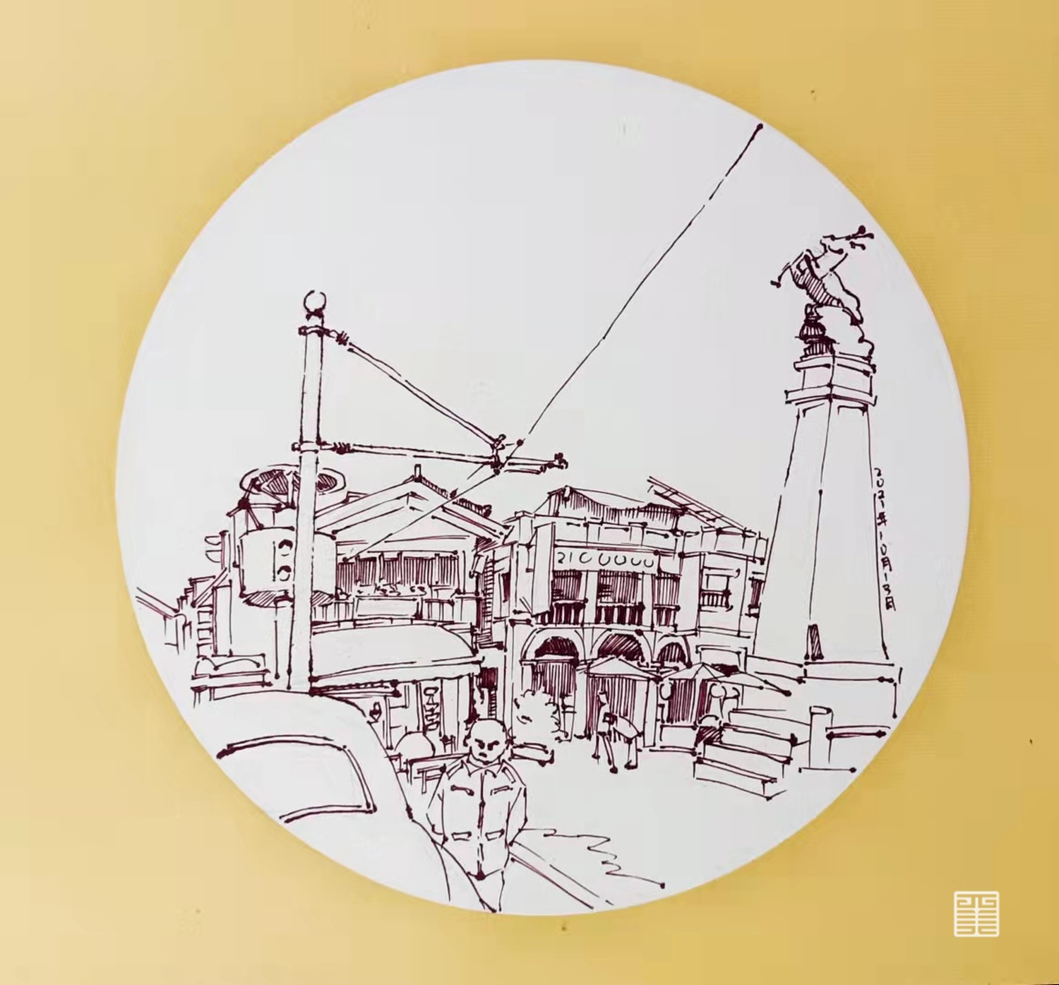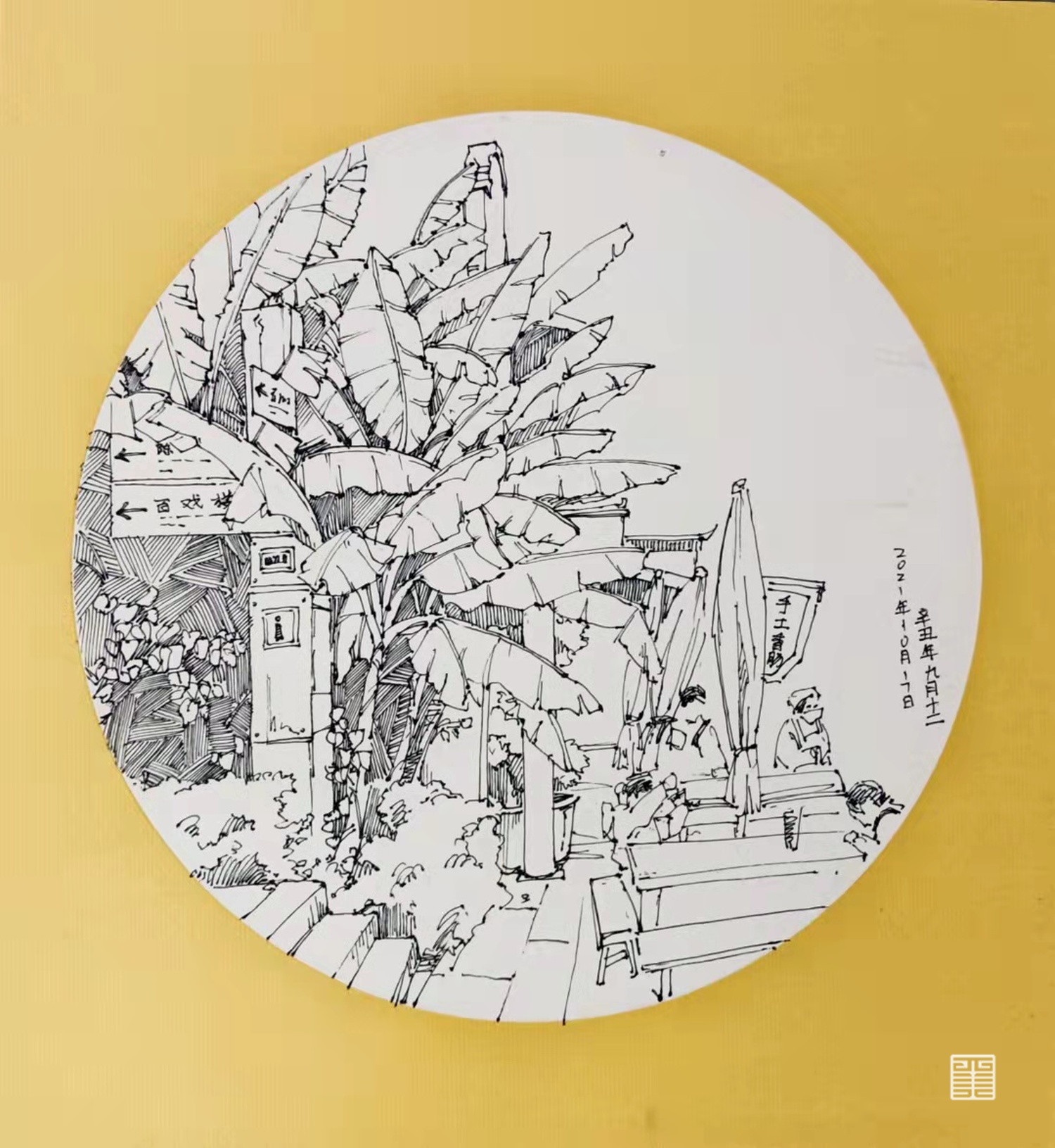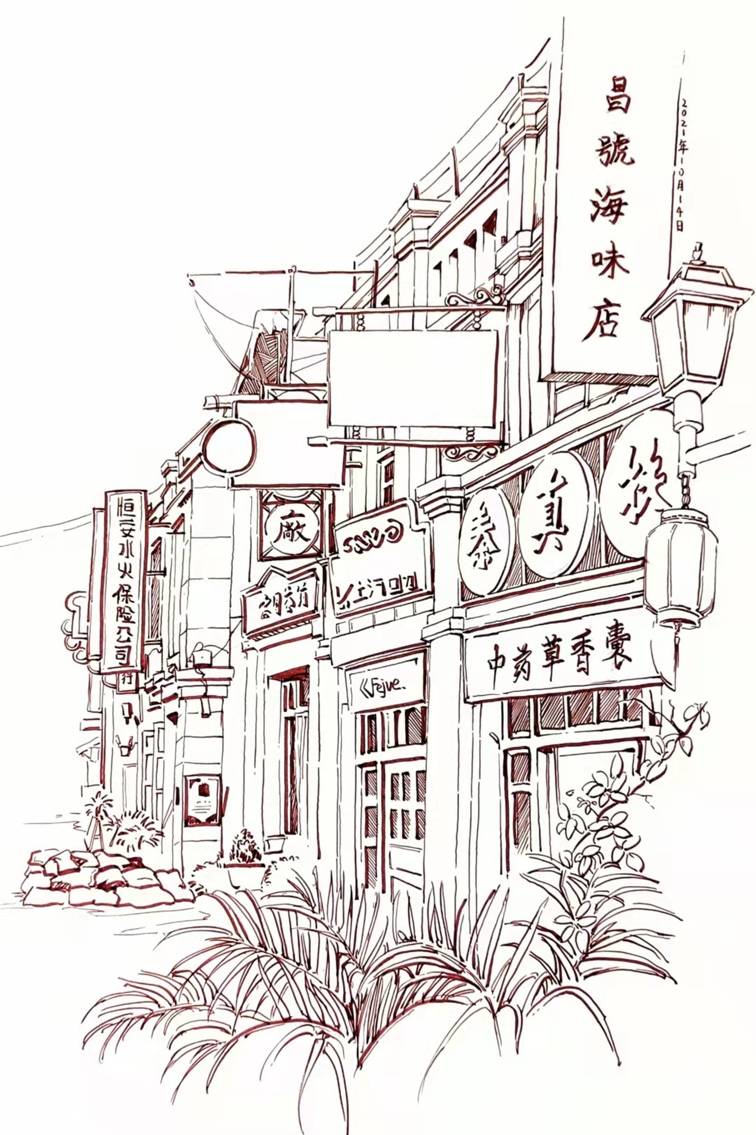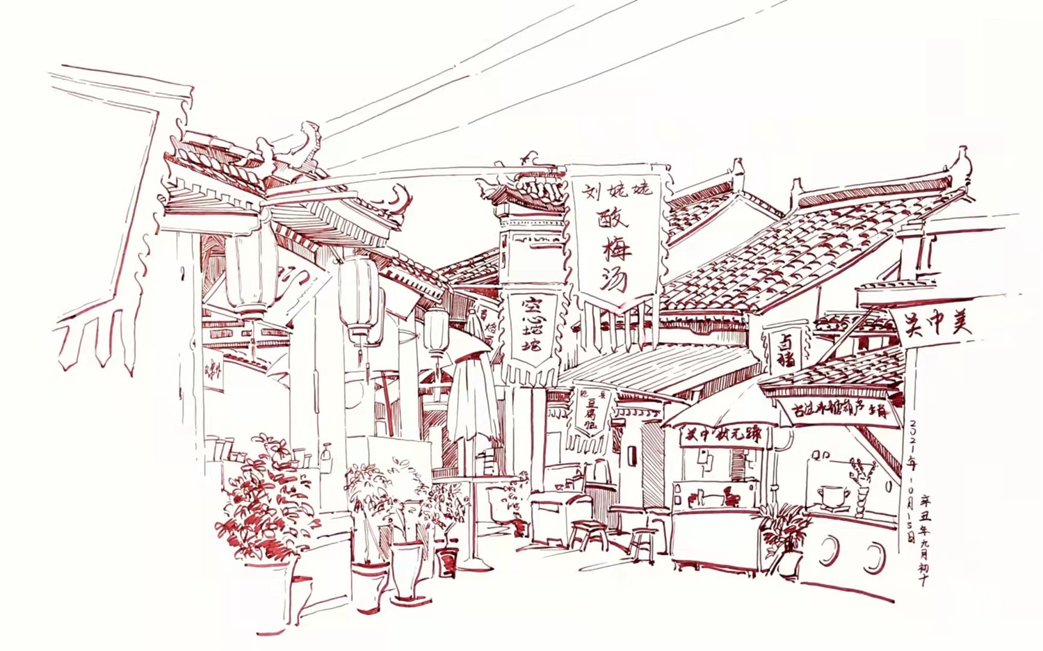这系列作品中,有两张是在白鹿仓民国街道创作,身处当地时浓厚的民国氛围还是对我的创作有极大的帮助的。另外两张则是在小巷中感受到了各家店铺穿插的层次,于是便创作出了相关作品。