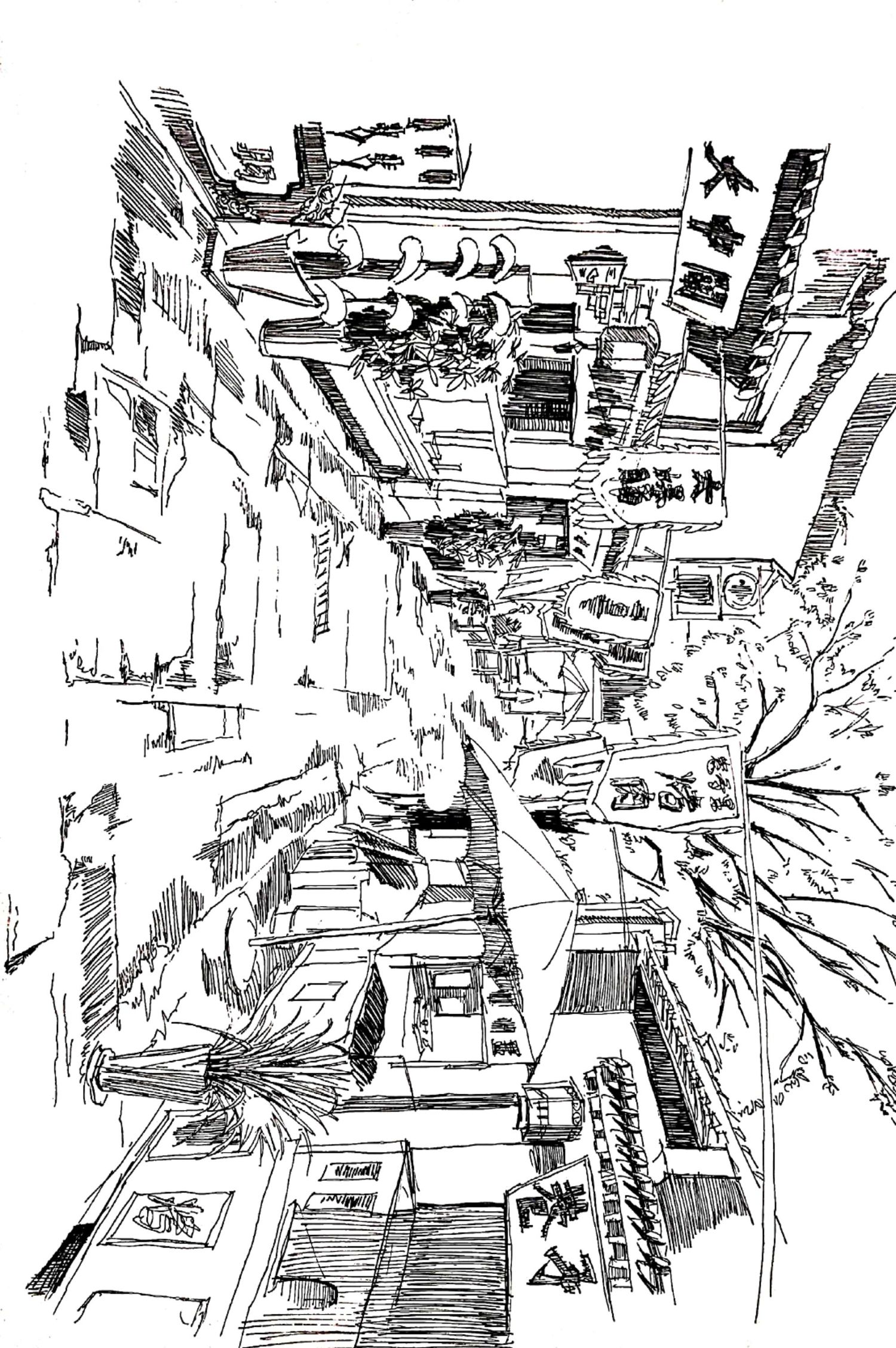 在关中民俗博物院和白鹿仓,安静的坐在建筑旁,通过手绘的方式感受民俗建筑的魅力。