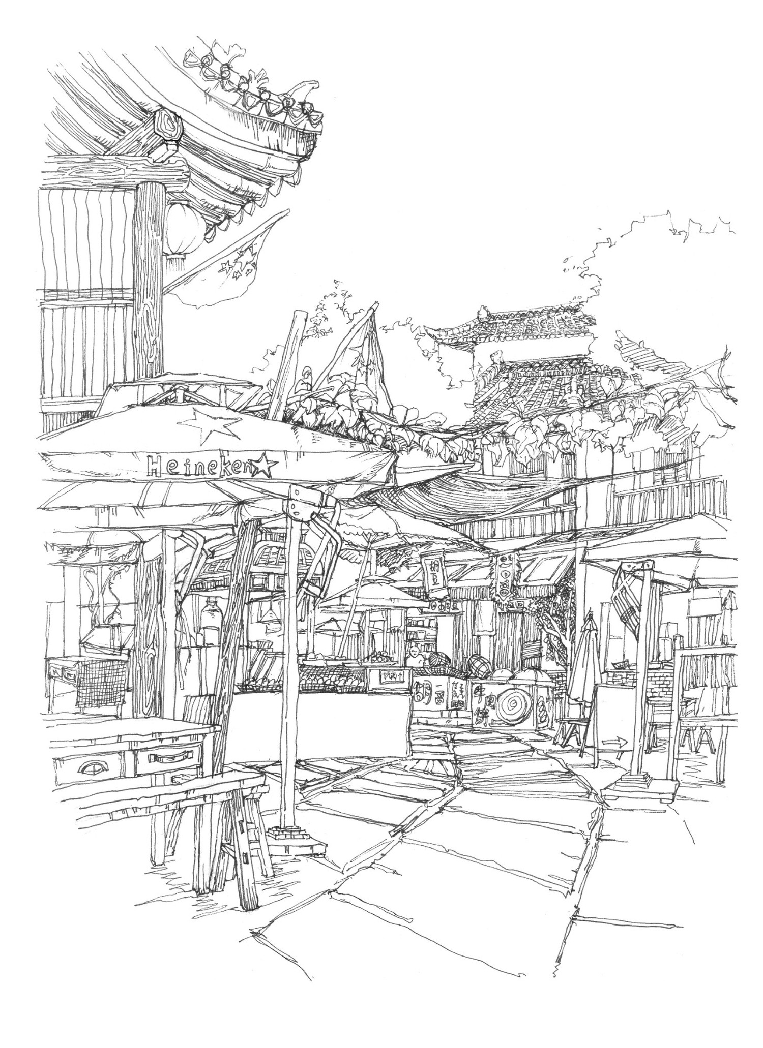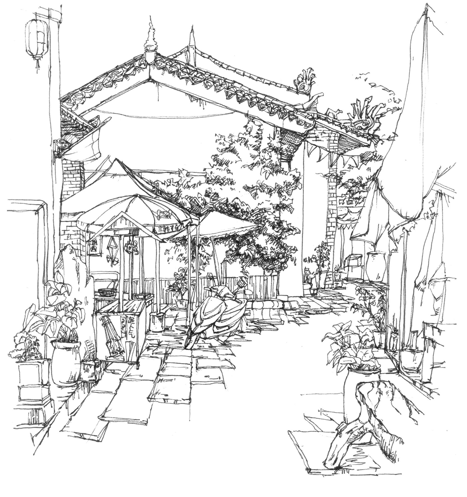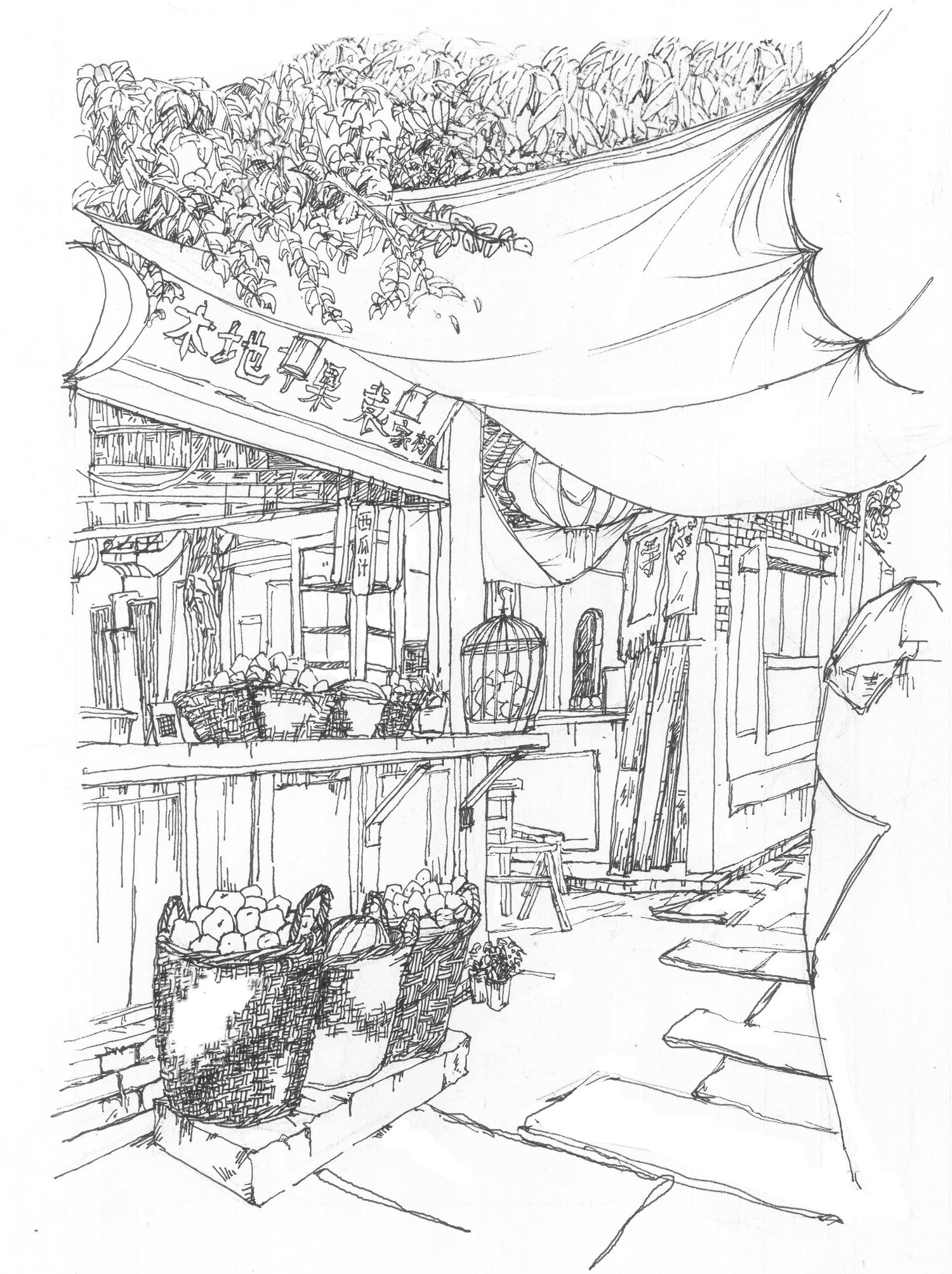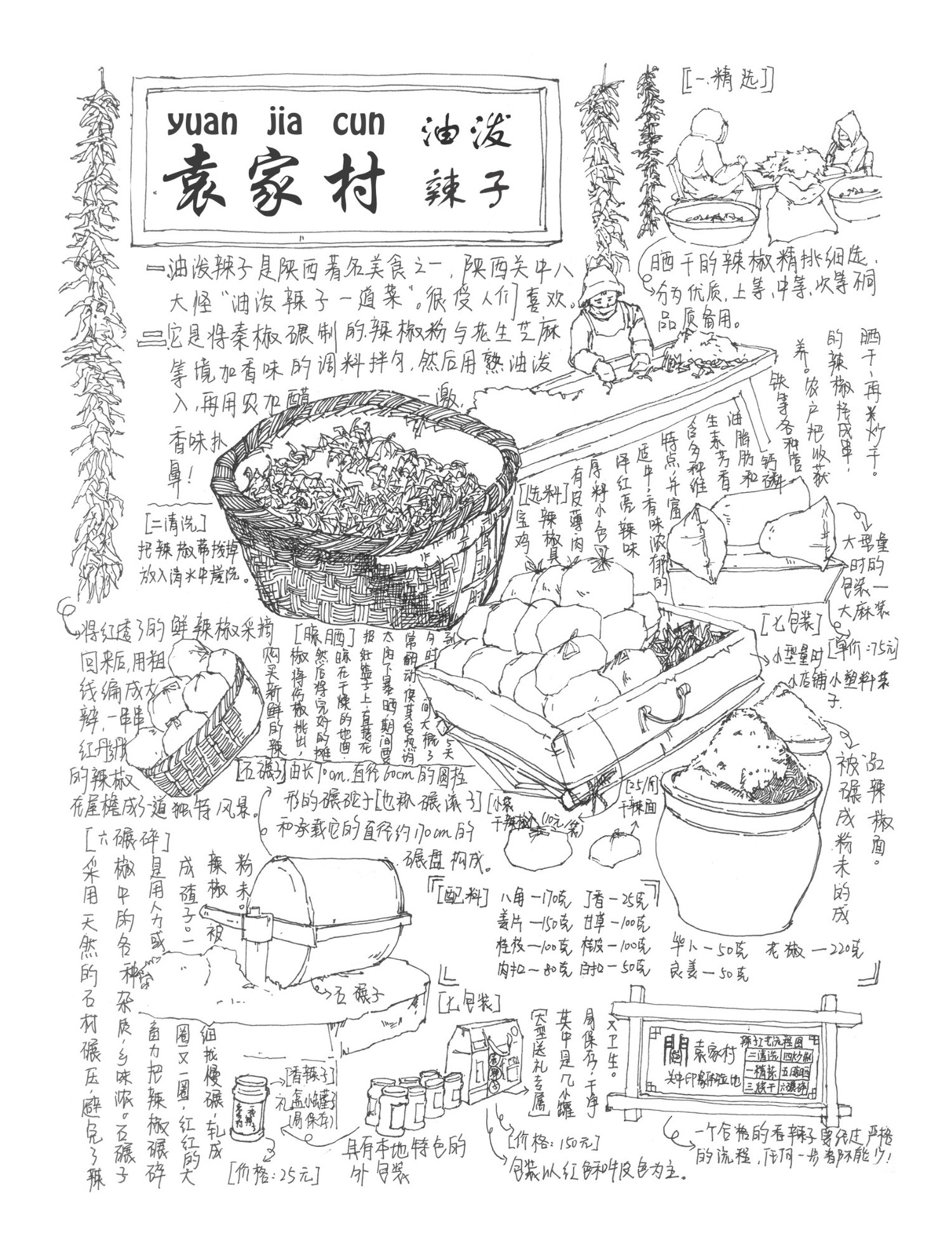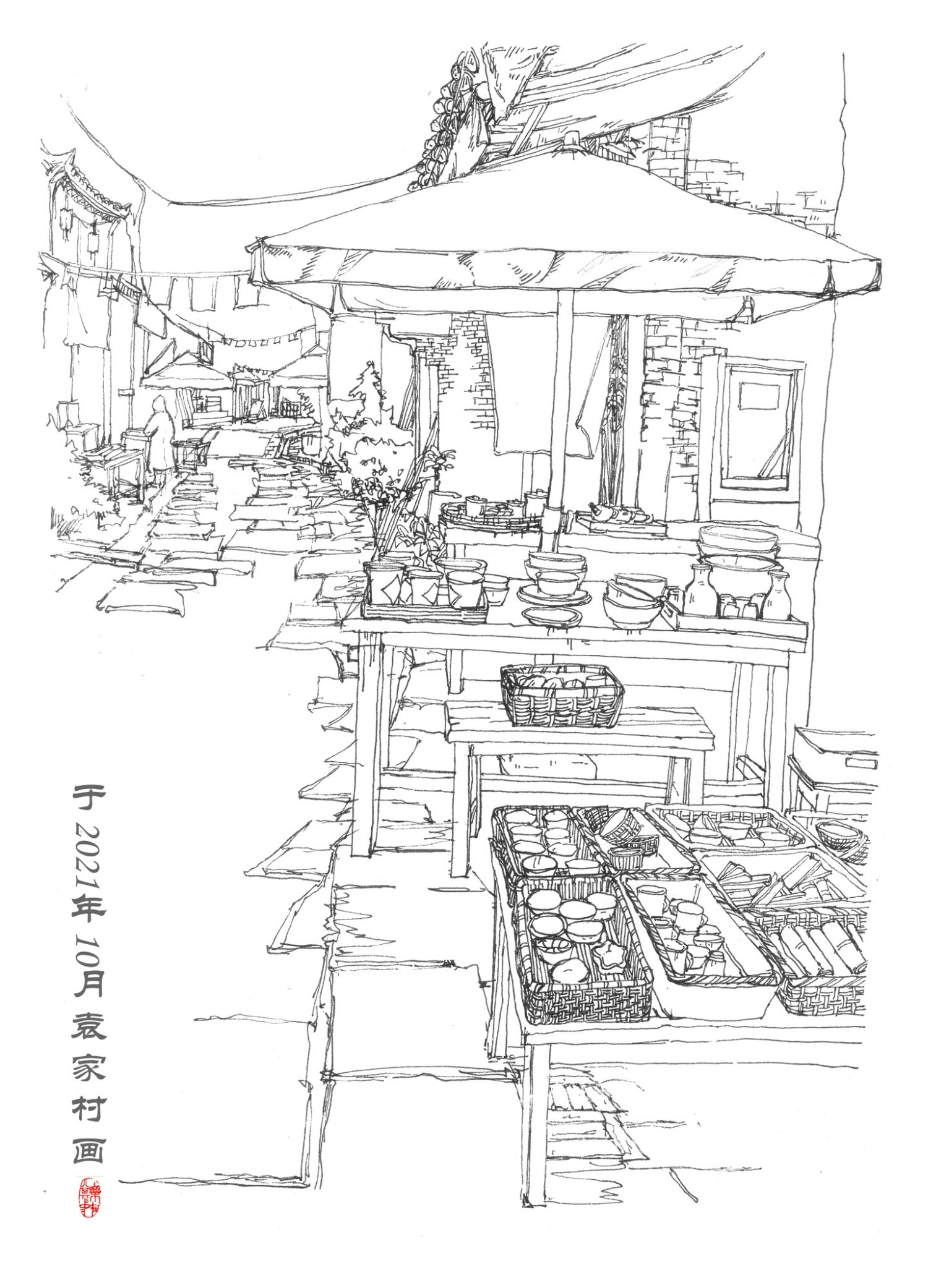 与2021年10月在袁家村写生,作品包括袁家村小吃街等其他街道、袁家村特色小场景以及袁家村特色产品的记录式速写。描绘了袁家村独有的风土人情、特色小吃和独特的小景,在冷风中作画别有一般风味!