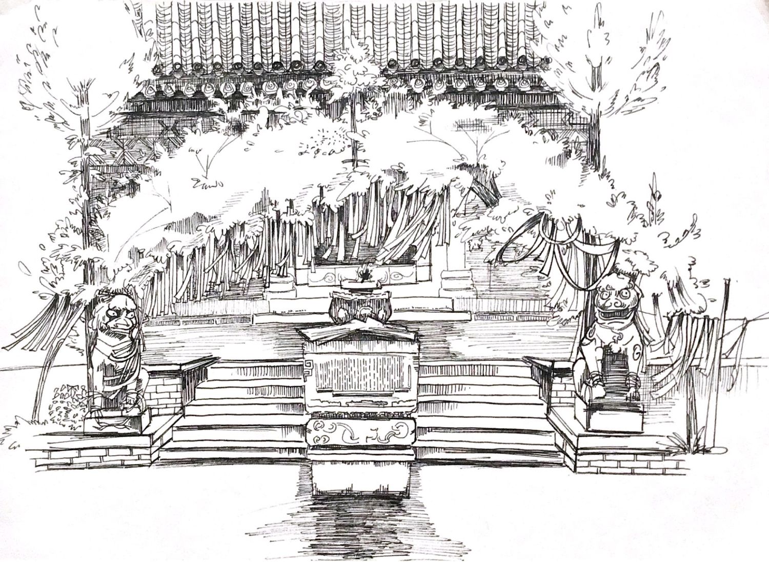 前五天写生地点在关中民俗博物馆,非常宏伟的房梁和脊兽,表达了稷神庙祈福的神圣场景。后五天在白鹿仓,体验了不一样的人间烟火,描绘了清晨商铺在街道的安静祥和。饭很好吃,下回还来。