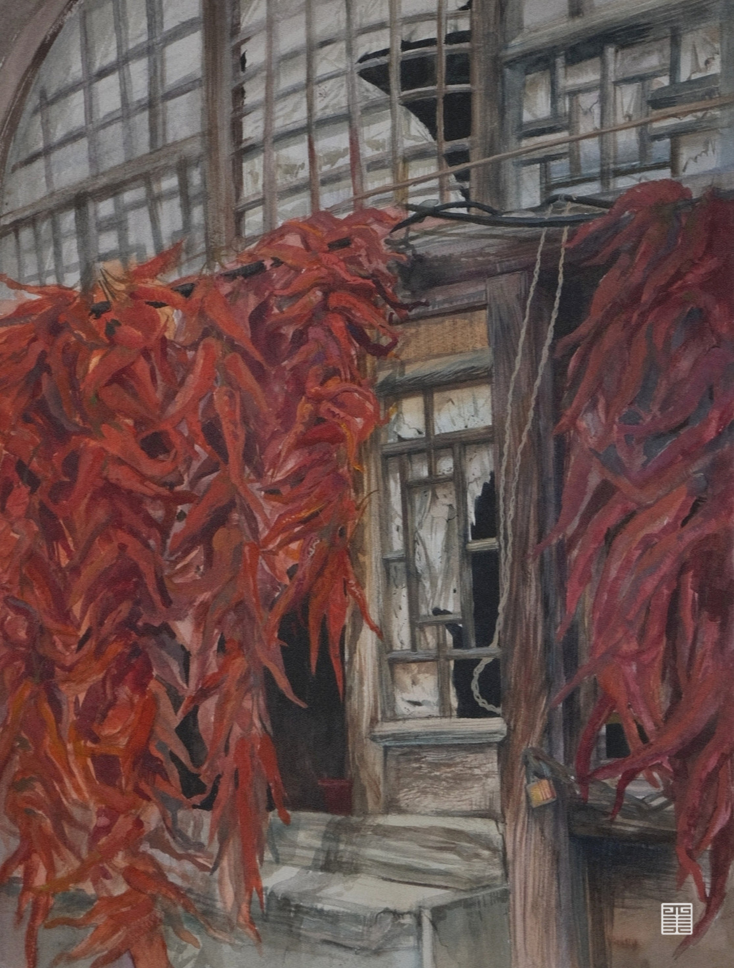 陕北风光不仅仅有延绵的山川,还有晴时鲜艳的对联,“出门见喜”的美好祝愿以及窗外悬挂的辣子,墙壁上阳光的痕迹和偶尔阴郁的雨天,爱陕北。