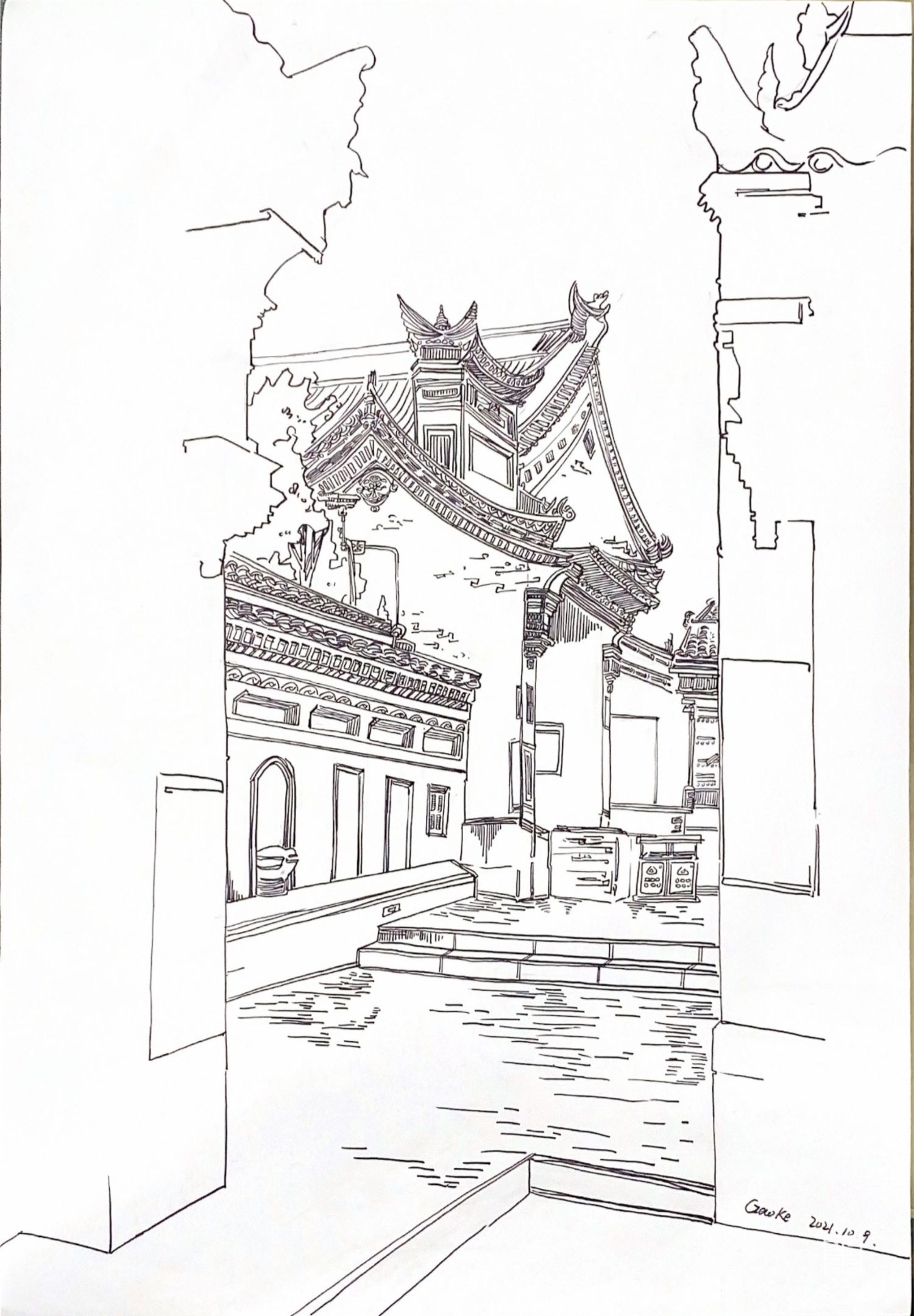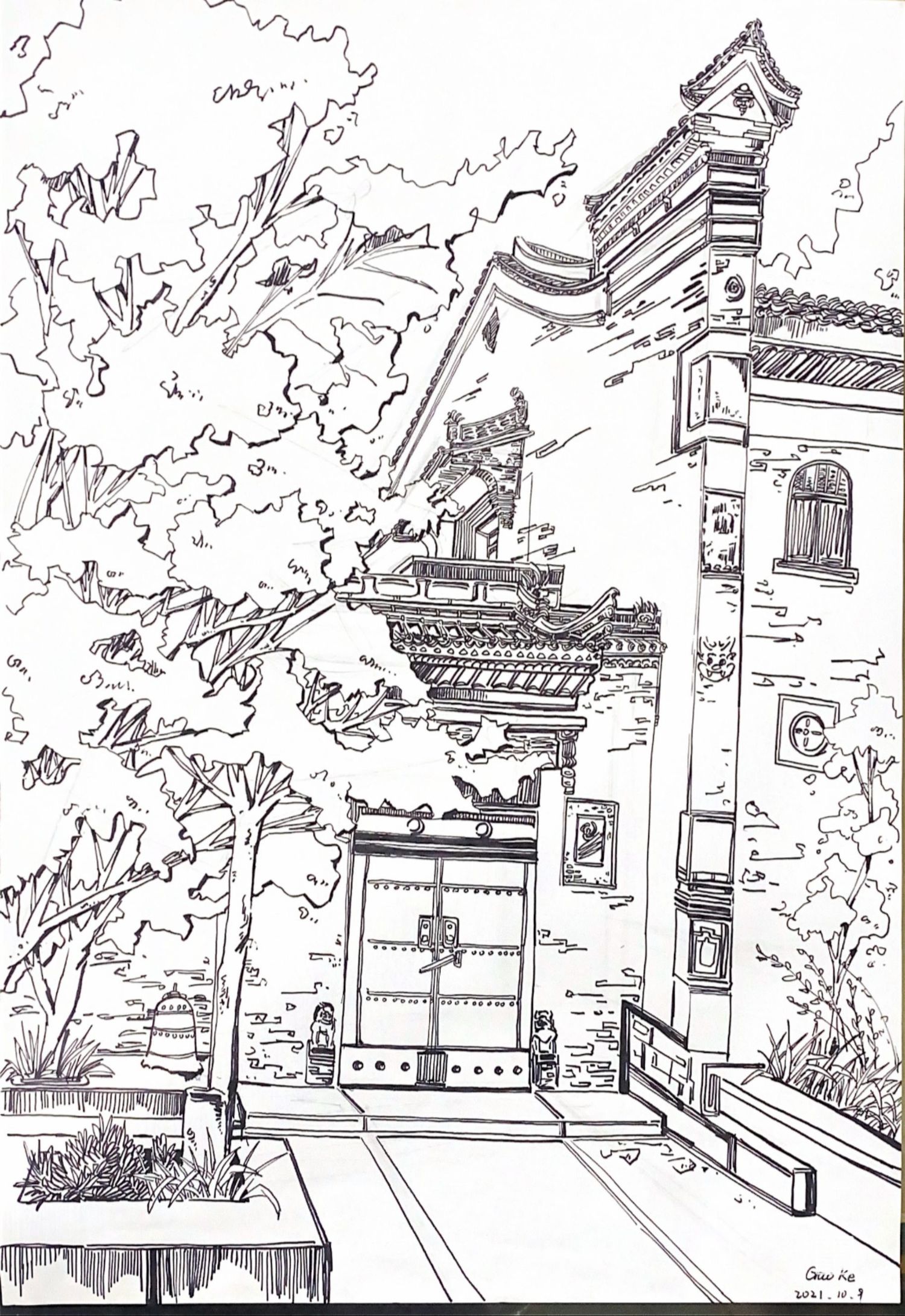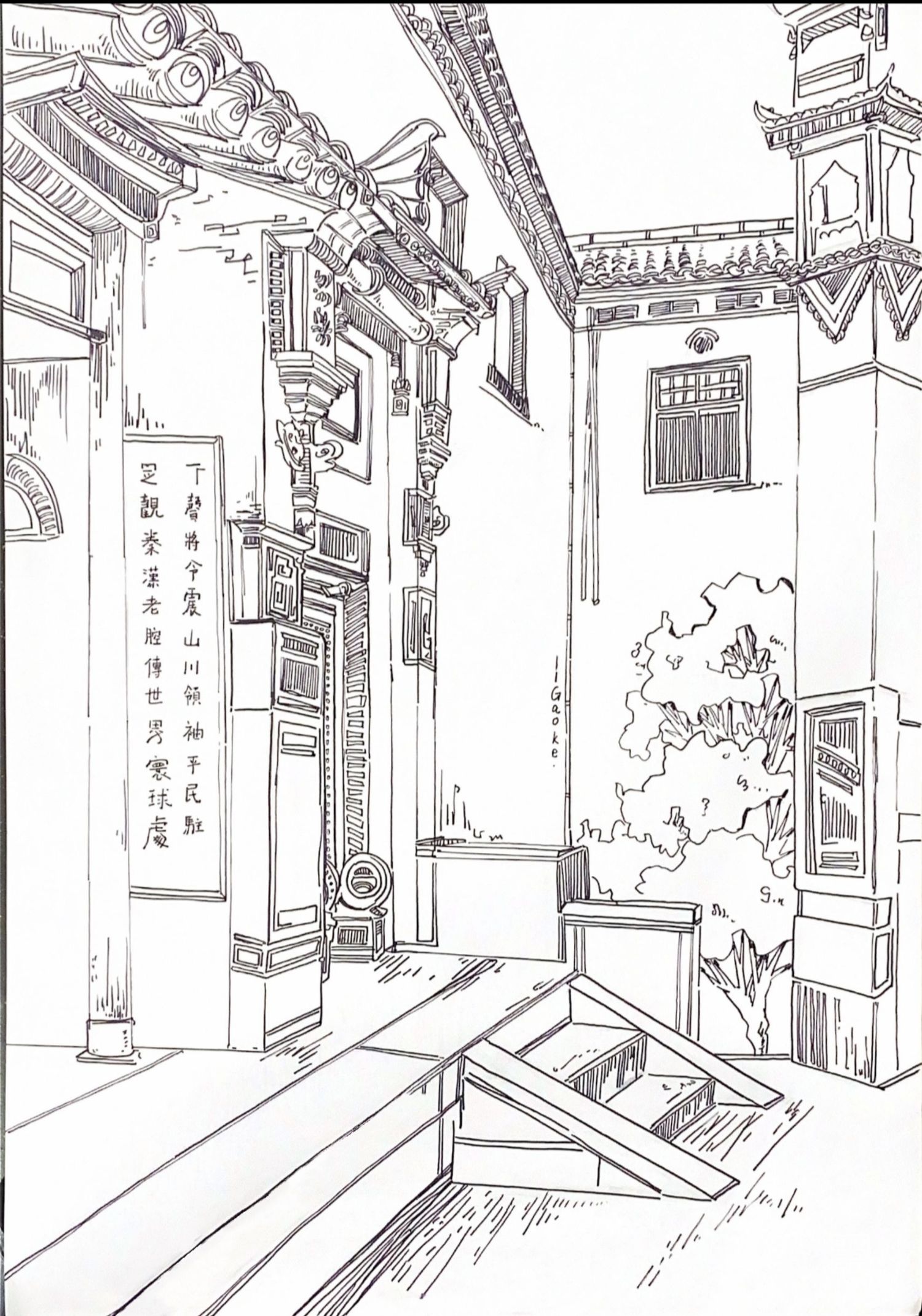 关中民俗艺术博物院,最吸引我的就是它这些别具一格的传统建筑,它总有一张神秘的面纱笼罩着它,在经过观察以及查阅之后了解到它的结构十分有讲究,为此我想将他用绘画的方式保留下来,于是便有了这次创作。