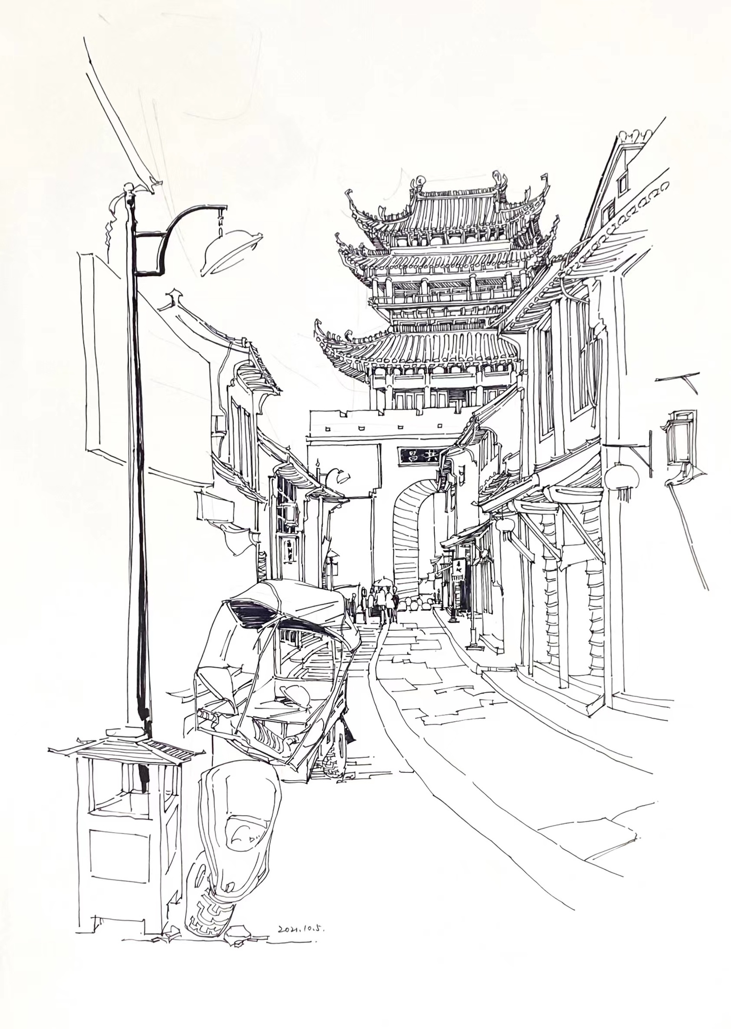 我的作品主要分为两个部分:针管笔建筑速写和铅笔景观速写。我通过针管笔建筑速写对空间有了更深的理解,对针管笔这一材料的运用有了更系统的学习,对今后的专业学习大有帮助;铅笔景观速写的练习创作主要是依托个人兴趣爱好而生的产物,通过自己喜爱的表达方式进行创作,过程非常开心!