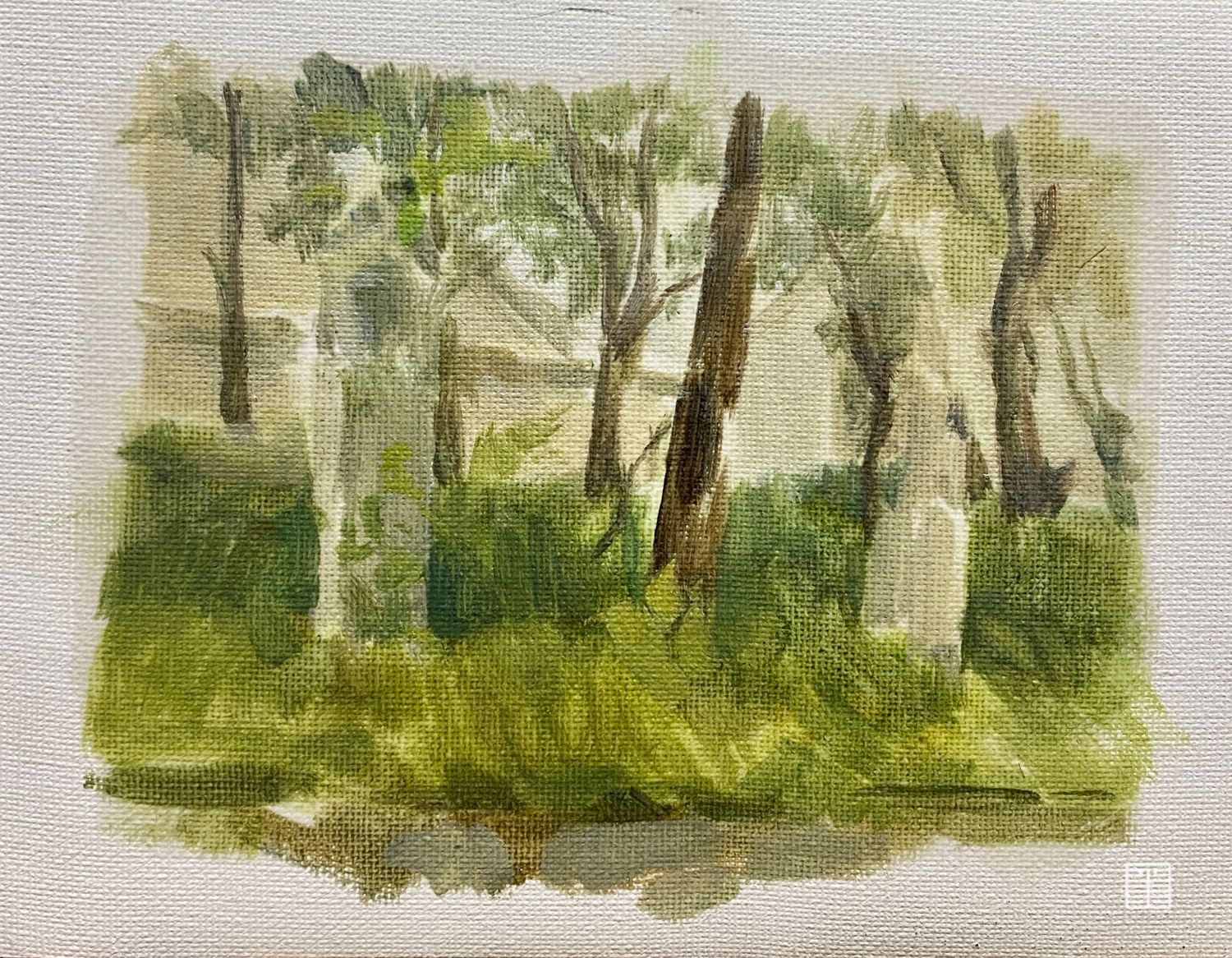 除此之外,在《拴马桩们1》中,我运用马克笔尝试了新的表达方式,更注重形式和整体关系,最终作品是我在此次写生中较为满意的。《树干》是我用油画颜料完成的作业,我对这一材料比较陌生,但创作过程非常开心,虽最终作品不如最初预期,但不失为一次突破。