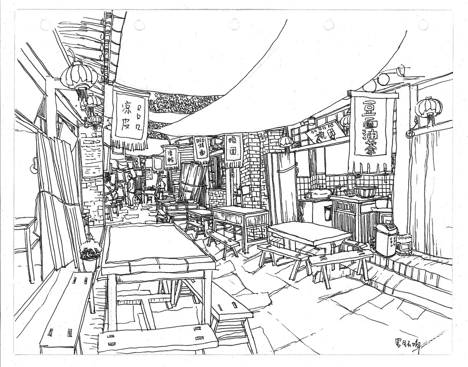 第四幅画的小吃街是我们每天第一个到达的地方,我们每天都在那条街上吃早饭和中饭, 整条街都是美食,这种街道格外的美丽不是吗