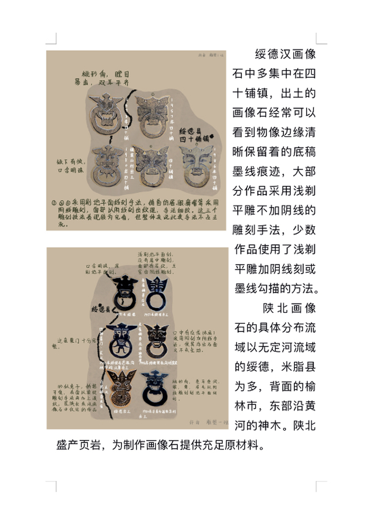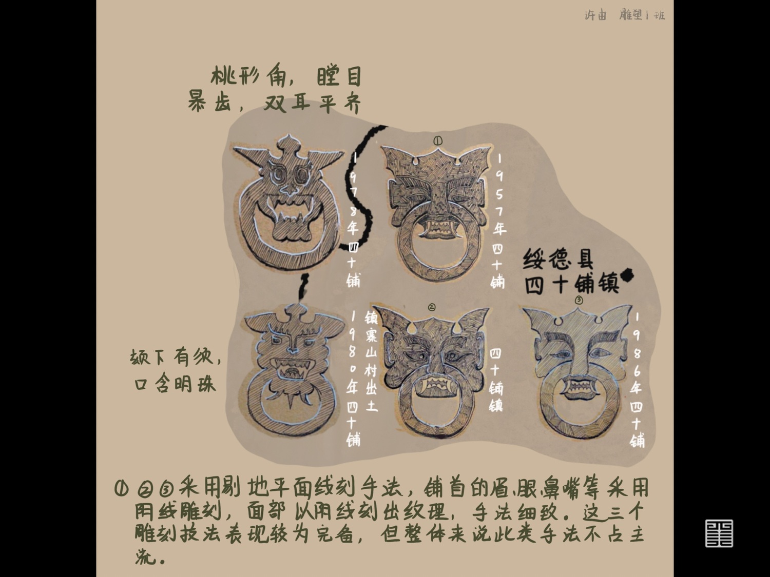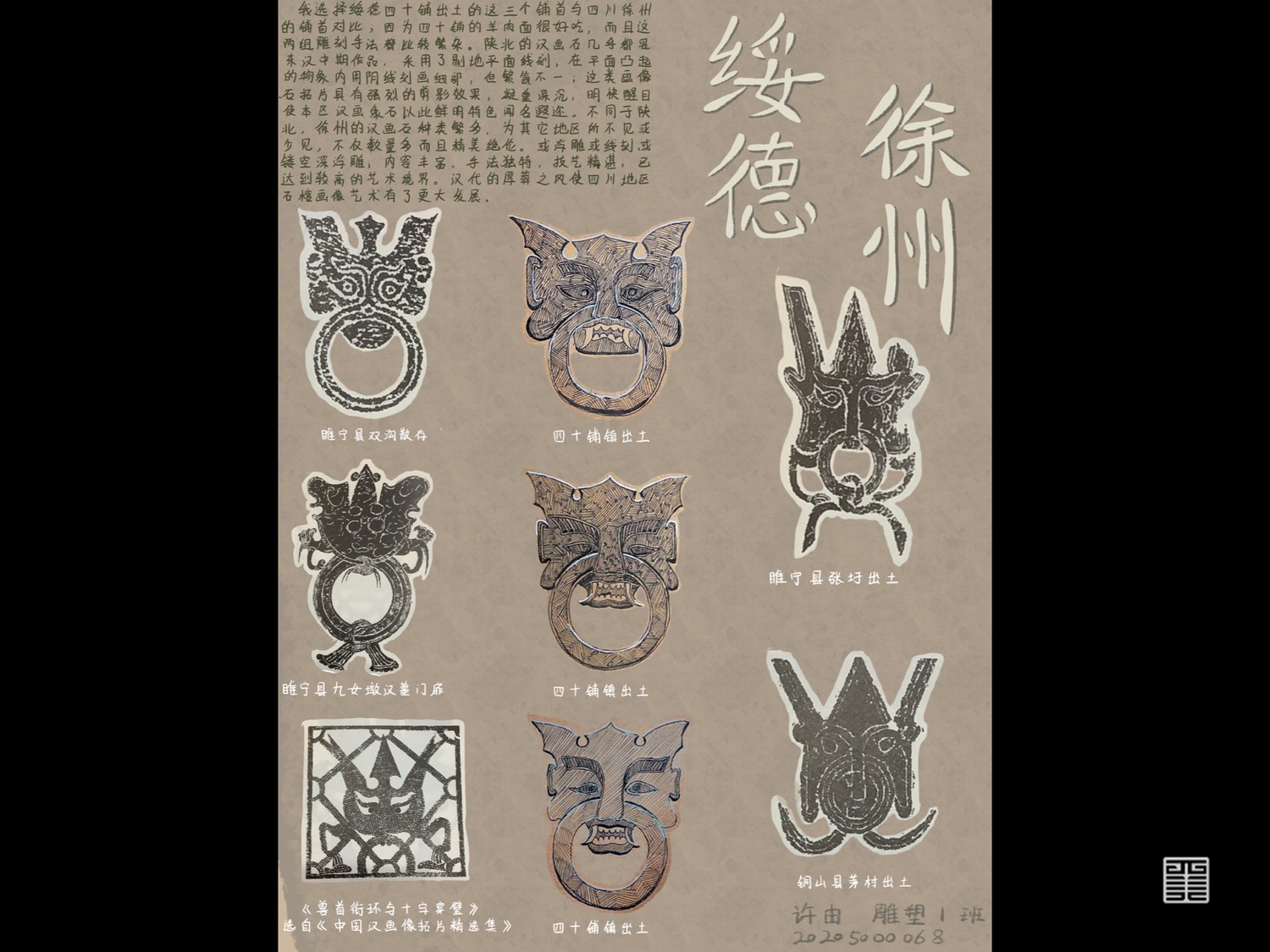 汉画像石是一种祭祀性丧葬艺术,从西汉晚期到东汉末,伴随着疯狂涌动的厚葬风潮,汉画像石在社会上流行了近三个世纪之久。不仅是汉以前中国古典艺术展的巅峰,而且对汉以后的艺术也产生了巨大而深远的影响,在中国美术史上占有承前启后的重要地位。汉代墓葬凡有画像石者,不论多少几乎必有“铺首衔环”,因为他们是门的标志,同时也有守护之意。本文将以铺首展开浅析汉代艺术。