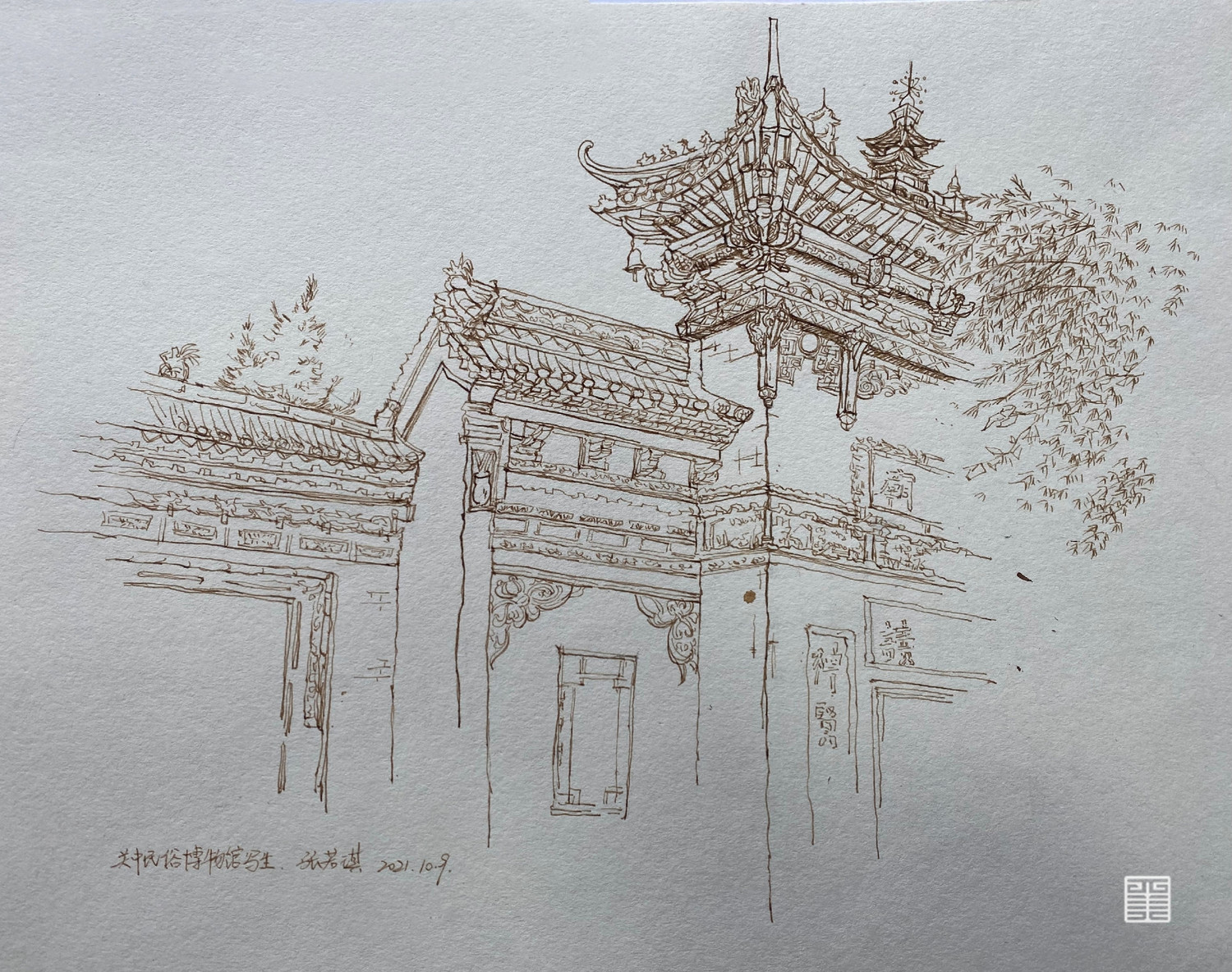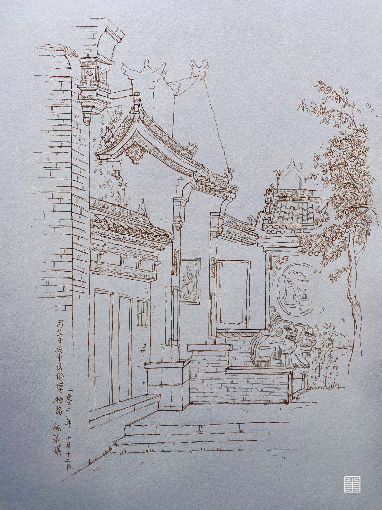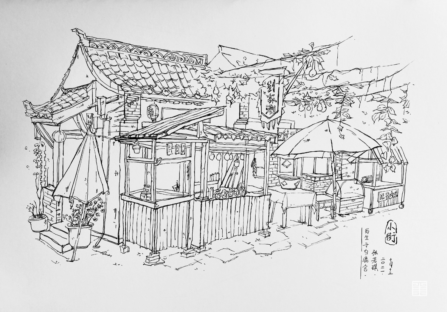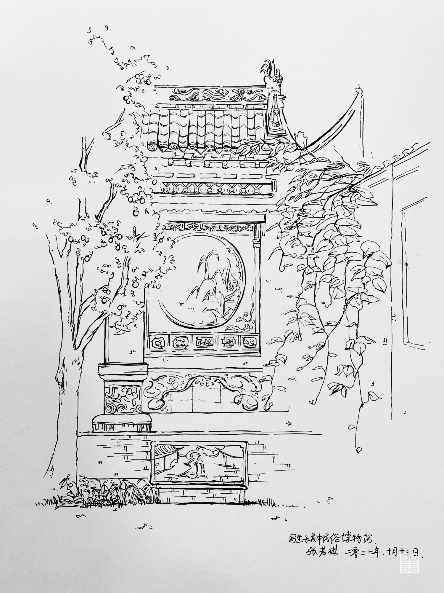 以上为关中民宿博物院与白鹿仓的写生小作,初入关中民宿博物院感受那时的建筑气息,各类大小的屋舍将我一次次代入到当时人们生活居住的环境,移步写生的过程心情无限悠然,白鹿仓的民国建筑又将人瞬间拉回另一个别样世界,建筑的风格大有不同,如:街巷排列,建筑手法,在两地的对比中给我深刻的体会。