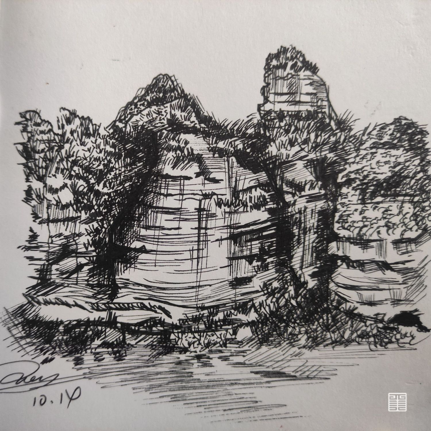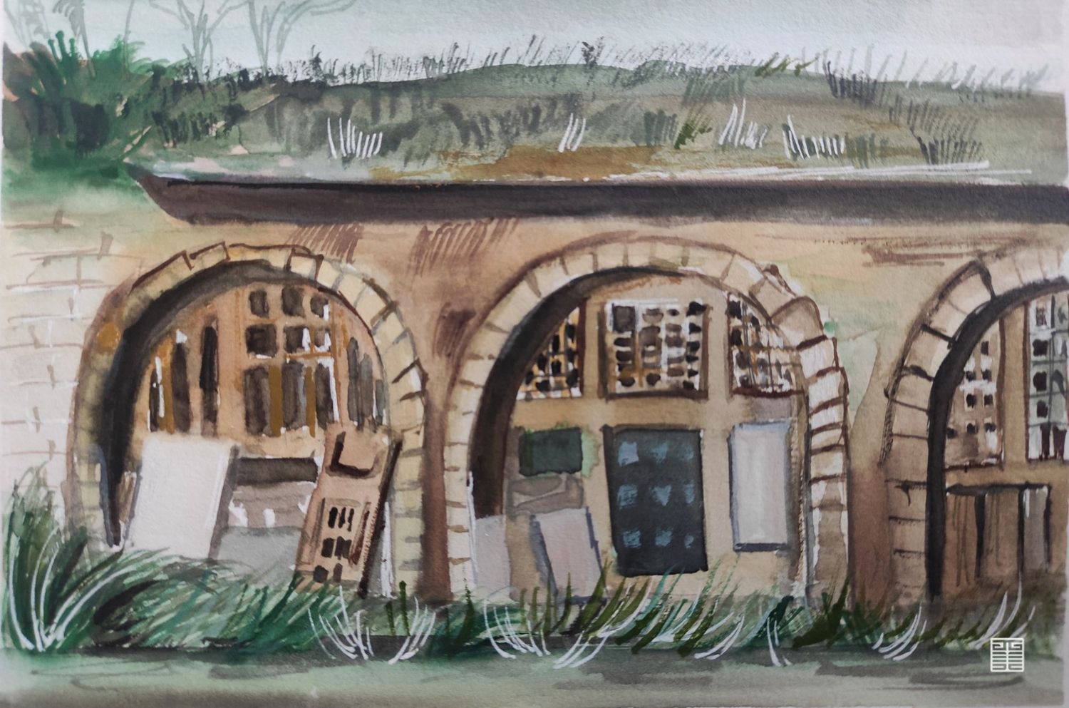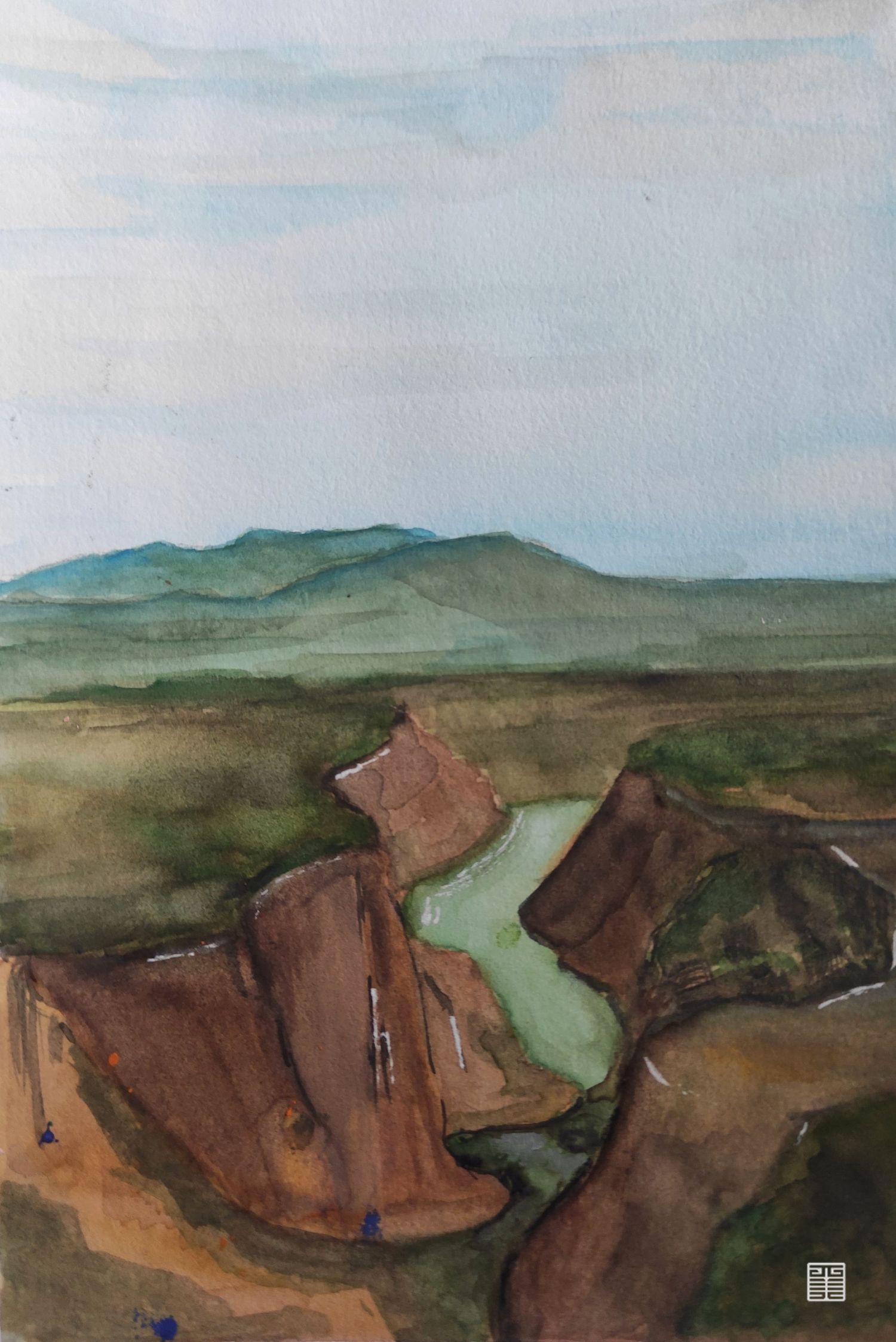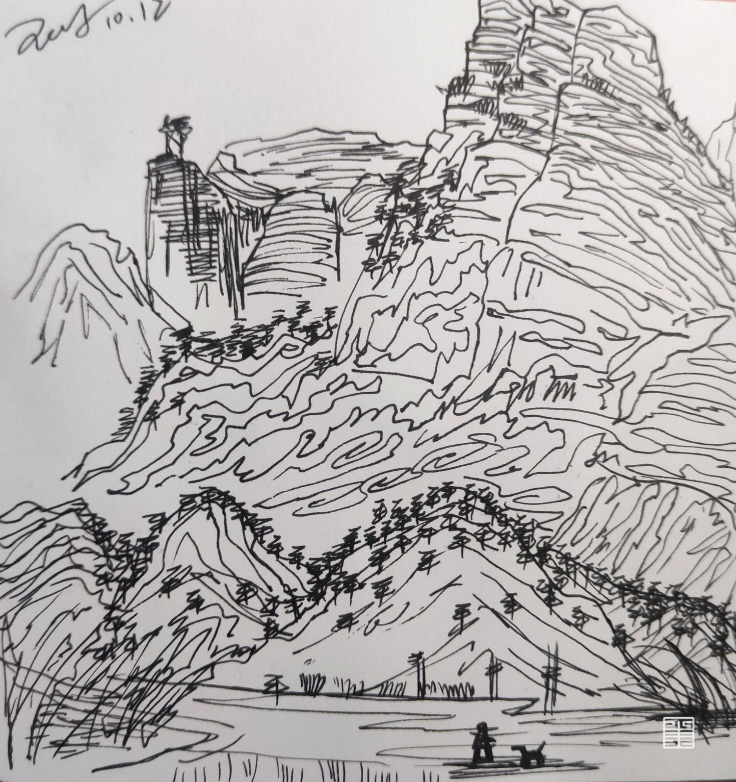 画作以陕北榆林风景写生为主,采用签字笔速写,水彩以及水粉方式来呈现榆林秀丽景色。榆林的山风土非常刚劲有力,作品多以山为主。