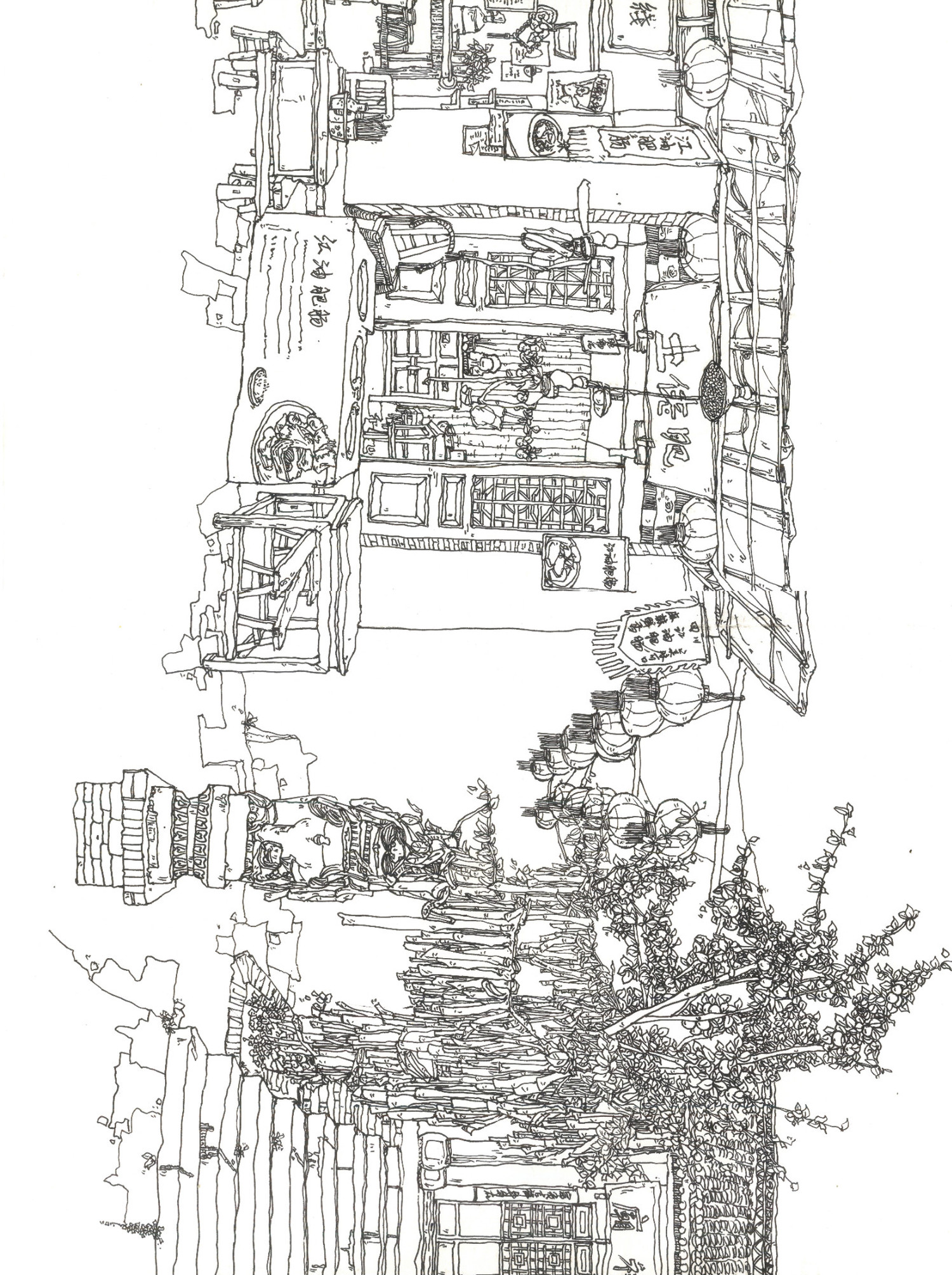 袁家村写生作品长卷