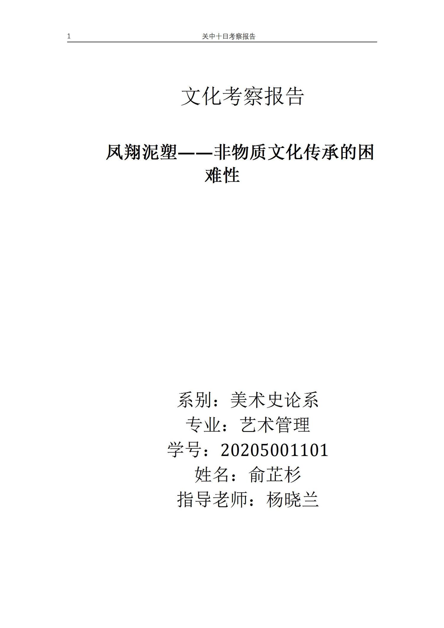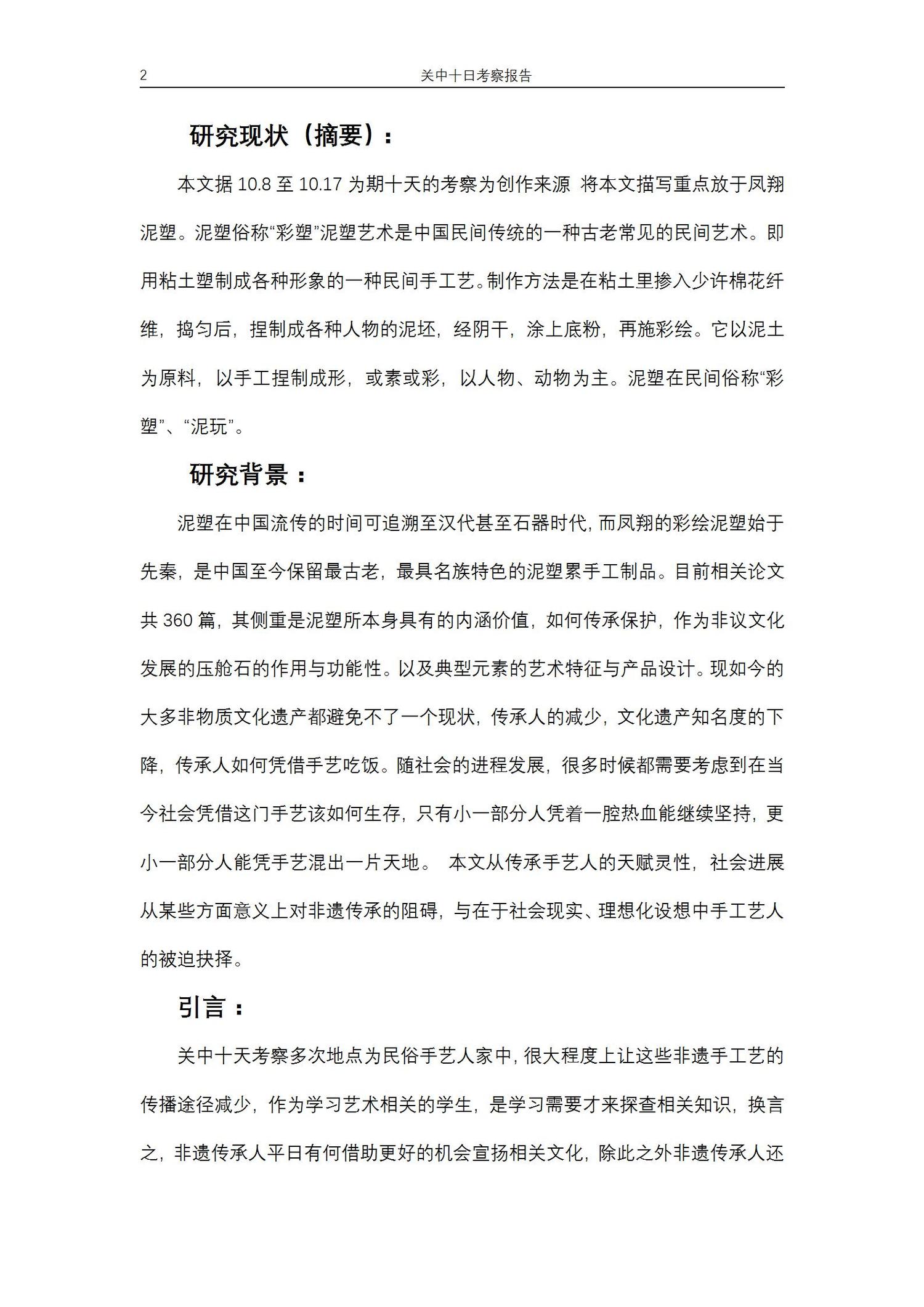 本文据10.8至10.17为期十天的考察为创作来源 将本文描写重点放于凤翔泥塑。