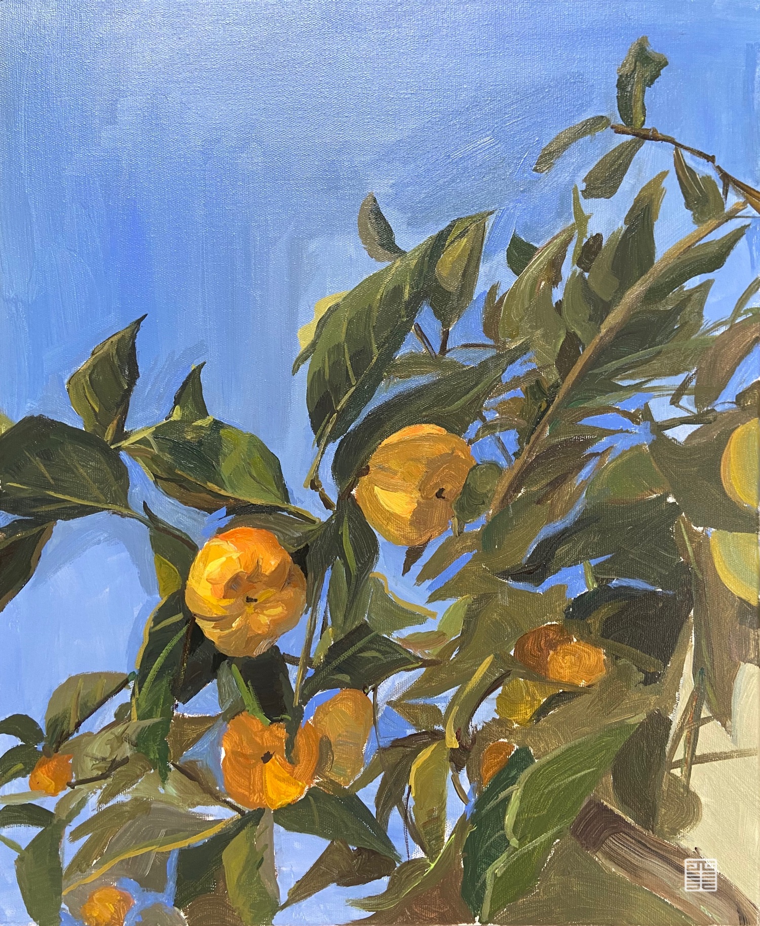 丙烯画的柿子,没吃过,但同学吃到了虫