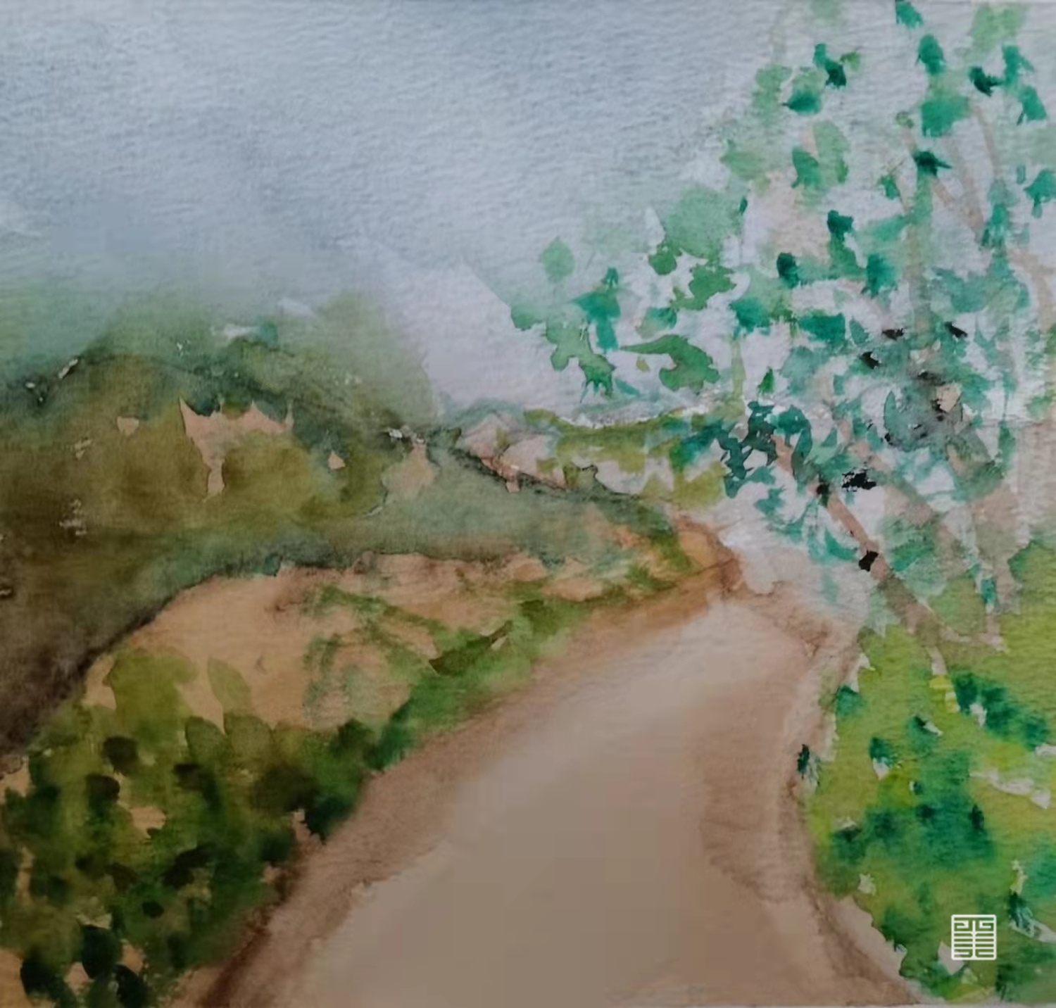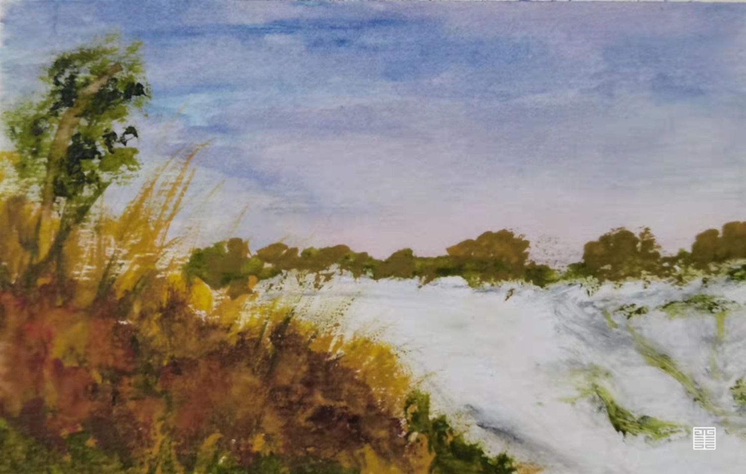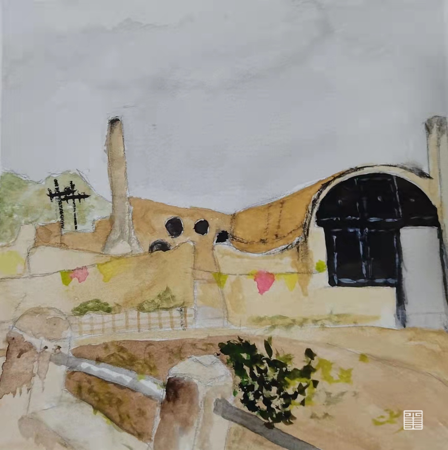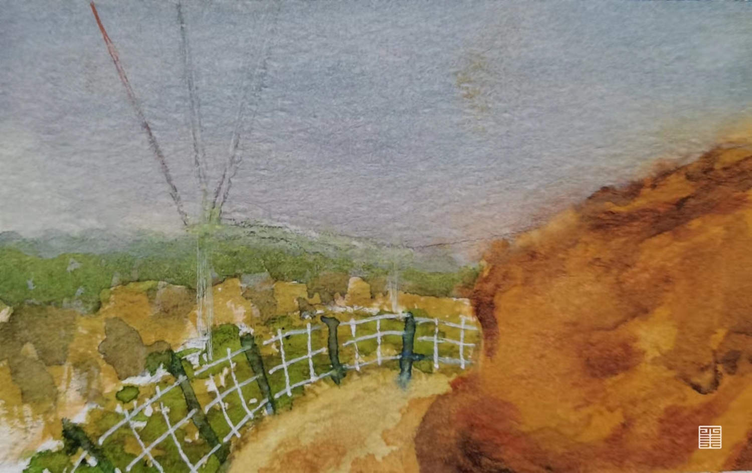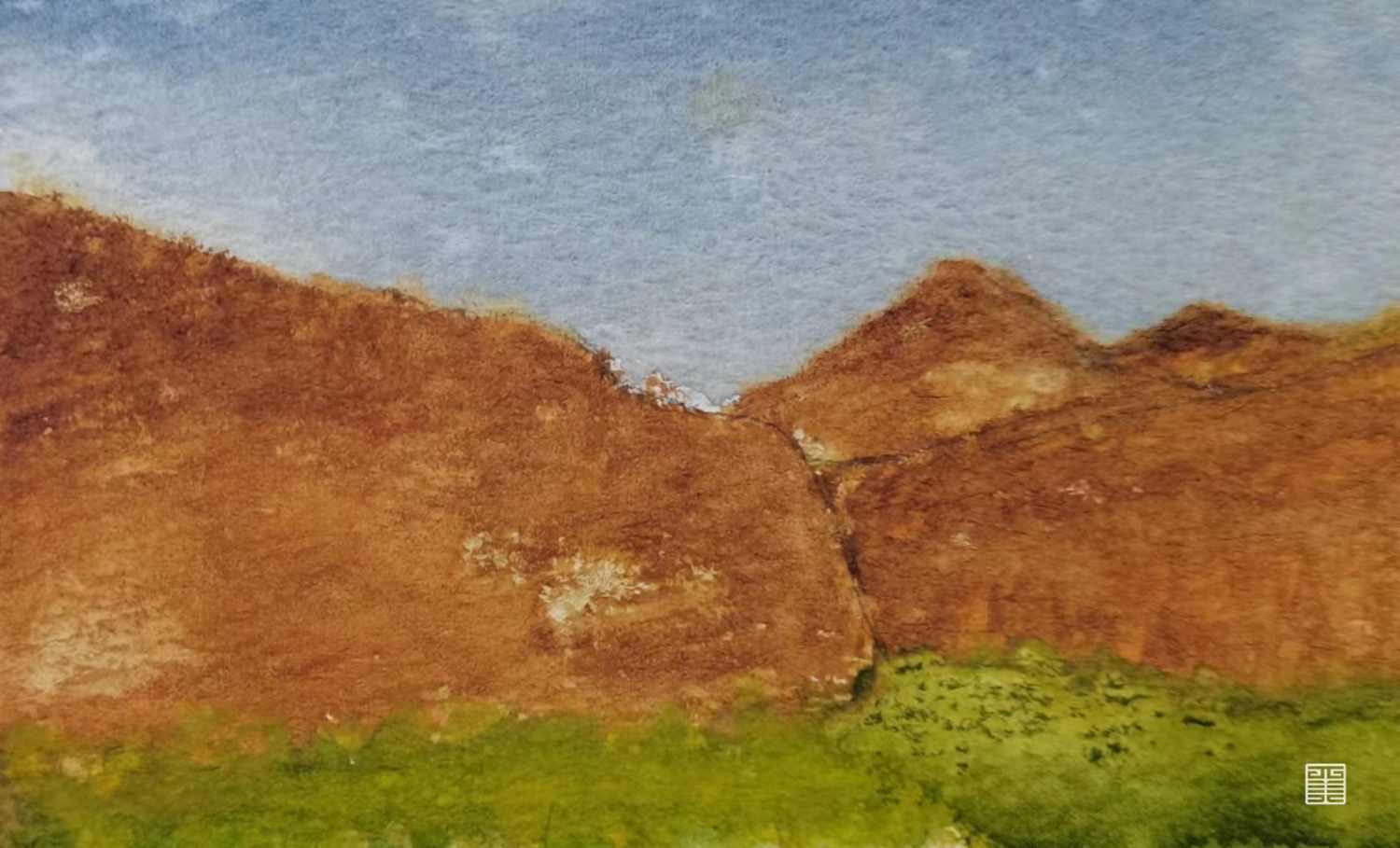 创作于陕北外出写生期间,见到了关中地区所见不到的丹霞地貌,大受震撼,画出一系列陕北独有风景。