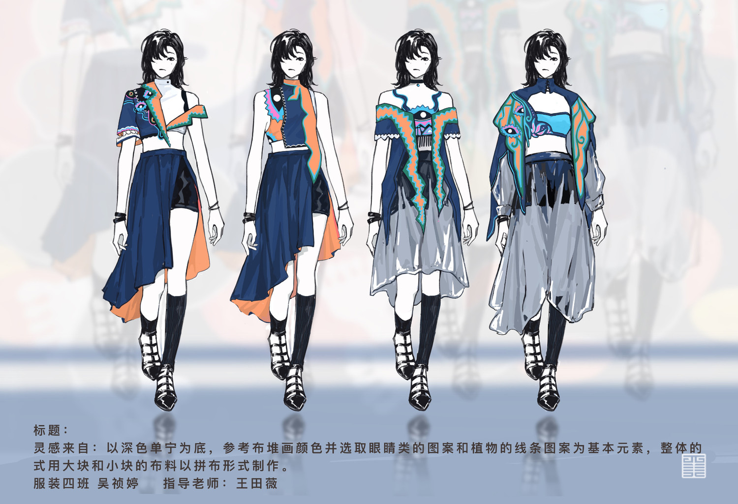 由布堆画图案为灵感来源设计的背心上衣部分