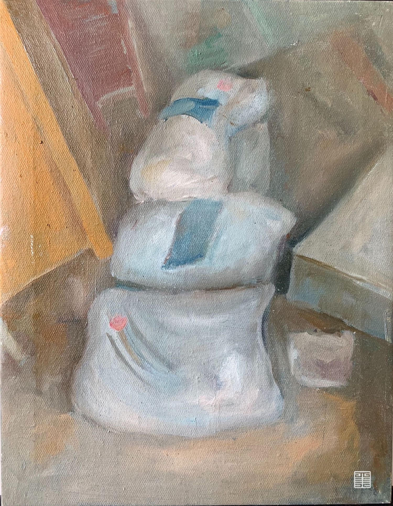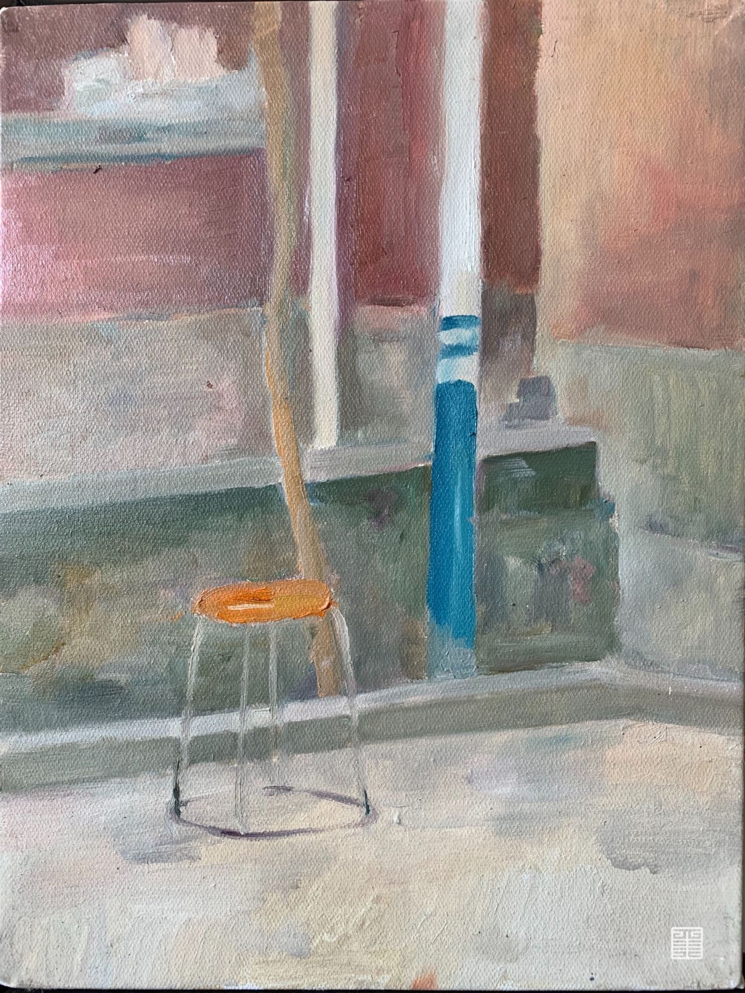 水泥和柜子 黄凳子 夜