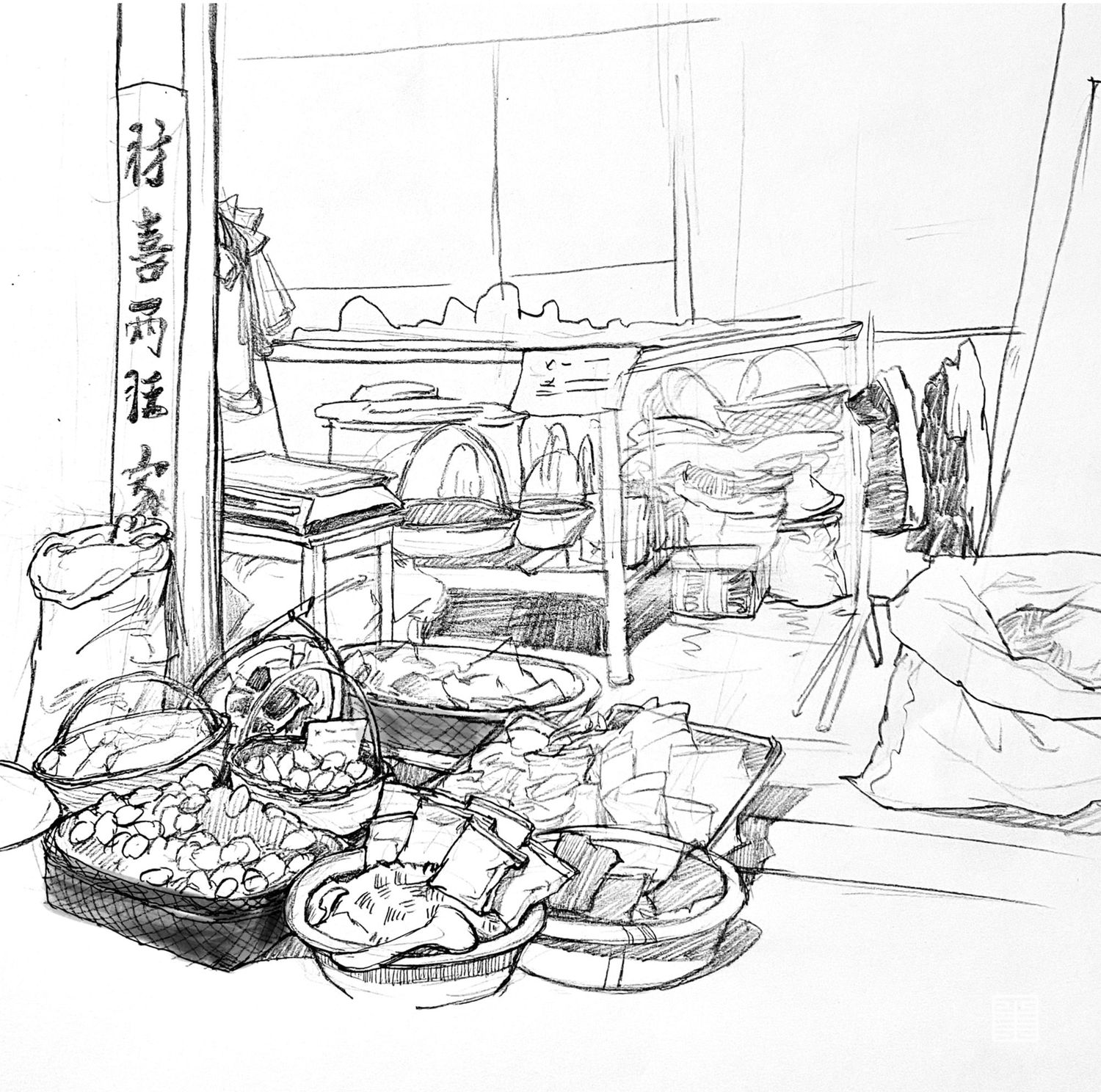 记录此次写生路上的风景,紫阳的全景,古镇路边贩卖香料竹篮的小景,张良庙的小凉亭和青木川的走廊。通过速写和摄影的方式记录我所了解到的当地的故事与历史。