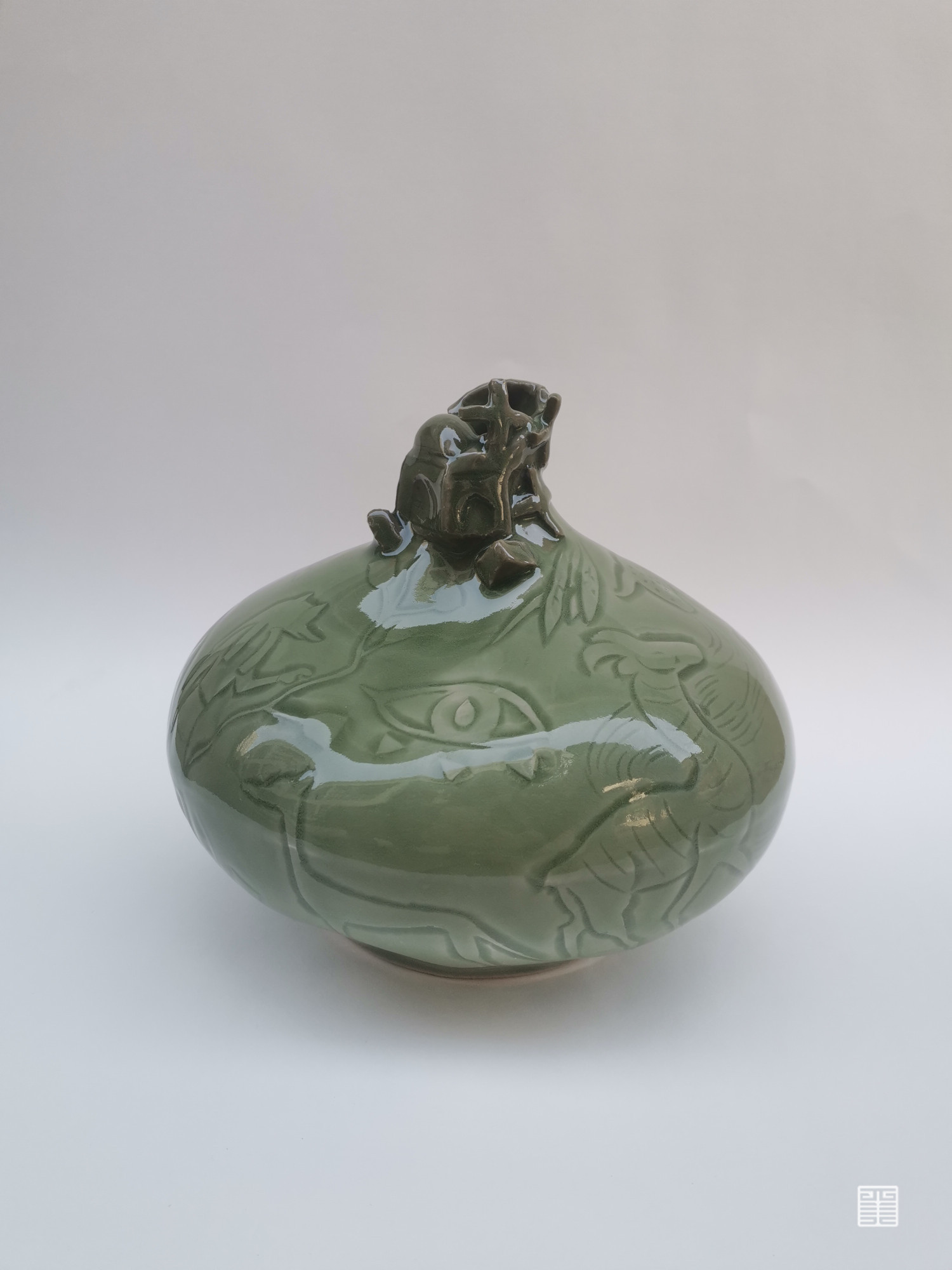 《尘土之上》系列包括了一件花器、三件泥板作品。在铜川唐宋瓷坊期间学习并制作完成,使用了耀州刻画工艺与泥塑结合的手法制造而成。中国名窑技艺考察课程报告,2019级陶瓷与玻璃工作室。