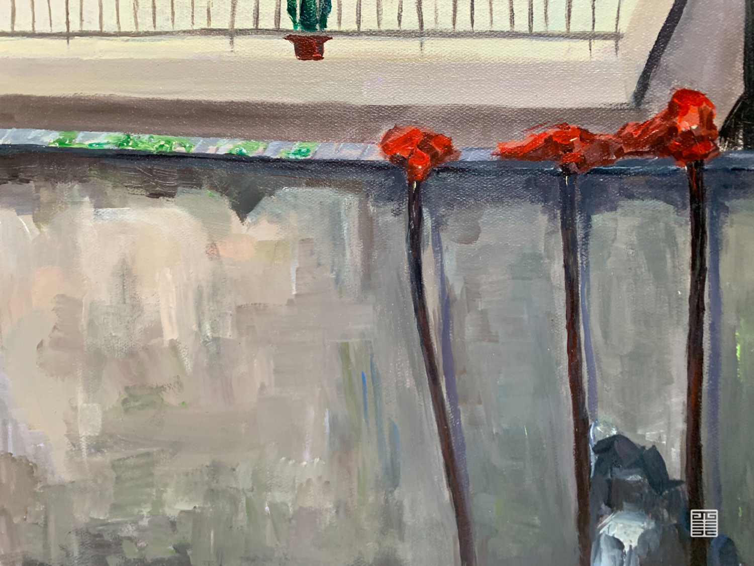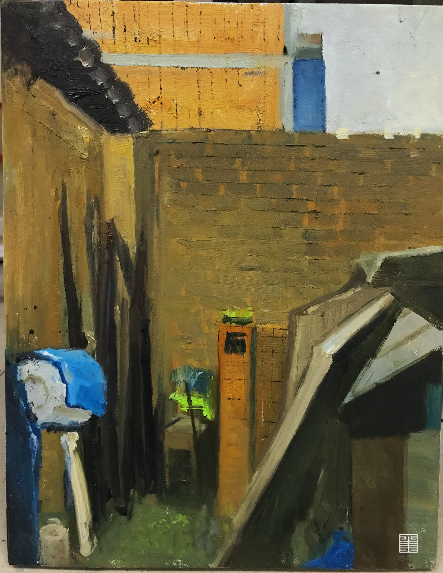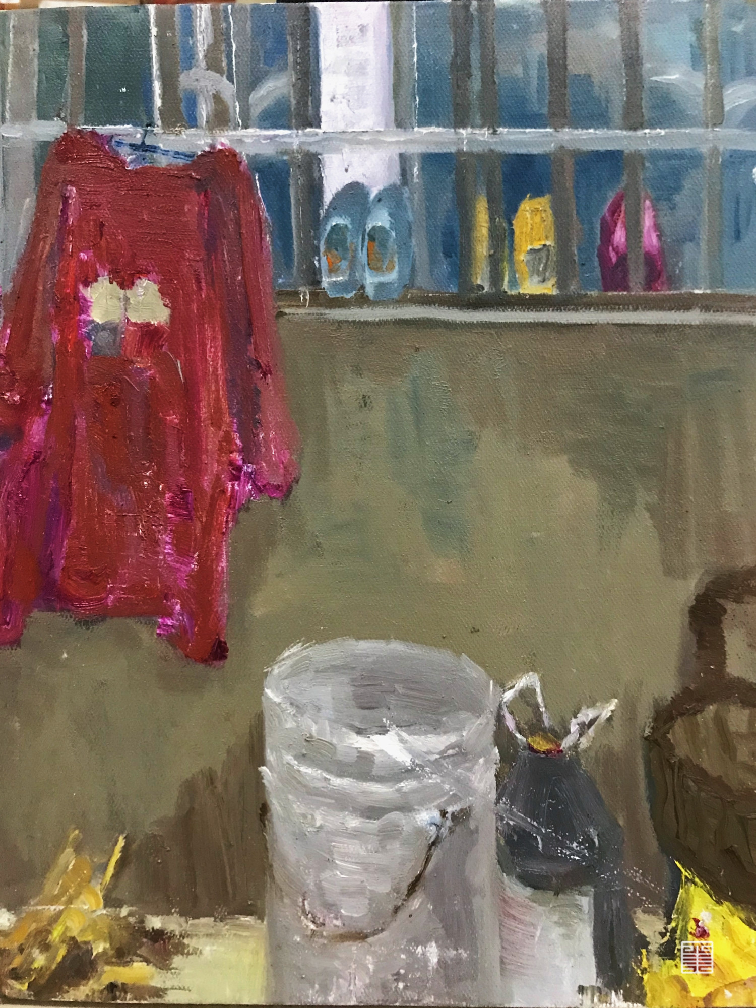 在阿姨家,有个窄小的院子,院子里住着一只白毛狗狗“赳赳”,这个家的许多角落都曾有过我们的画画身影。村子里每家住宅布局大多像似,屋内有正方形镂空回廊,回廊上空是玻璃天窗,与城里房子构造截然不同每家都有小院,因此我们被这种奇妙的构造吸引画了很多房屋一角。